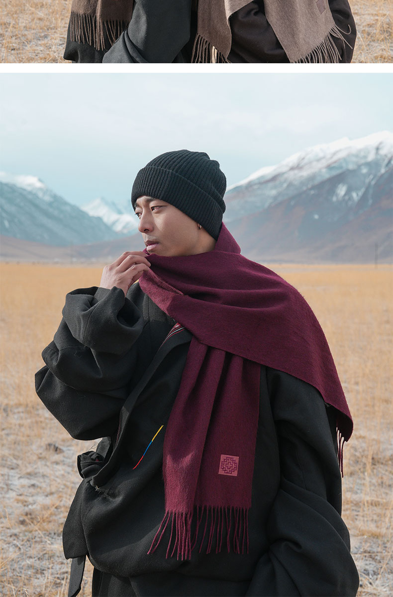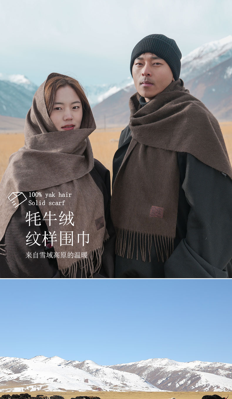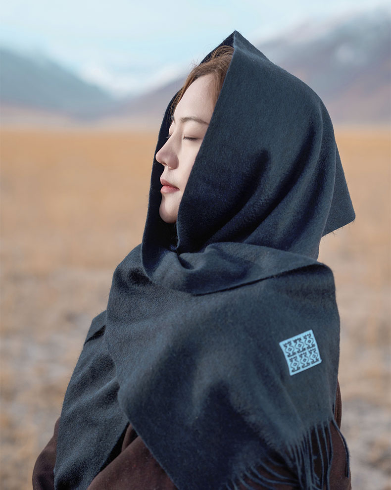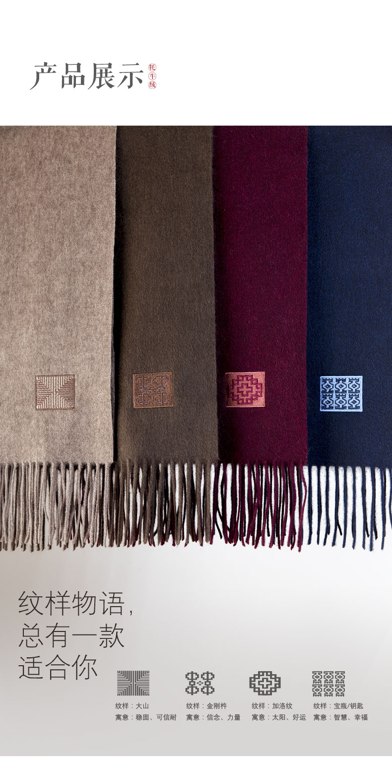 饮水鸟秋冬藏地祥纹34牦牛绒羊毛针织三角巾围巾钉珠保暖披肩围脖