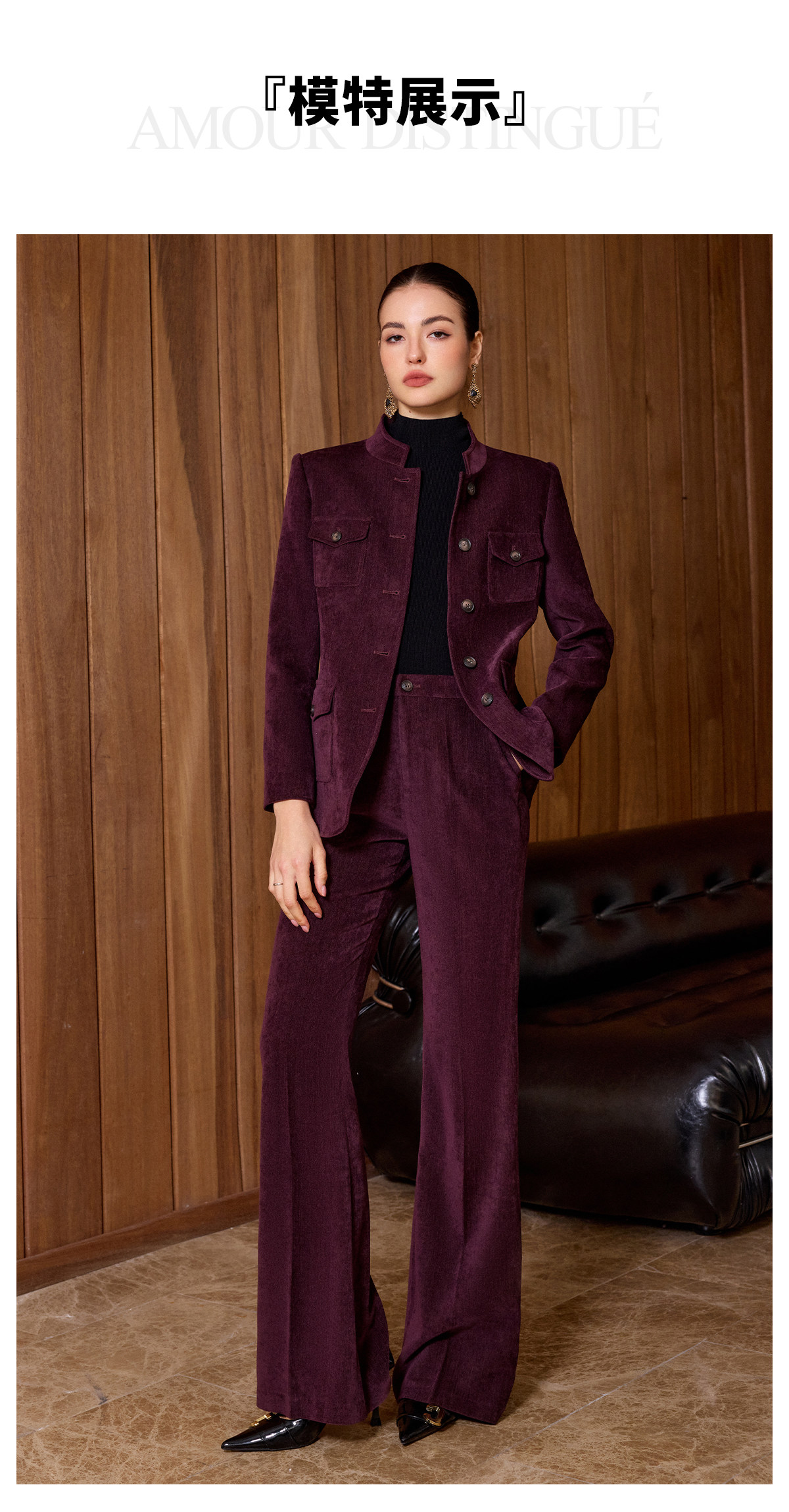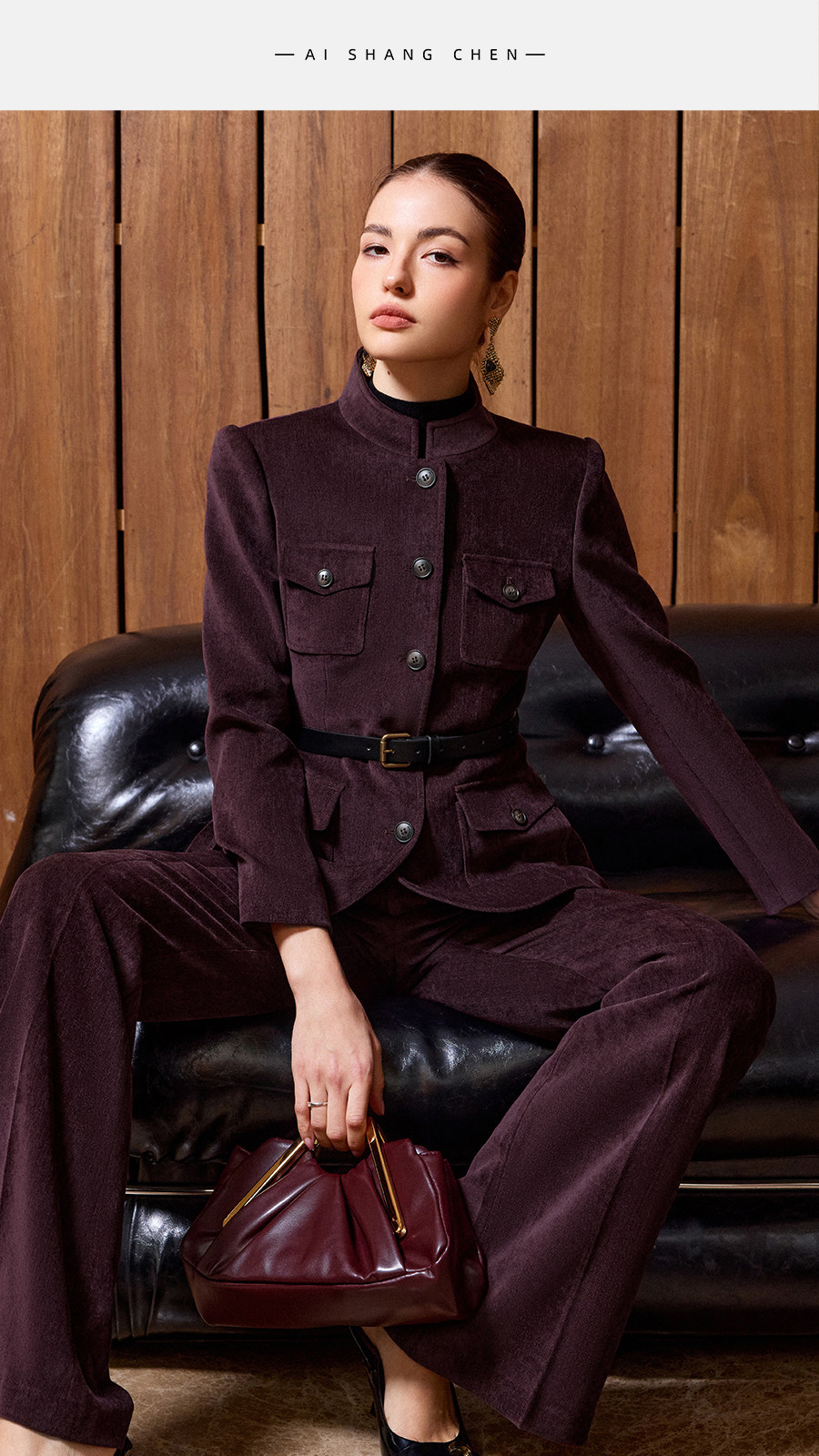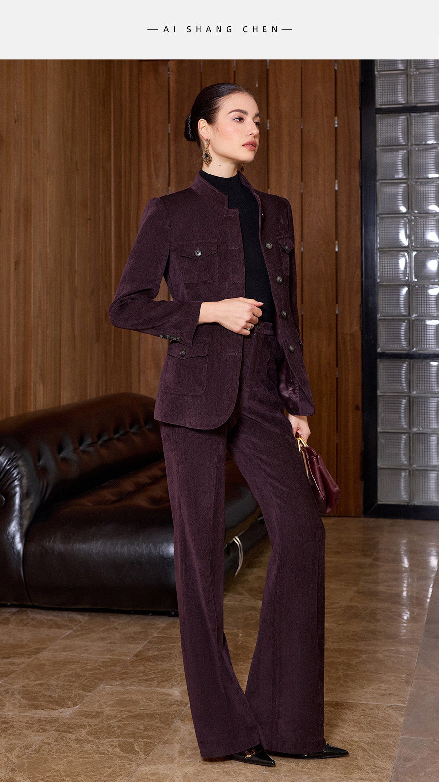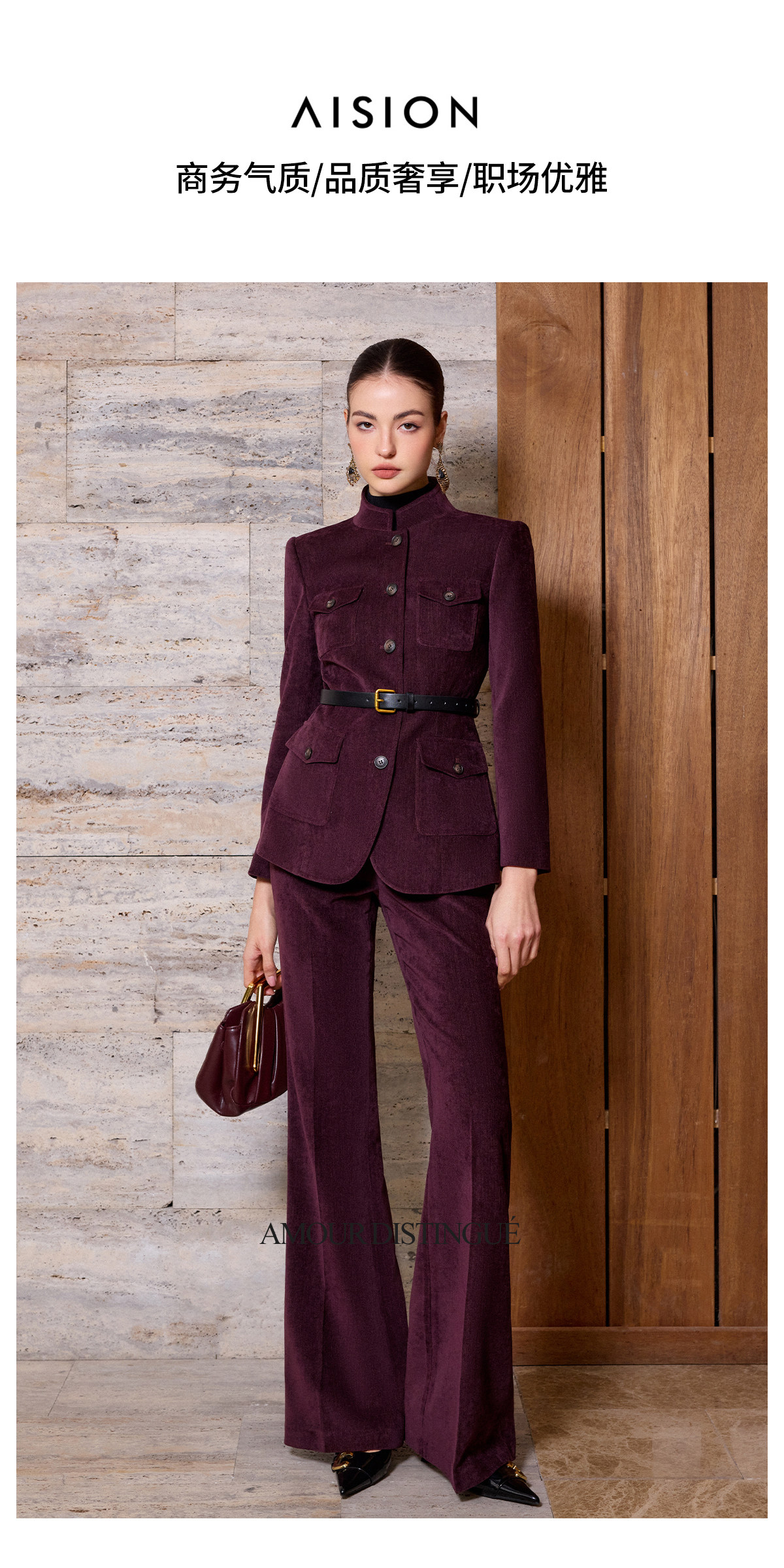 艾尚臣老钱风立领西装套装女冬季收腰职业装通勤西服两件套高级感
