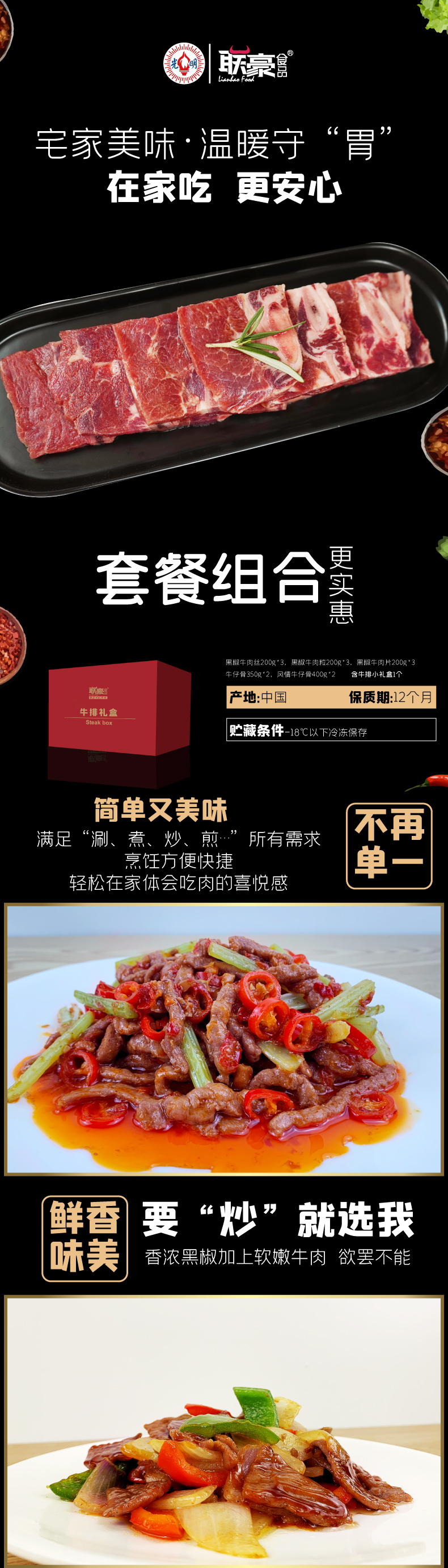 联豪中餐食材套餐3300g 黑椒牛肉 牛仔骨