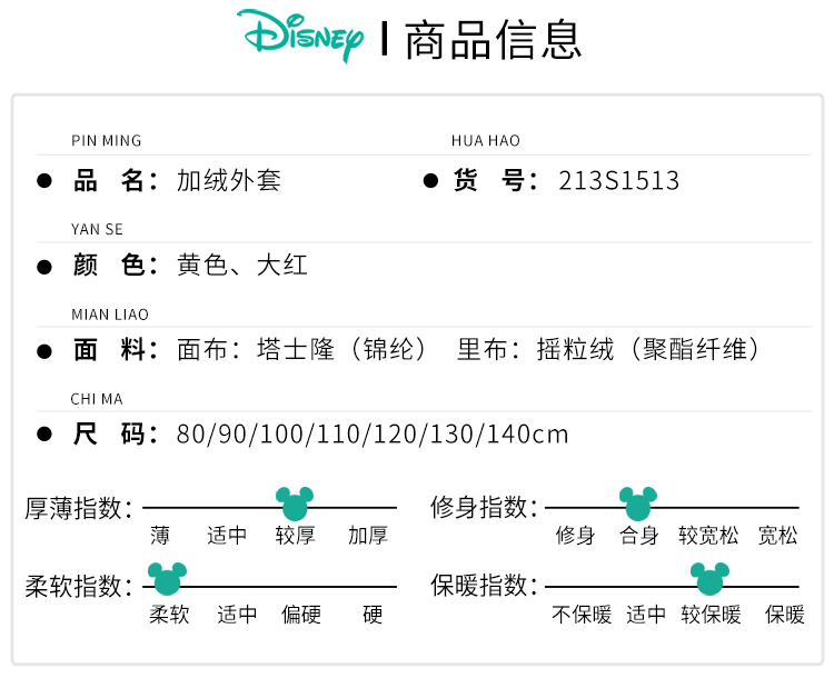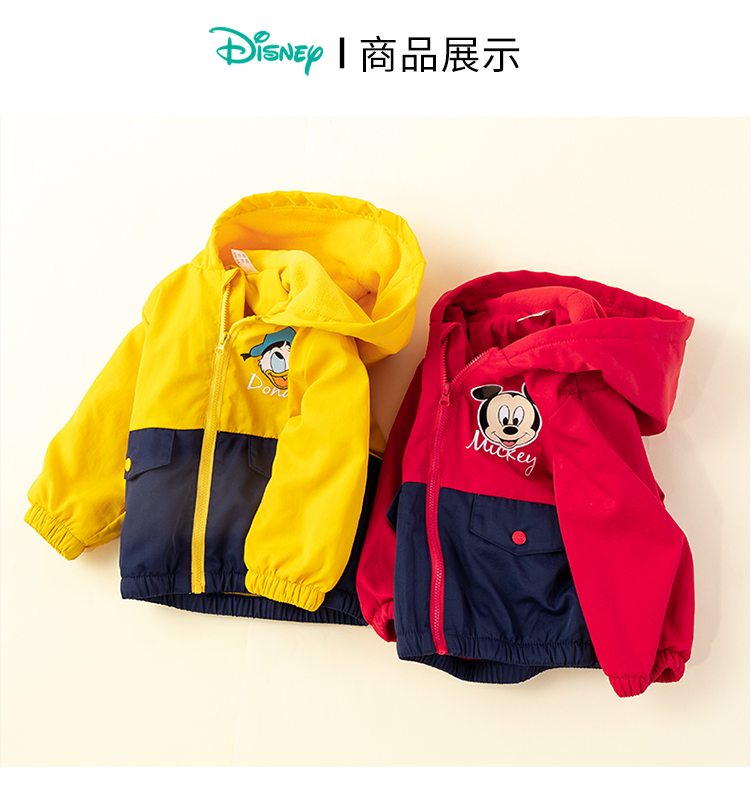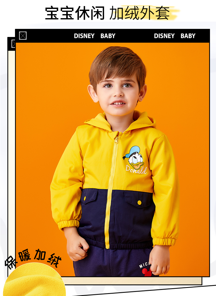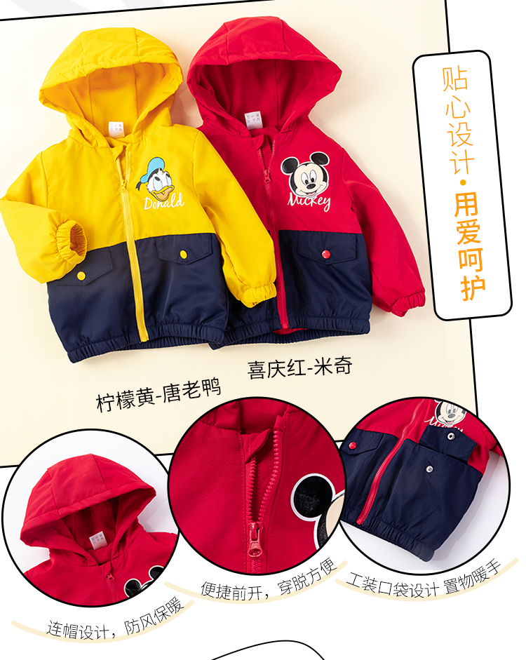 迪士尼男童宝宝春秋保暖加绒连帽外套