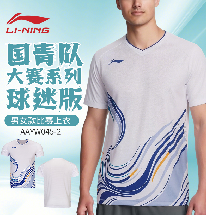 李宁羽毛球服中青队大赛系列男女同款比赛训练吸汗速干短袖AAYW045