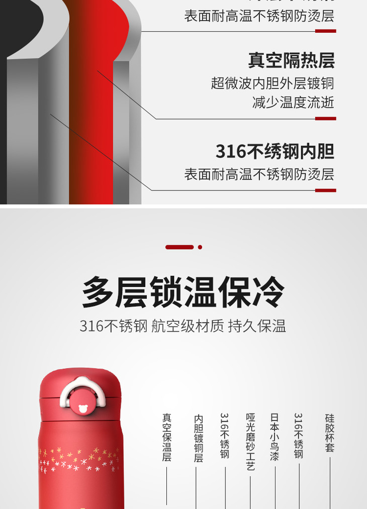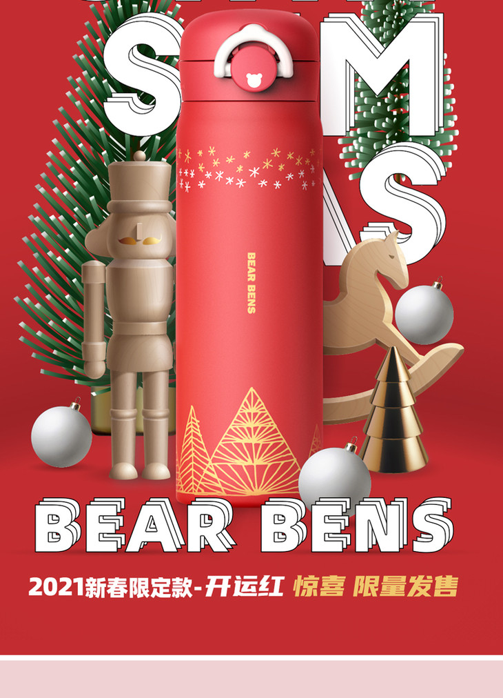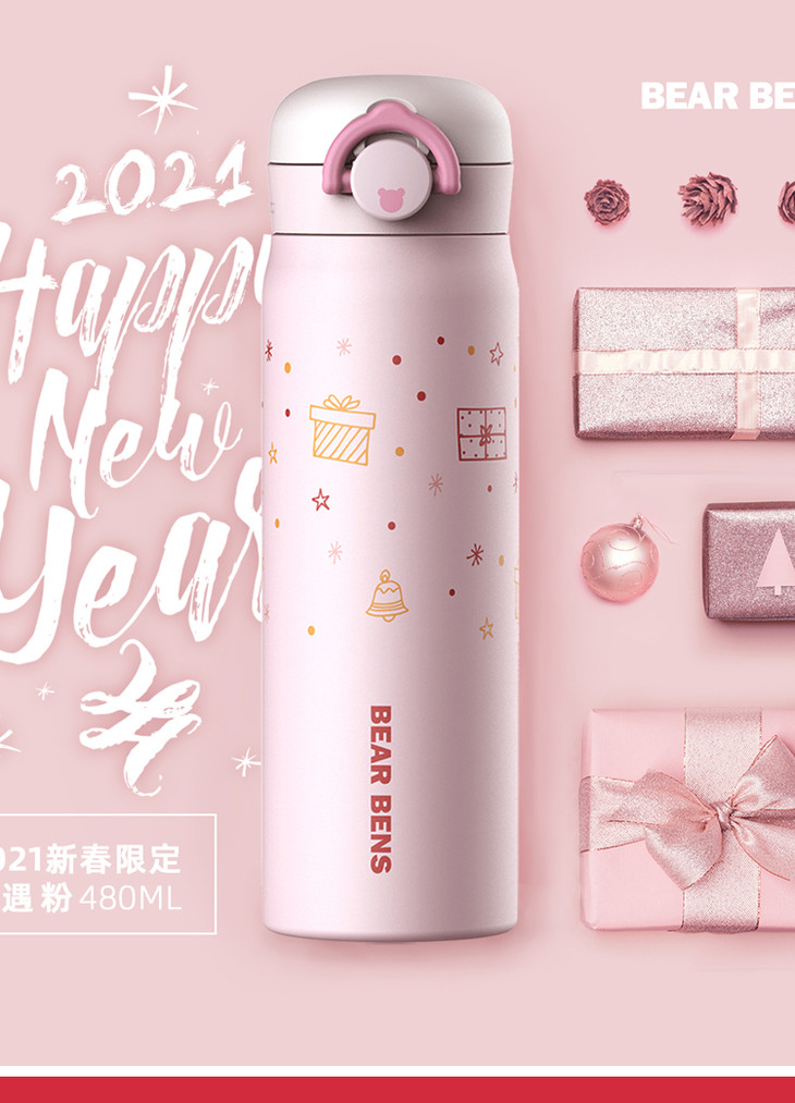 【新春定制款】 BEAR BENS 日本熊本士成人水杯保温杯480ml(礼遇粉)