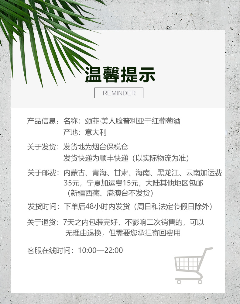 热卖中!!保税仓顺丰直发!【意大利原瓶进口 免费试喝3瓶!】颂菲·美人脸普利亚干红葡萄酒 14度干红 (750ml*3瓶正装+187ml*3瓶试喝装)买2箱加送电动开瓶器!