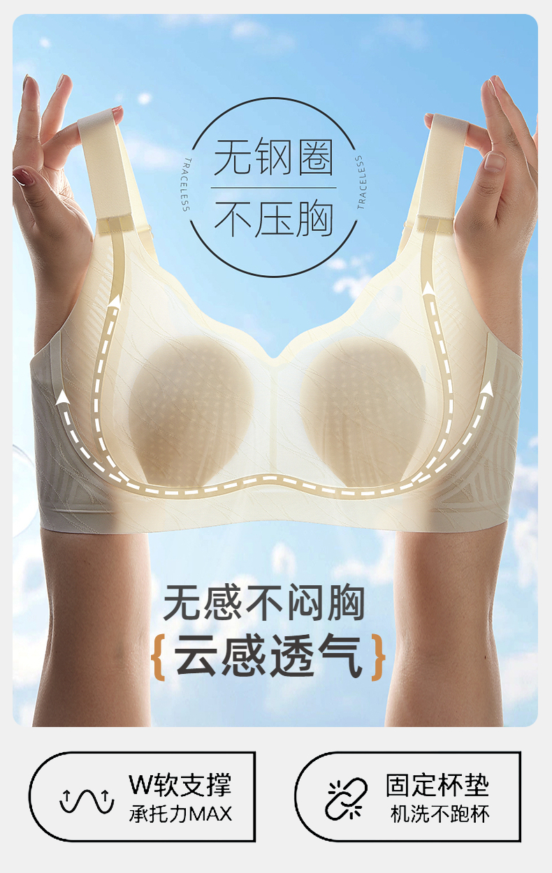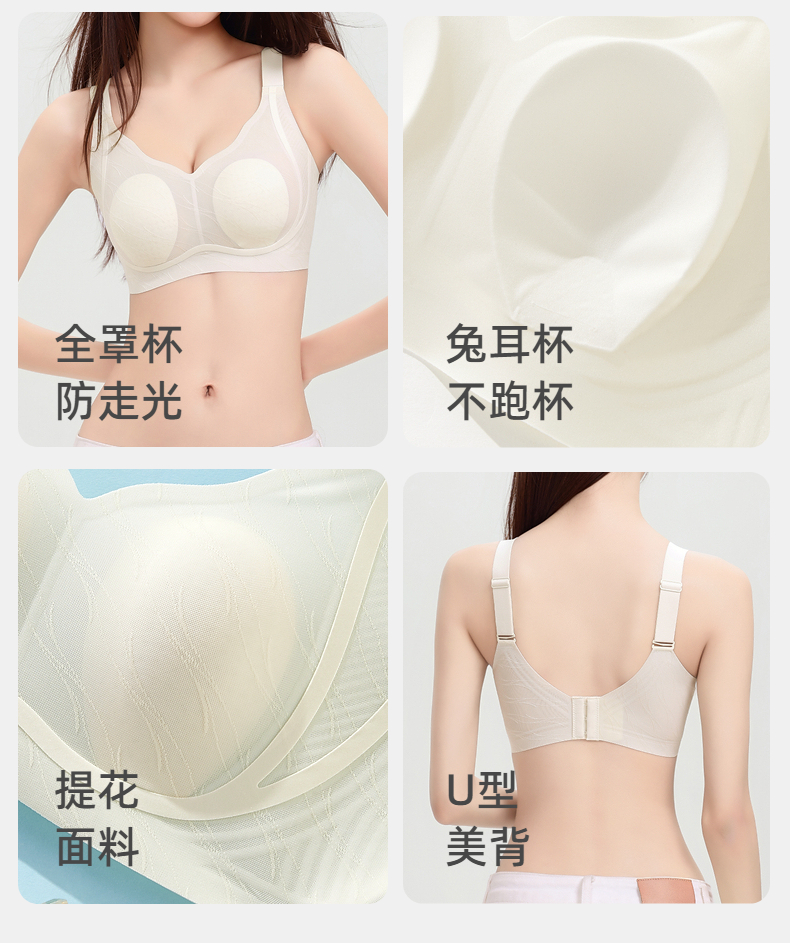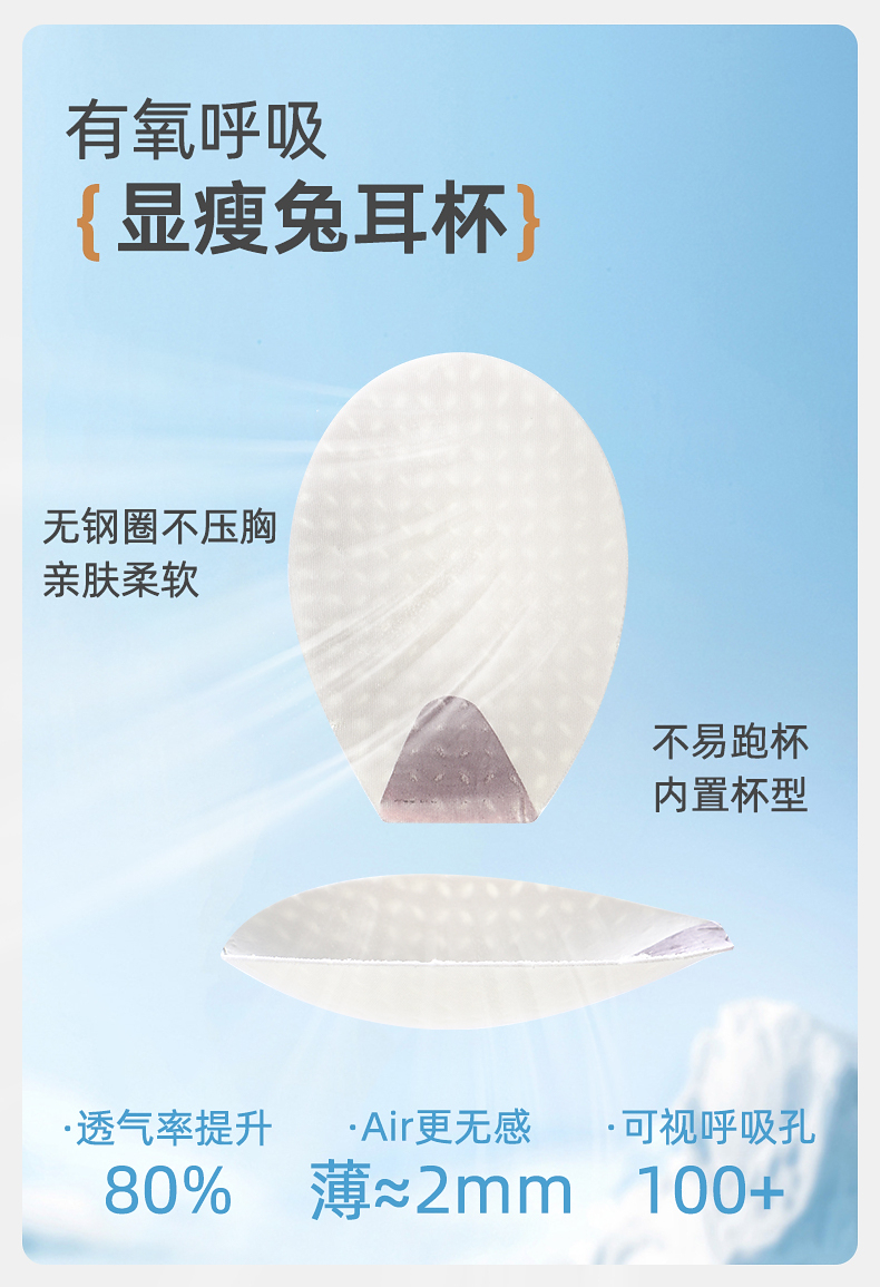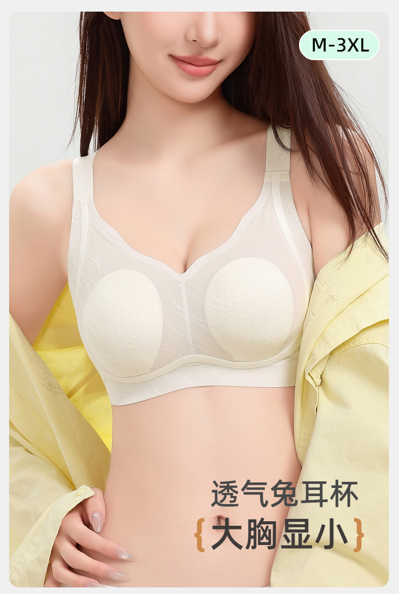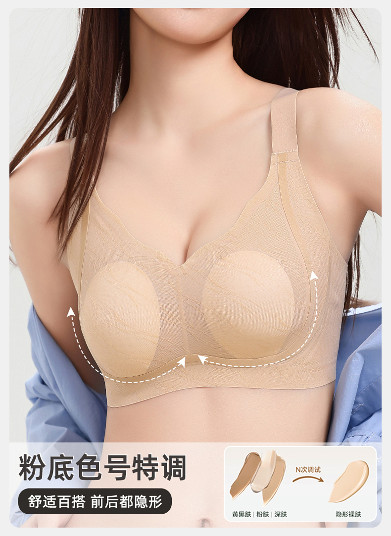 雅黛丽粉底液色隐形内衣女无痕超薄兔耳杯防凸点大胸显小文胸罩薄