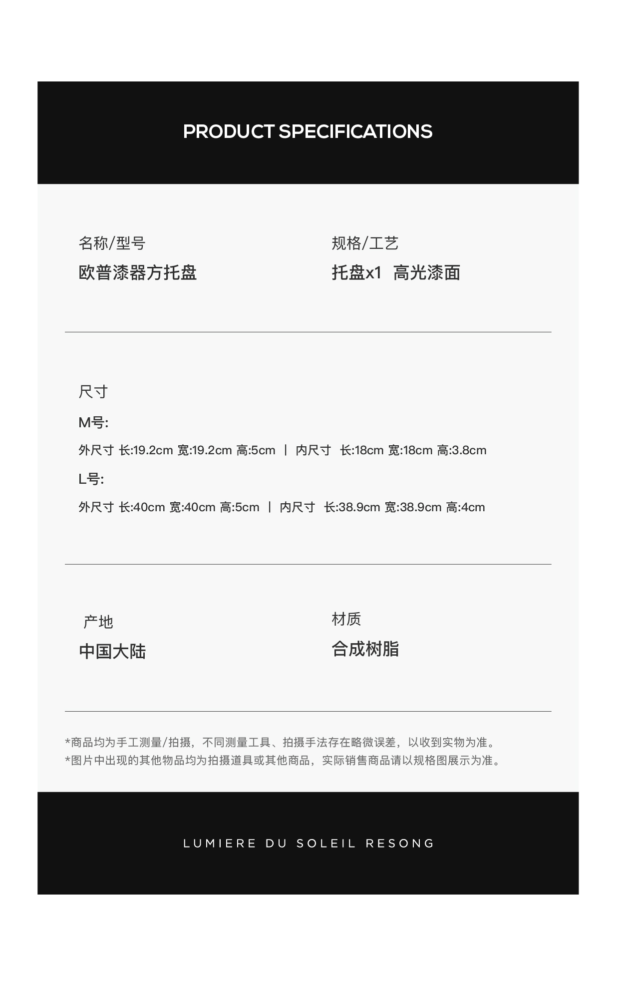 派斯漆器四格托盘 RESONG日诵家居 四格方形亚克力收纳盘