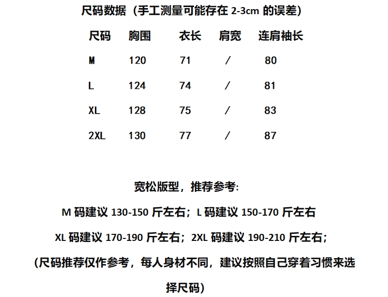尺码:M L XL XXL