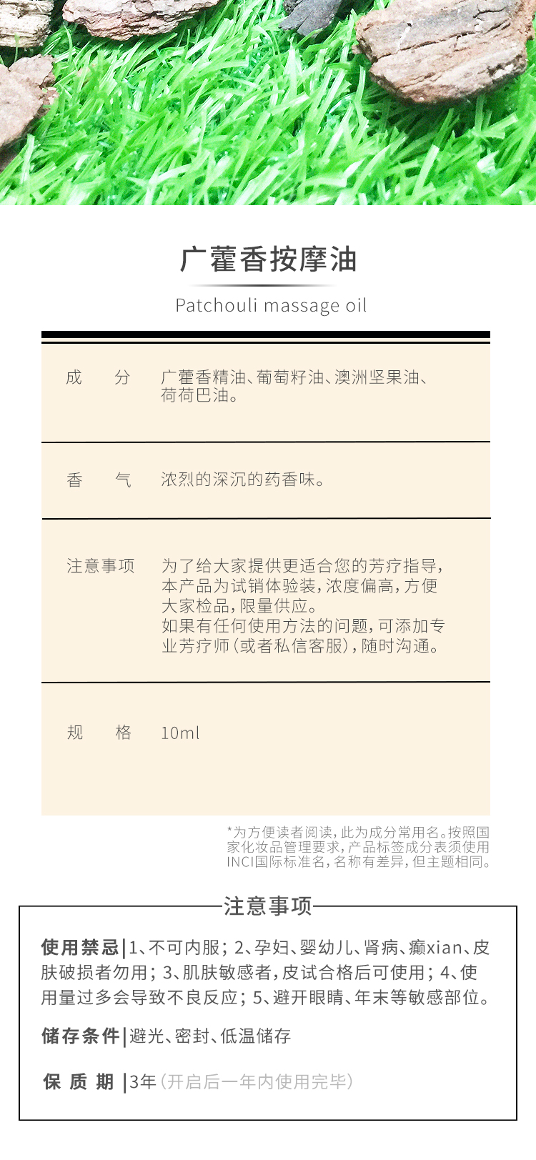 广藿香10%浓度按摩油 鉴定品质 体验装 偏高浓度