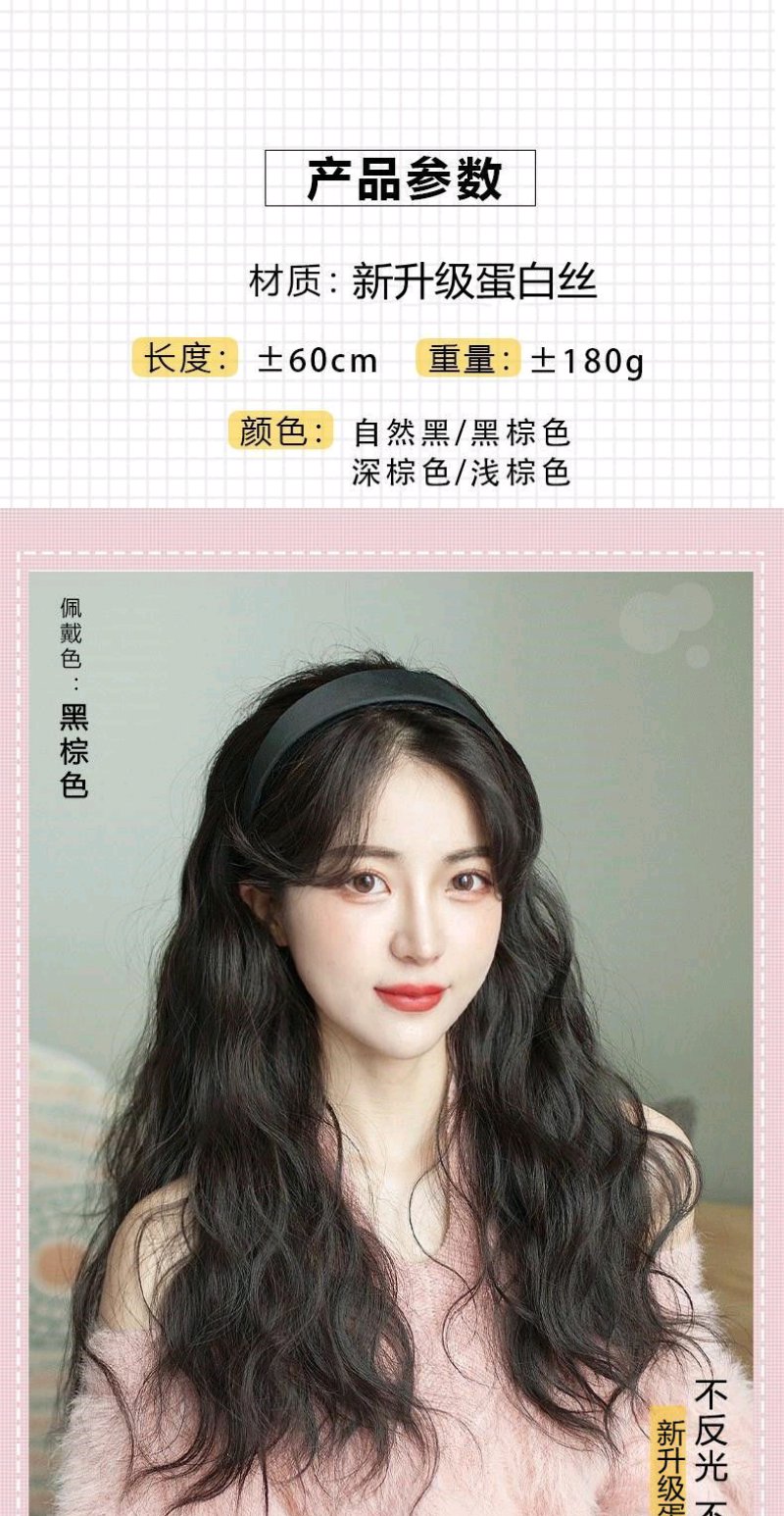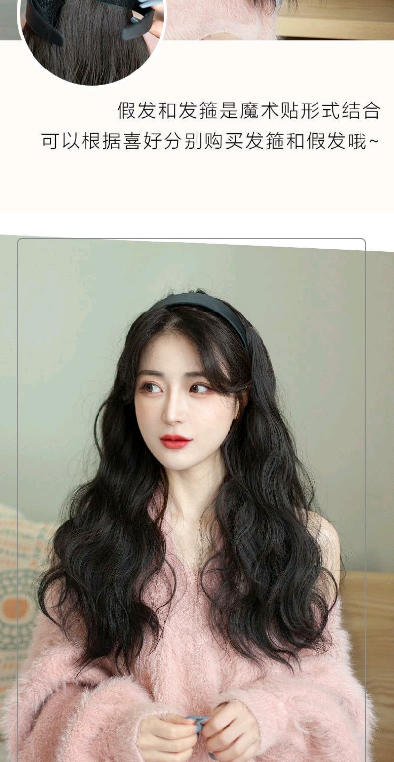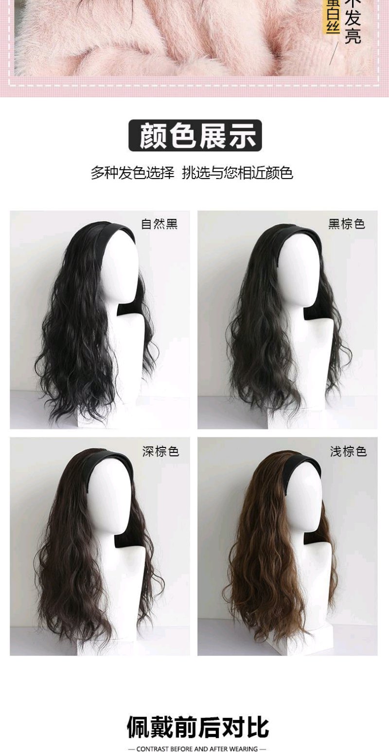 网红懒人发箍假发女半头套 无痕中长卷发头套