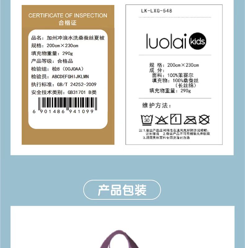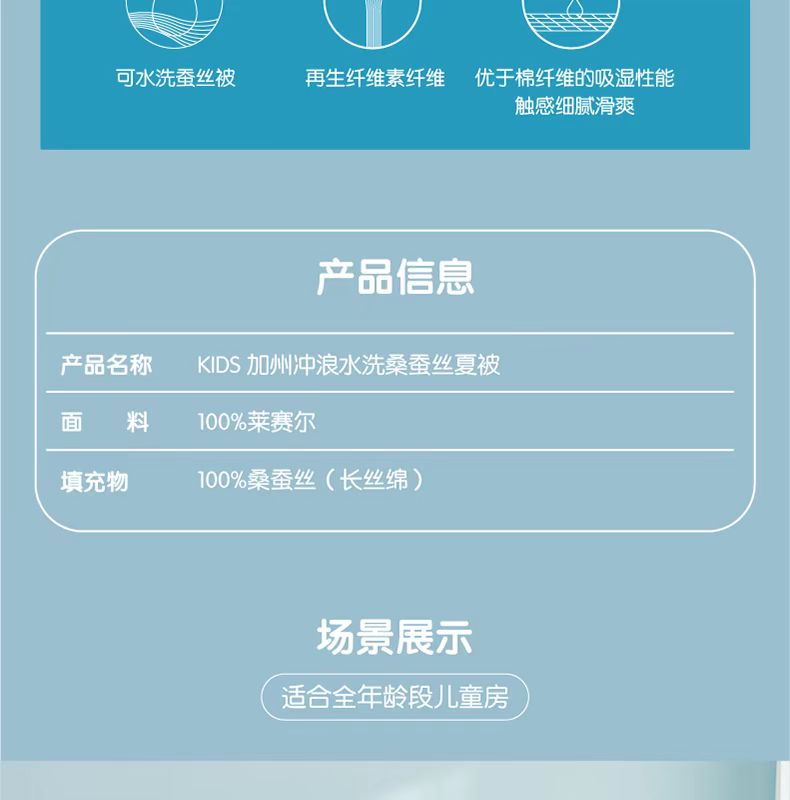 【6F】KIDS 加州冲浪水洗桑蚕丝夏被
