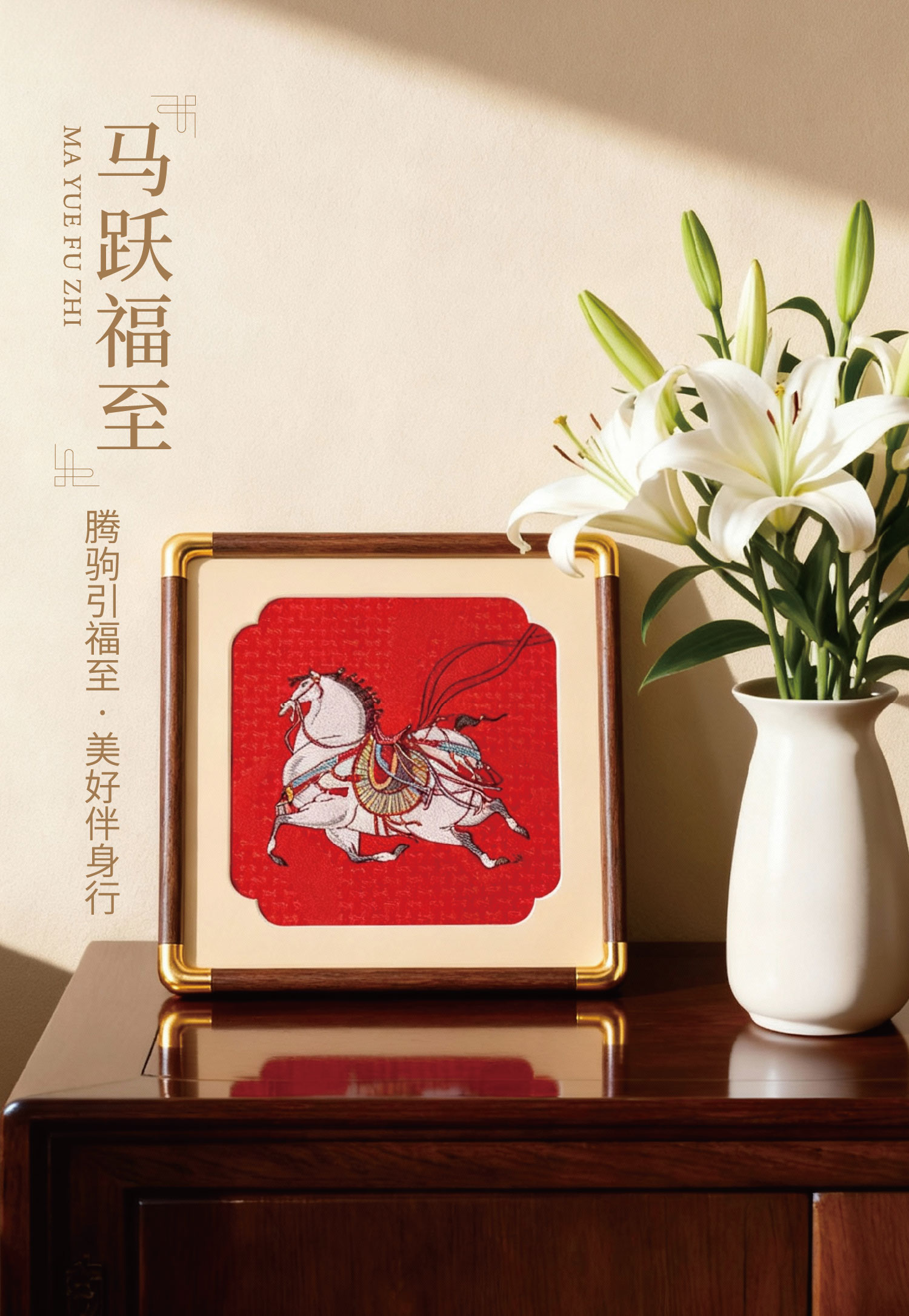 万事利 方形织锦镜框画 摆件 【马跃福至款】18*18cm 新年送礼自用