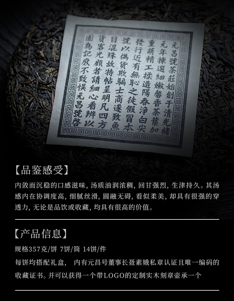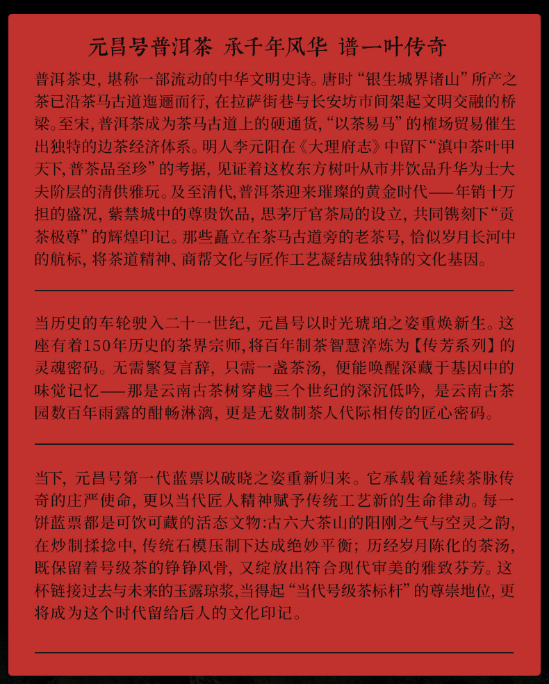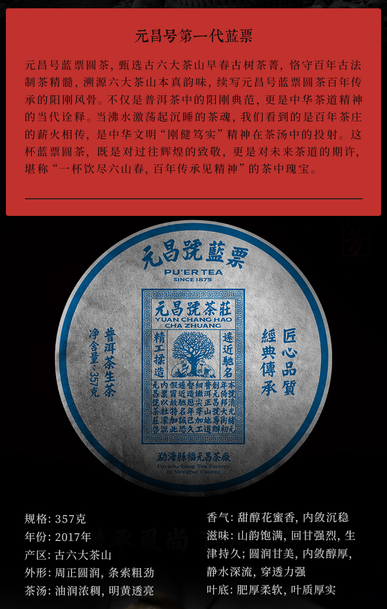 【元昌号传芳】元昌号第一代蓝票普洱生饼传世经典