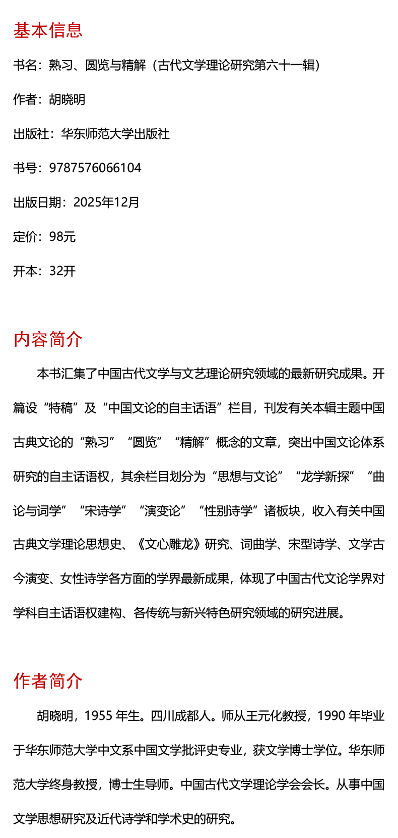 熟习、圆览与精解 古代文学理论研究第六十一辑 胡晓明