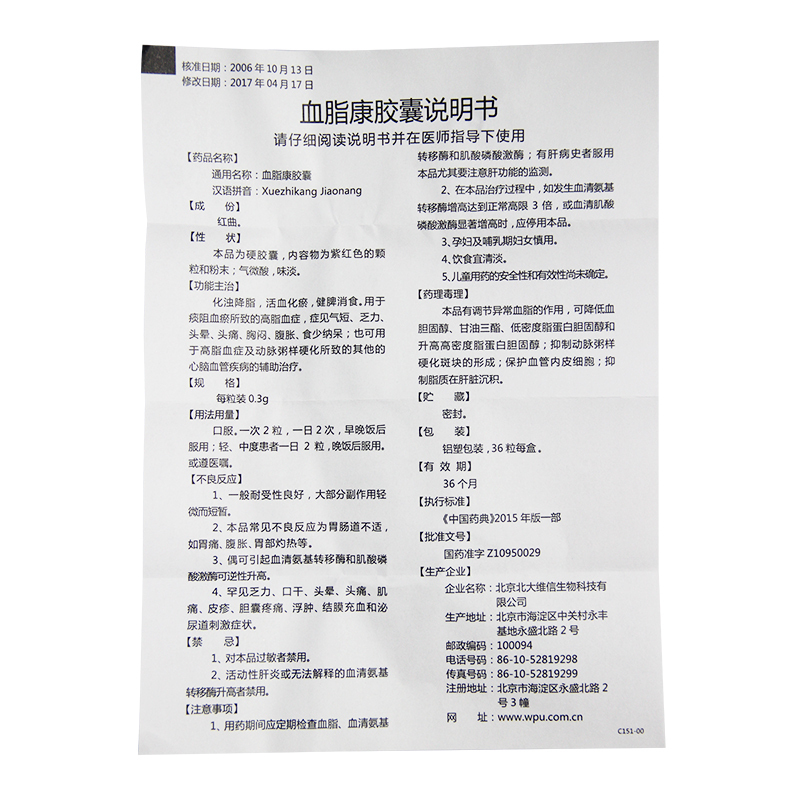 北大维信 * 0.3g*36粒/盒 化浊降脂活血化瘀健脾消食 痰阻血瘀所致高脂血症 气短乏力头晕头痛胸闷腹胀