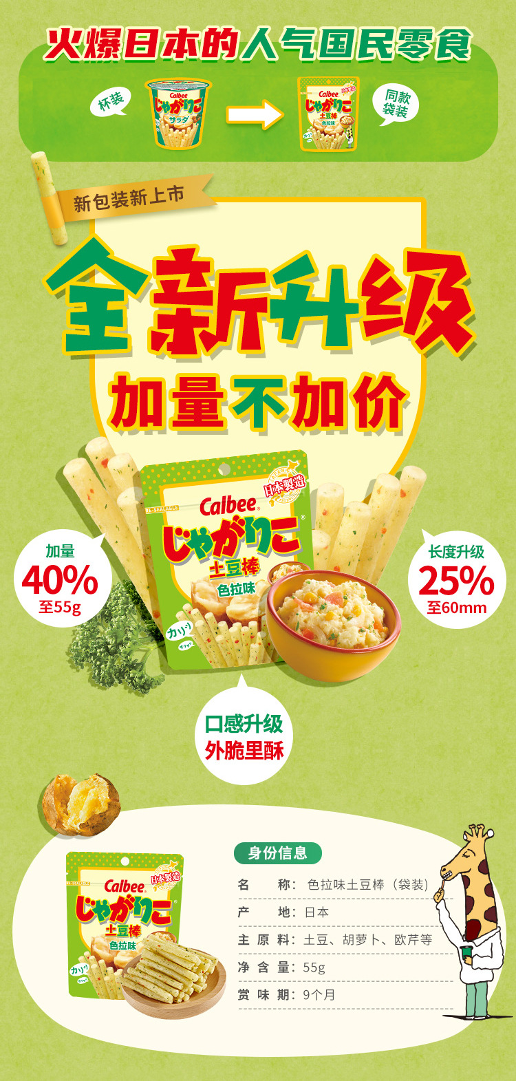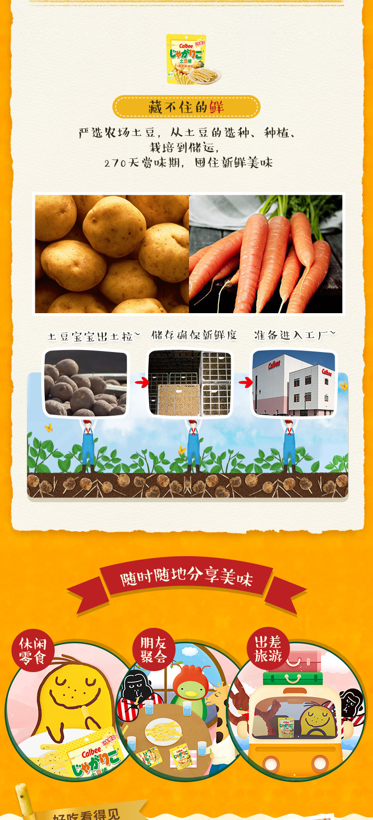 日本进口Calbee卡乐比扇贝黄油酱油味土豆棒55g