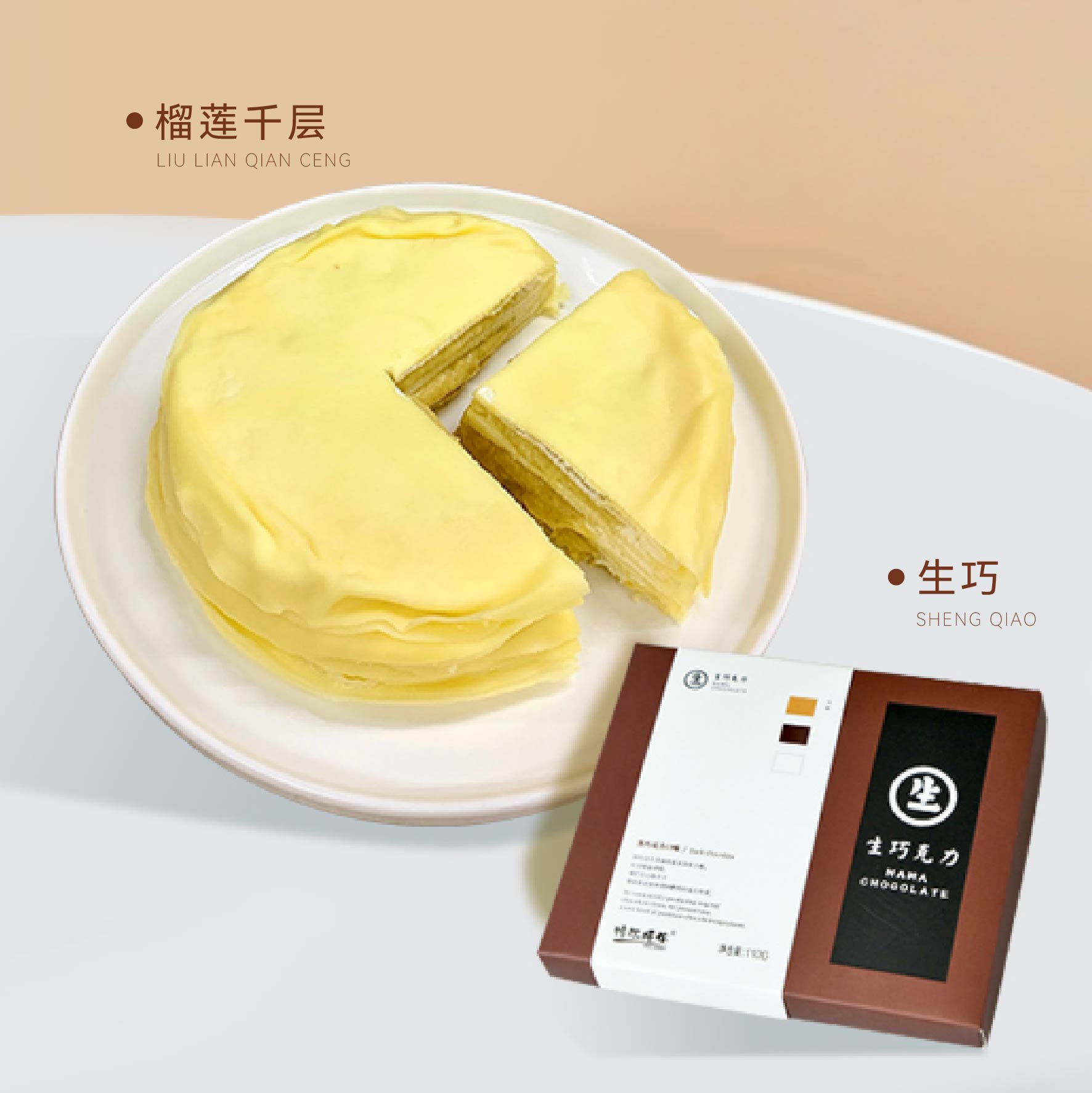 下午茶甜品套餐 - 榴莲千层+生巧 商品图0