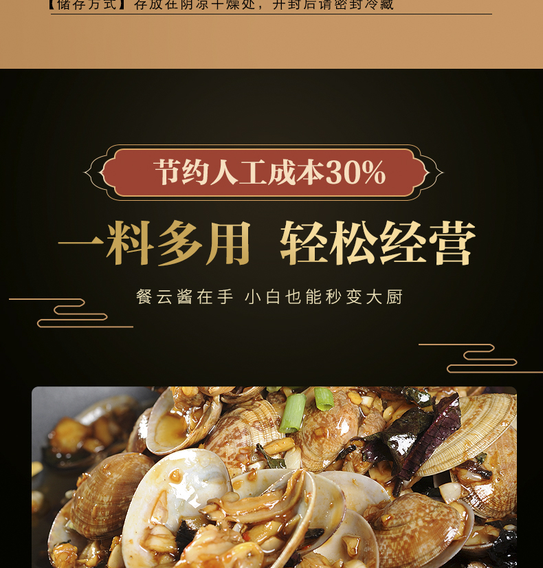 餐云标准化酱料为餐饮节约厨房人工成本30%,无厨师经验从业者通过标准化流程亦可操作,30名国内中餐大厨专家365天持续研发创新!