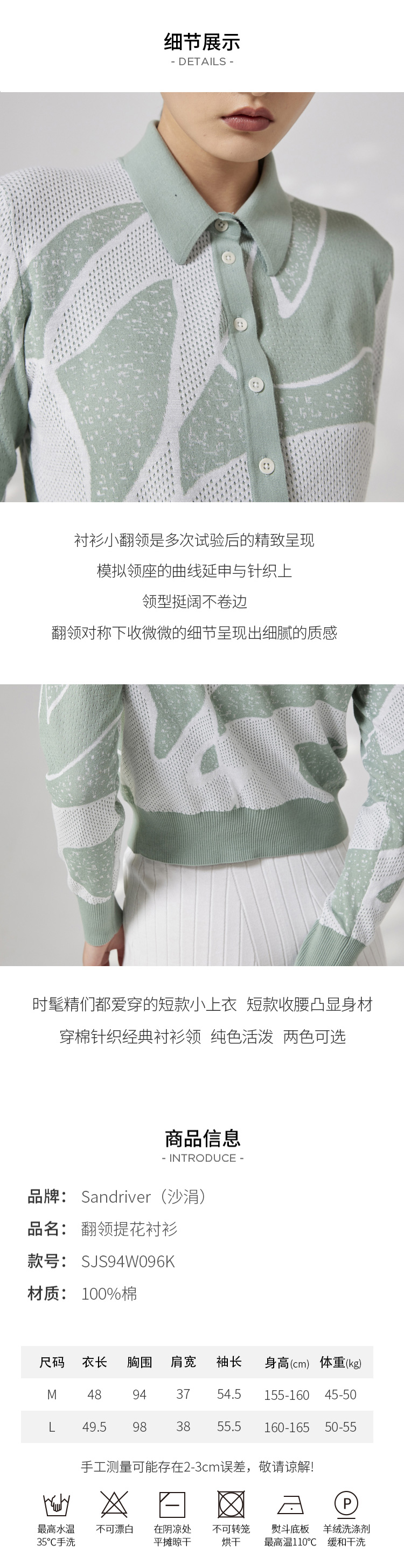 翻领提花针织长袖女开衫 SJS94W096K