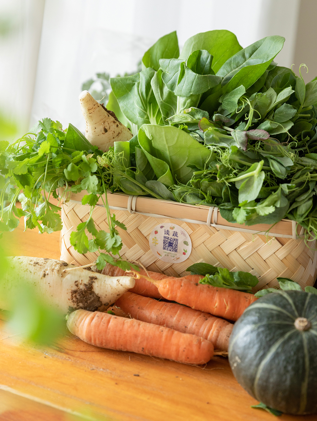 - "读蔬"提倡食在好地,放弃化学农药,让果蔬以最纯粹方式生长。每当采摘之季,有机、健康、美味的食物通过"读蔬"成熟的产品供应链走进千家万户餐桌。