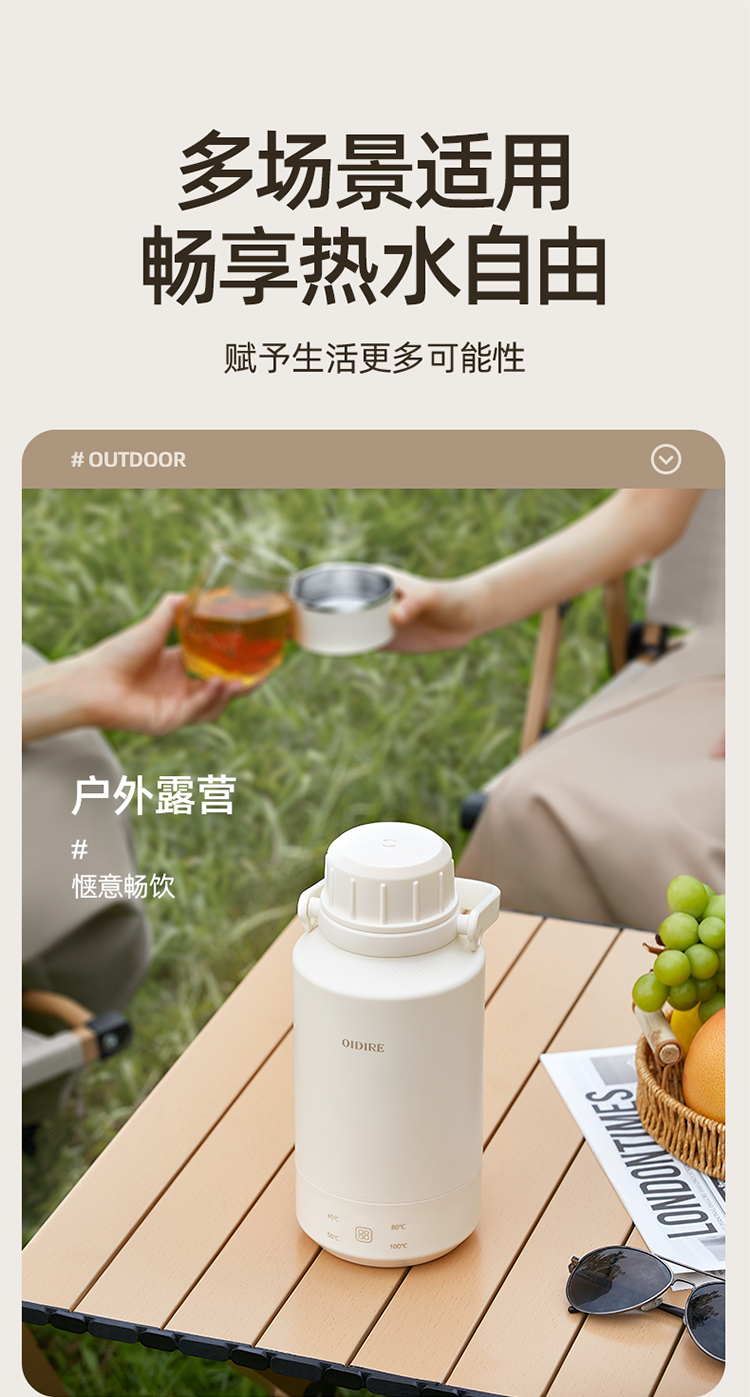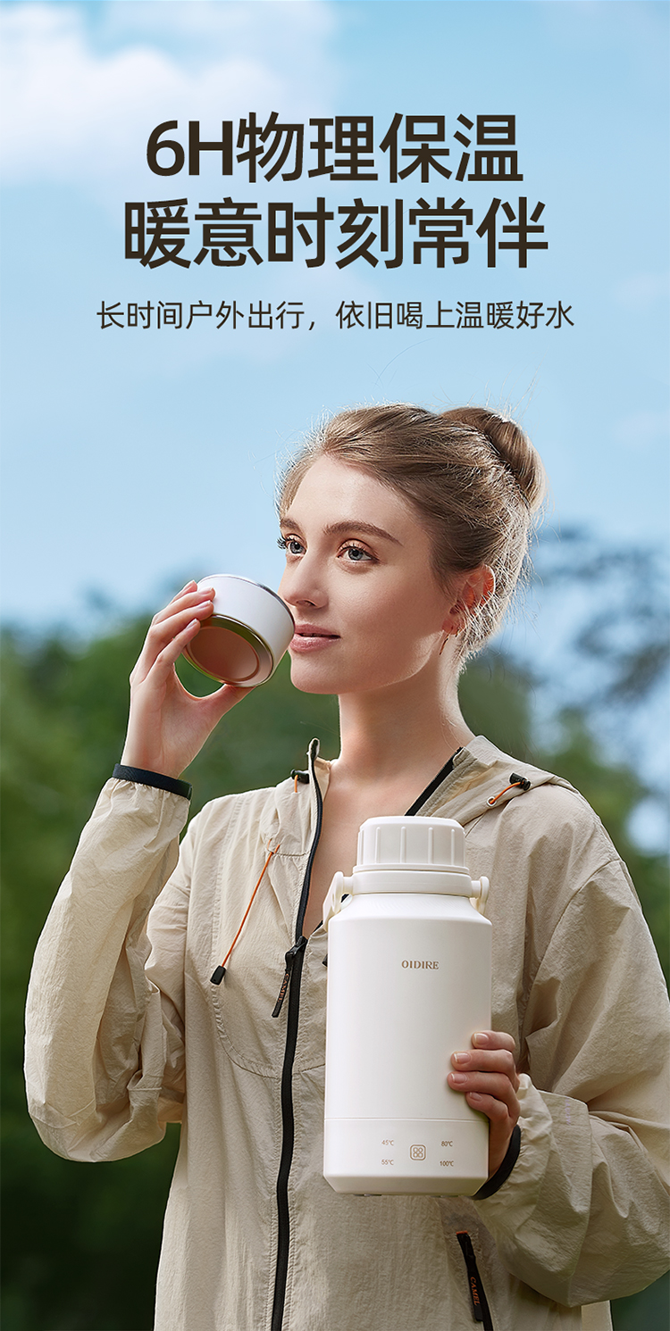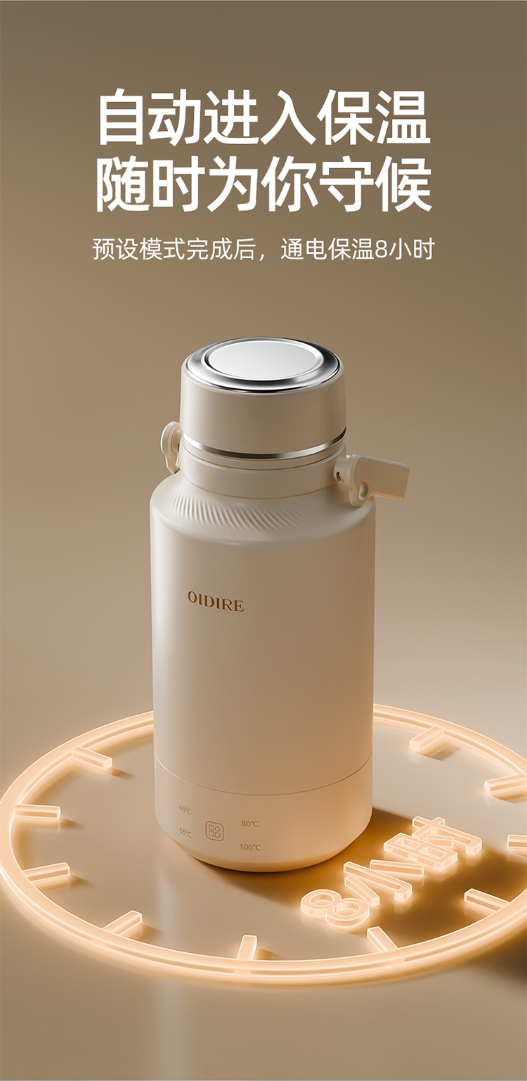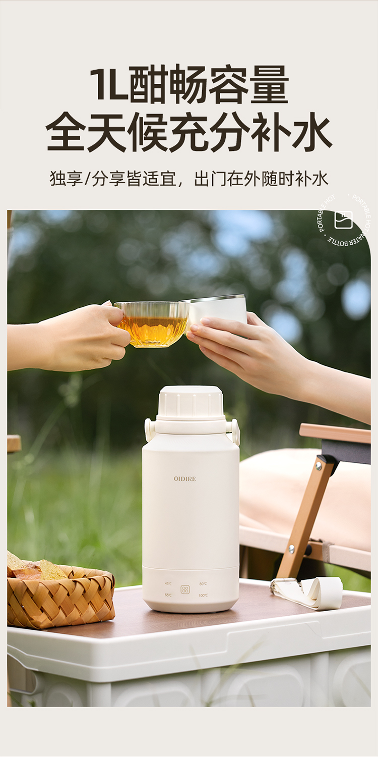 【文怡之选】OIDIRE 便携烧水壶(插电款) 保温壶 1L容量 4档水温调节 304不锈钢内胆 长效保温