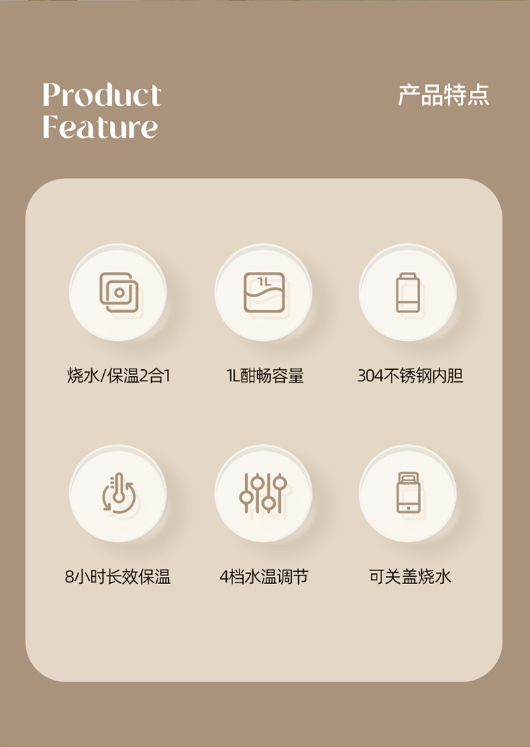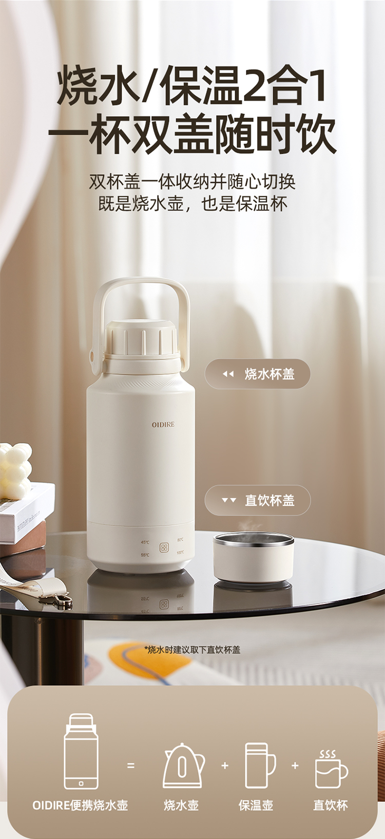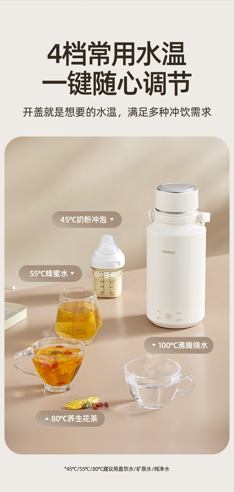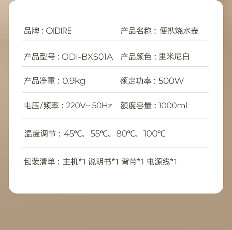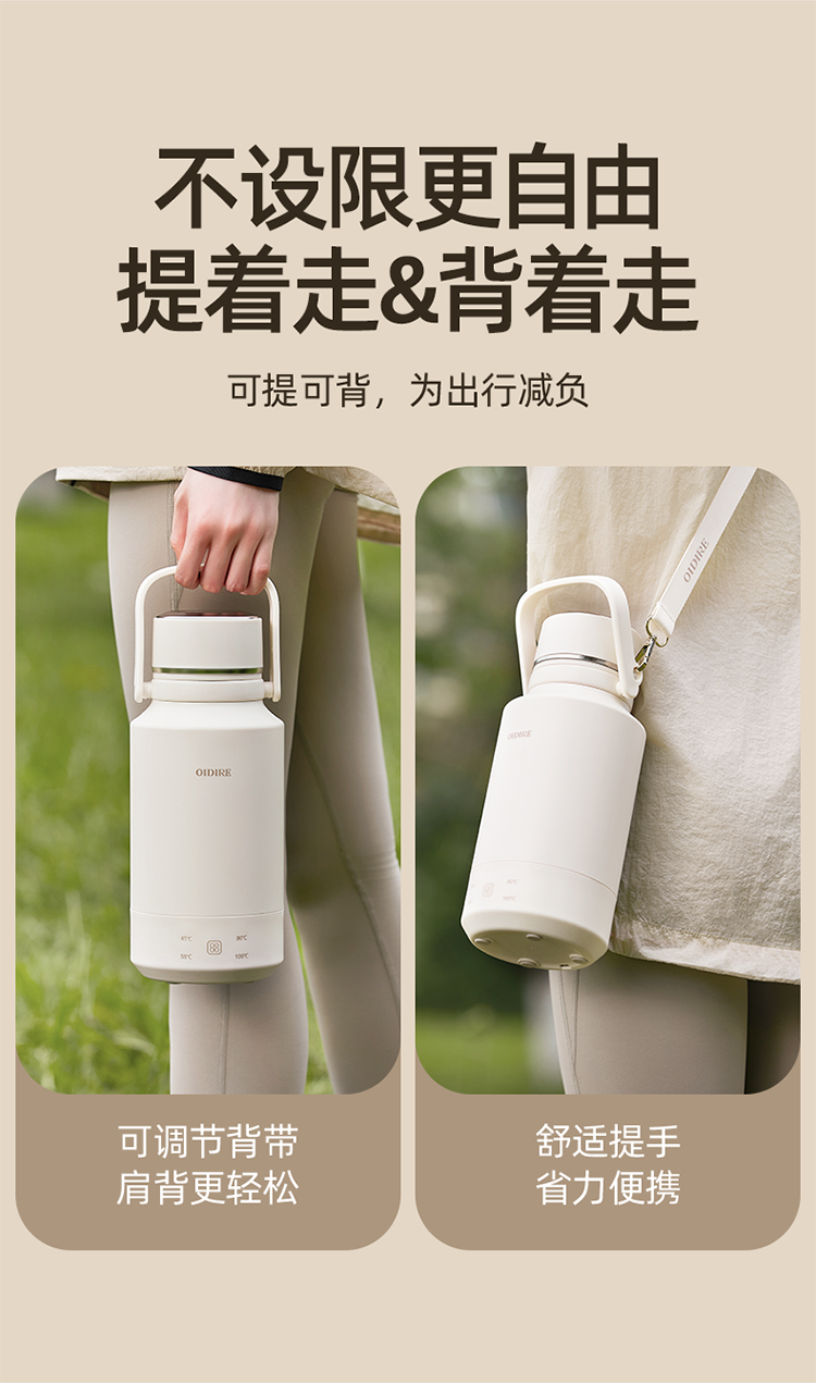 【文怡之选】OIDIRE 便携烧水壶(插电款) 保温壶 1L容量 4档水温调节 304不锈钢内胆 长效保温