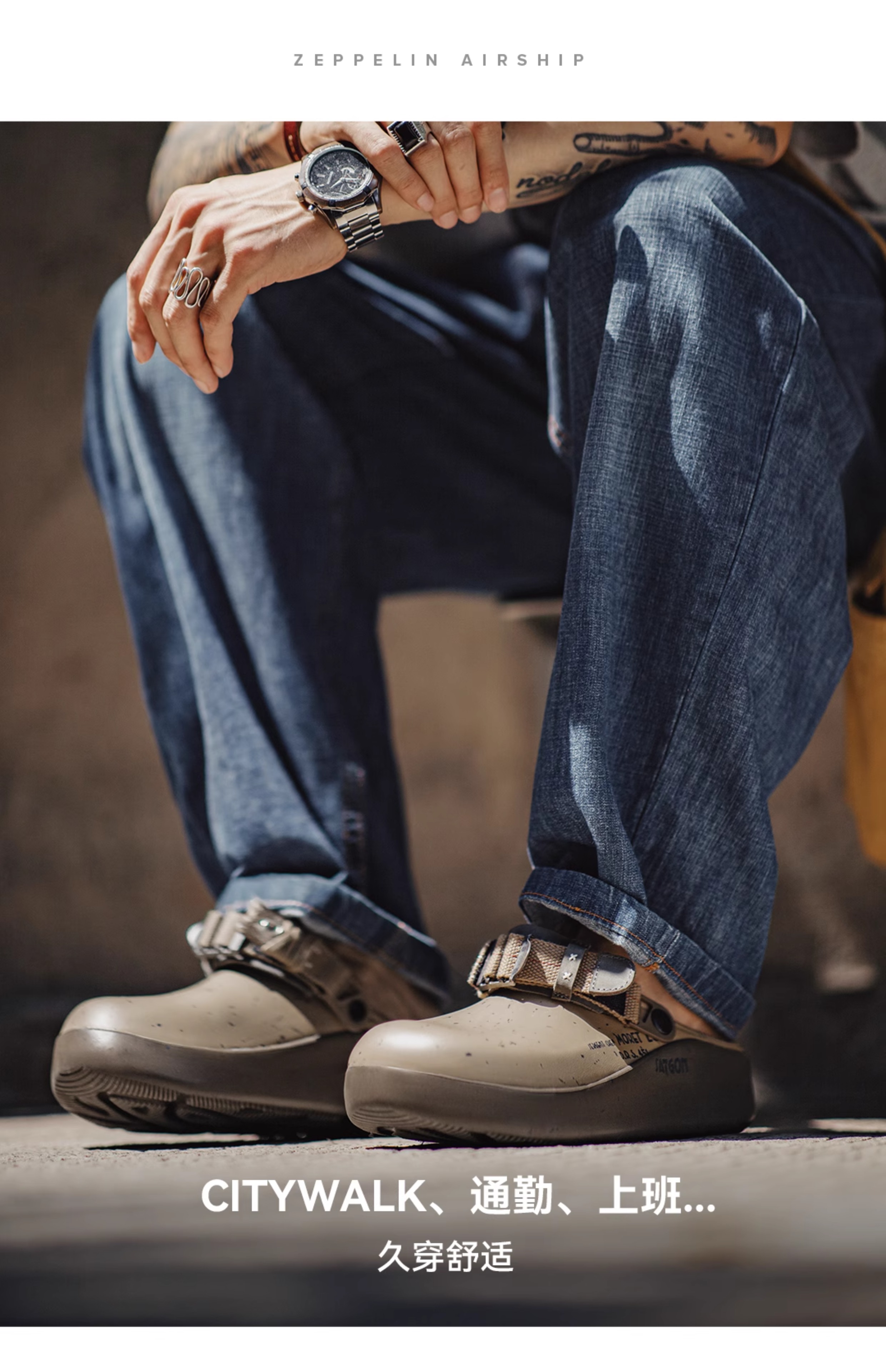 马登洞洞鞋男新款夏季户外沙滩鞋包头半托两穿增高凉拖鞋厨师鞋子