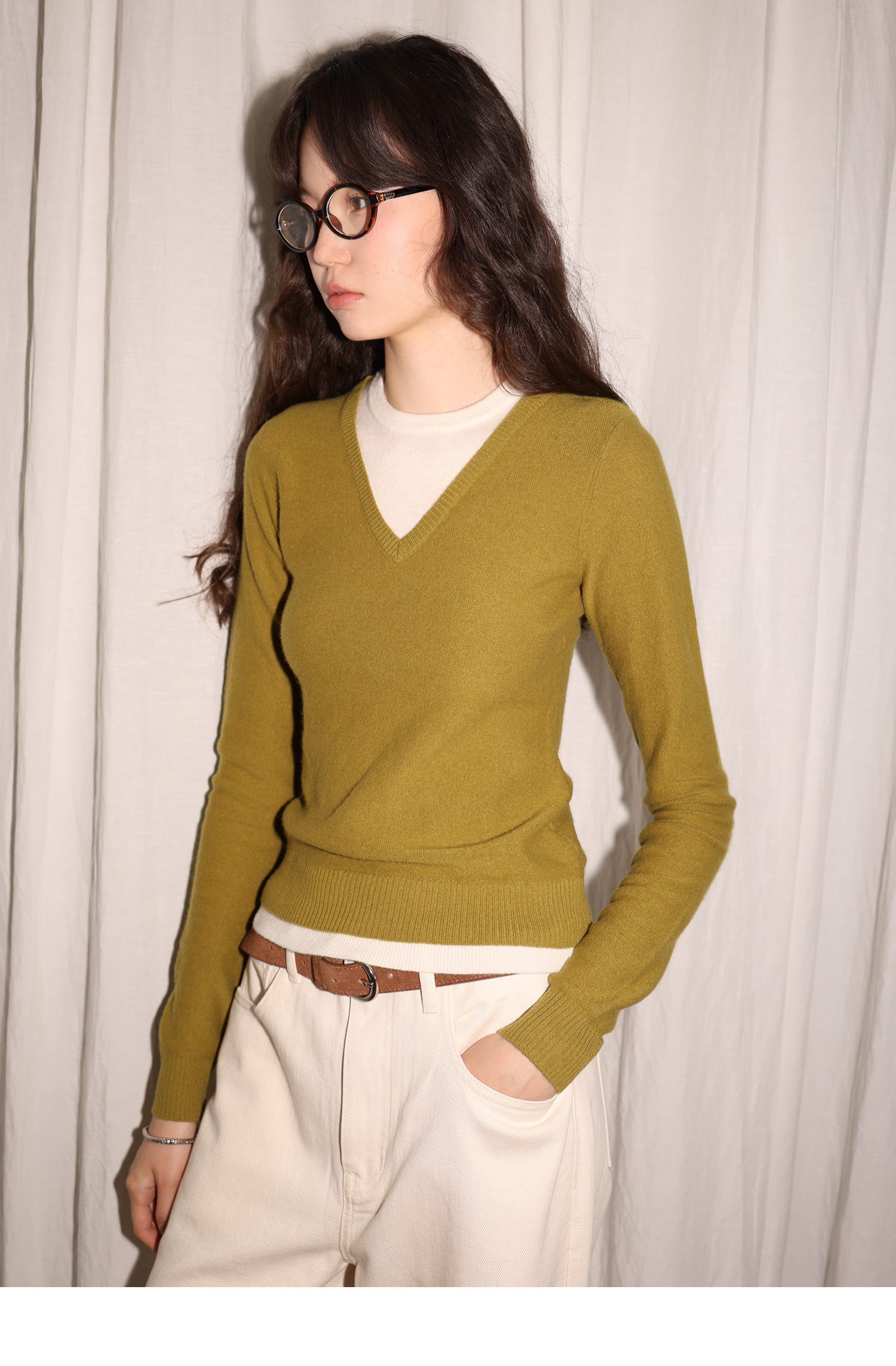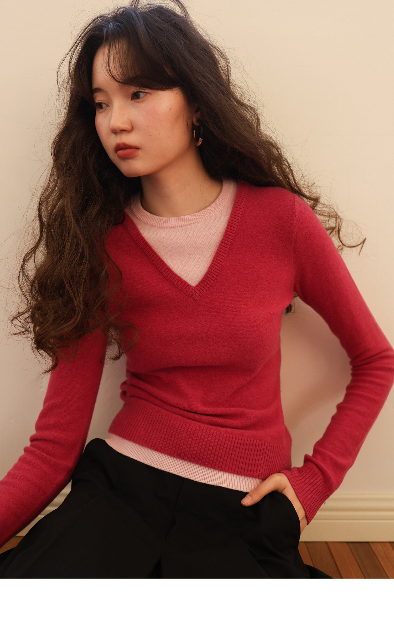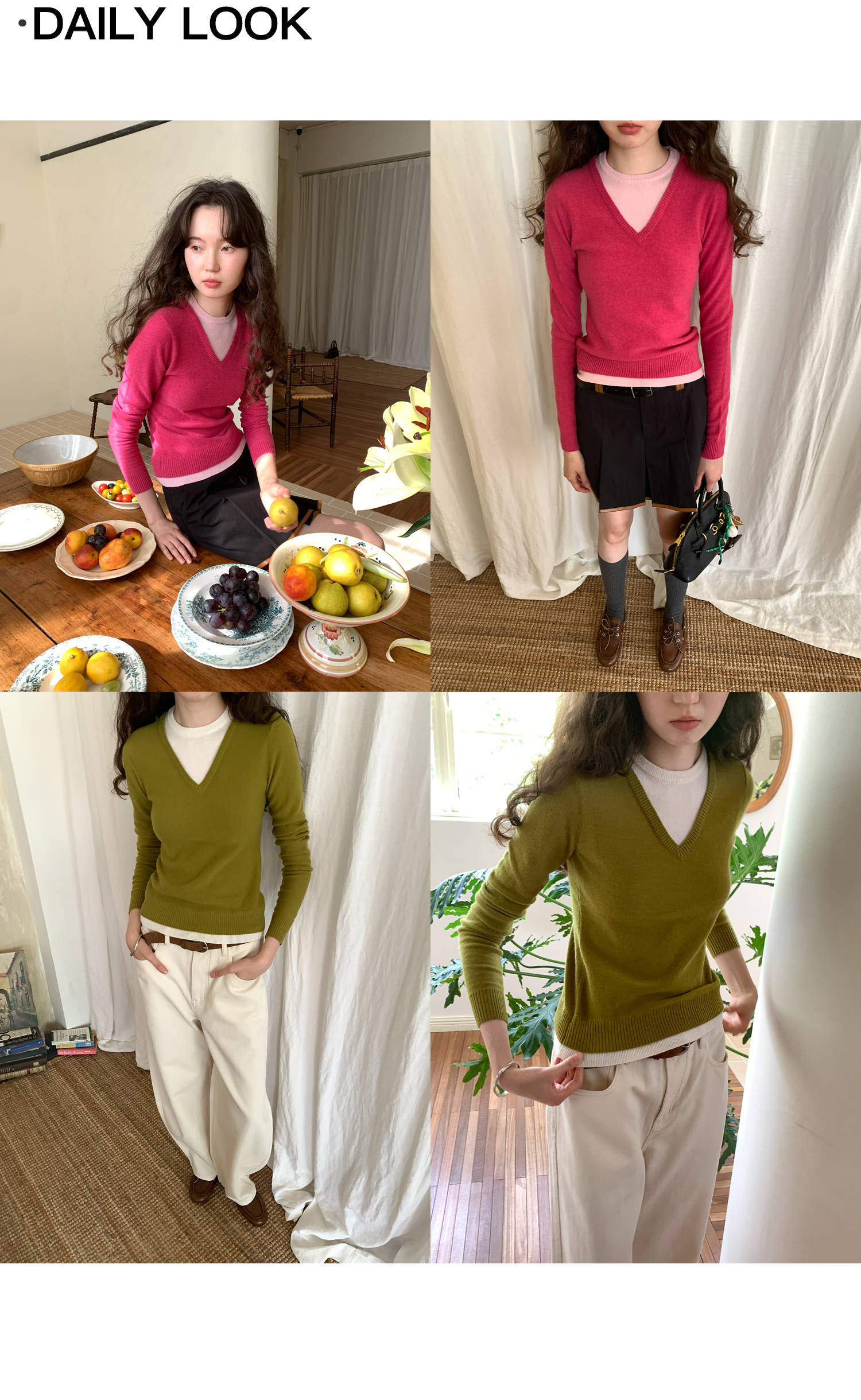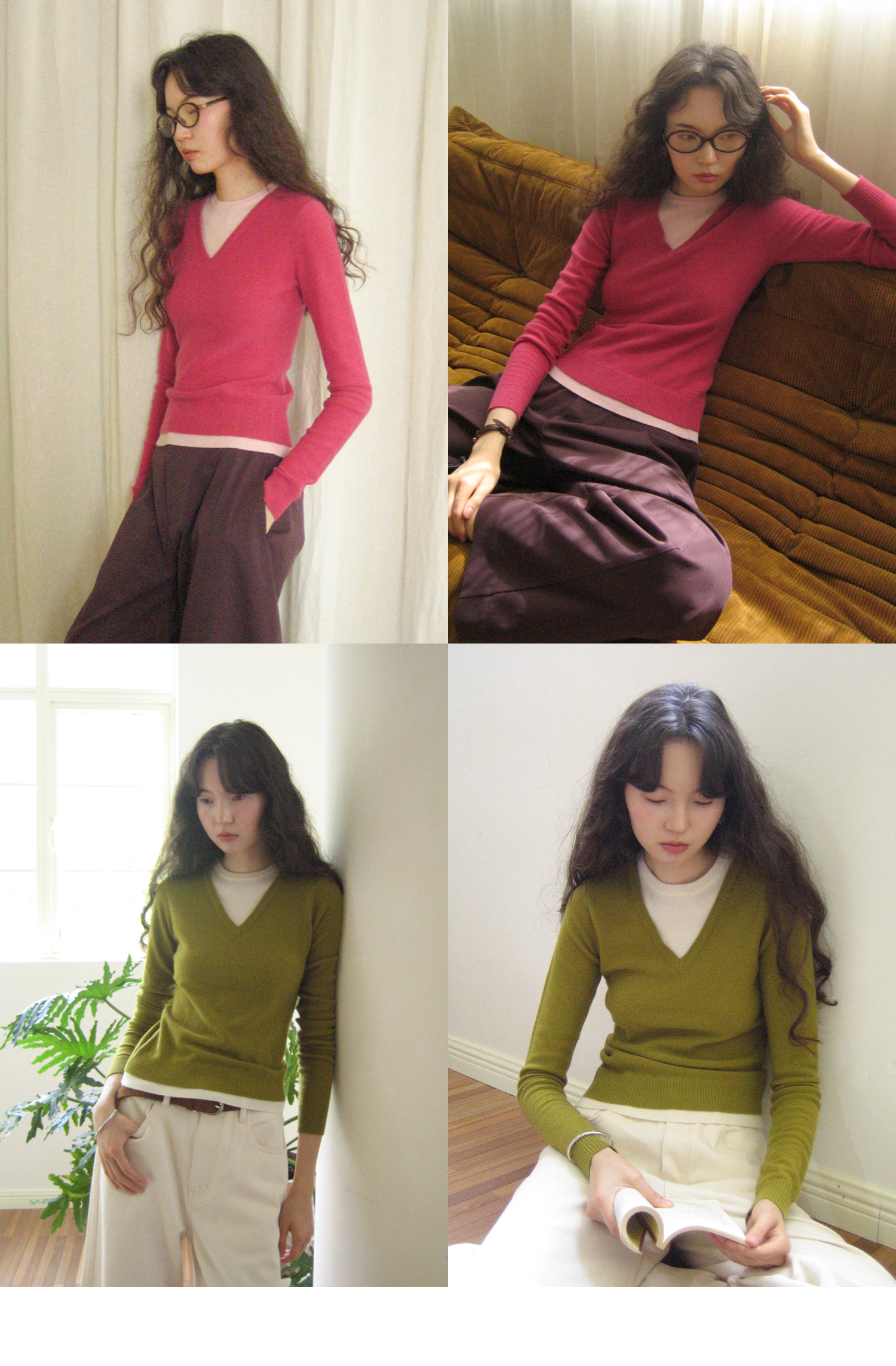 【8/25新品】素舶 100S进口澳洲美利奴羊毛柔软亲肤不扎假两件V领撞色针织衫