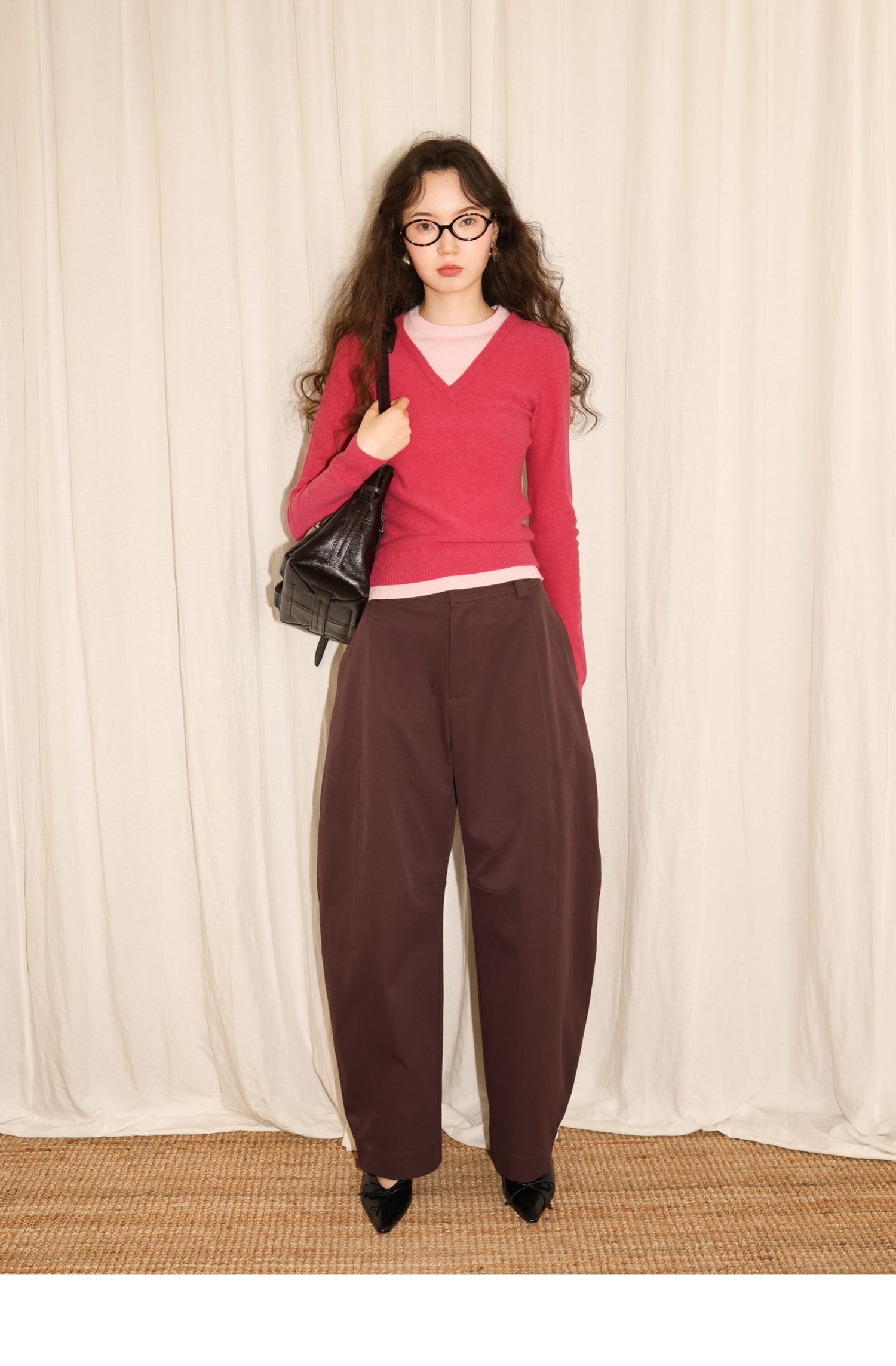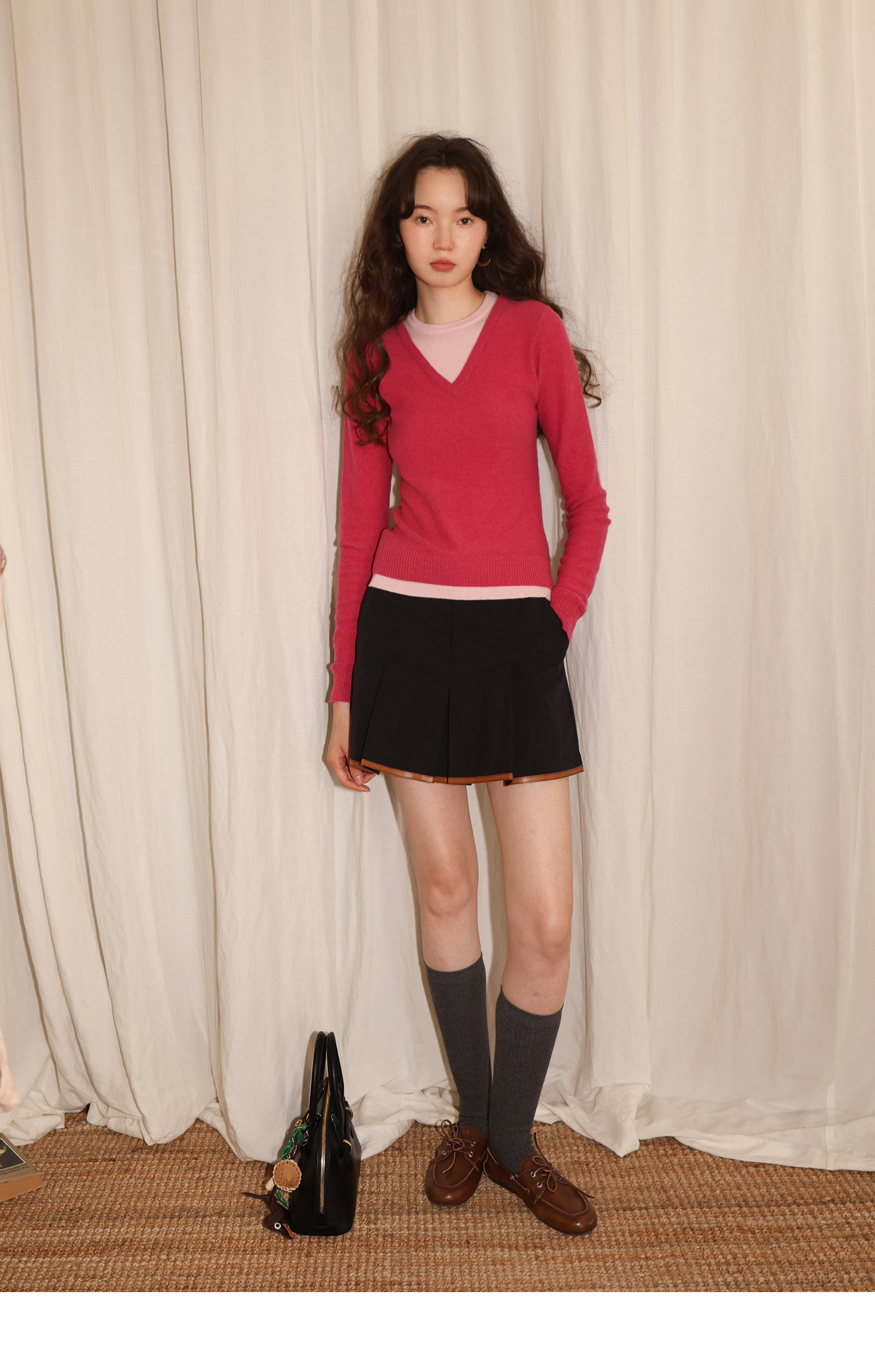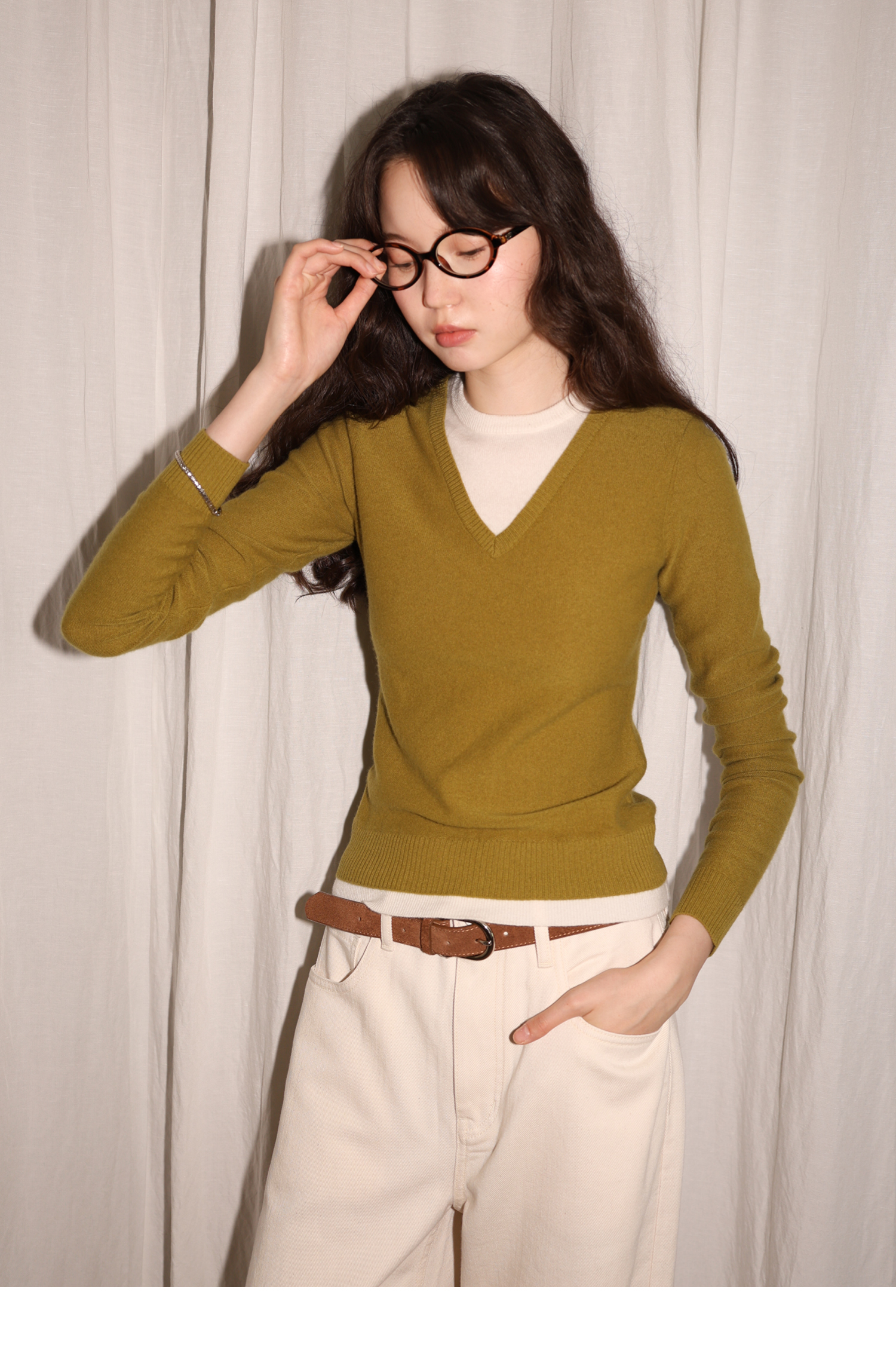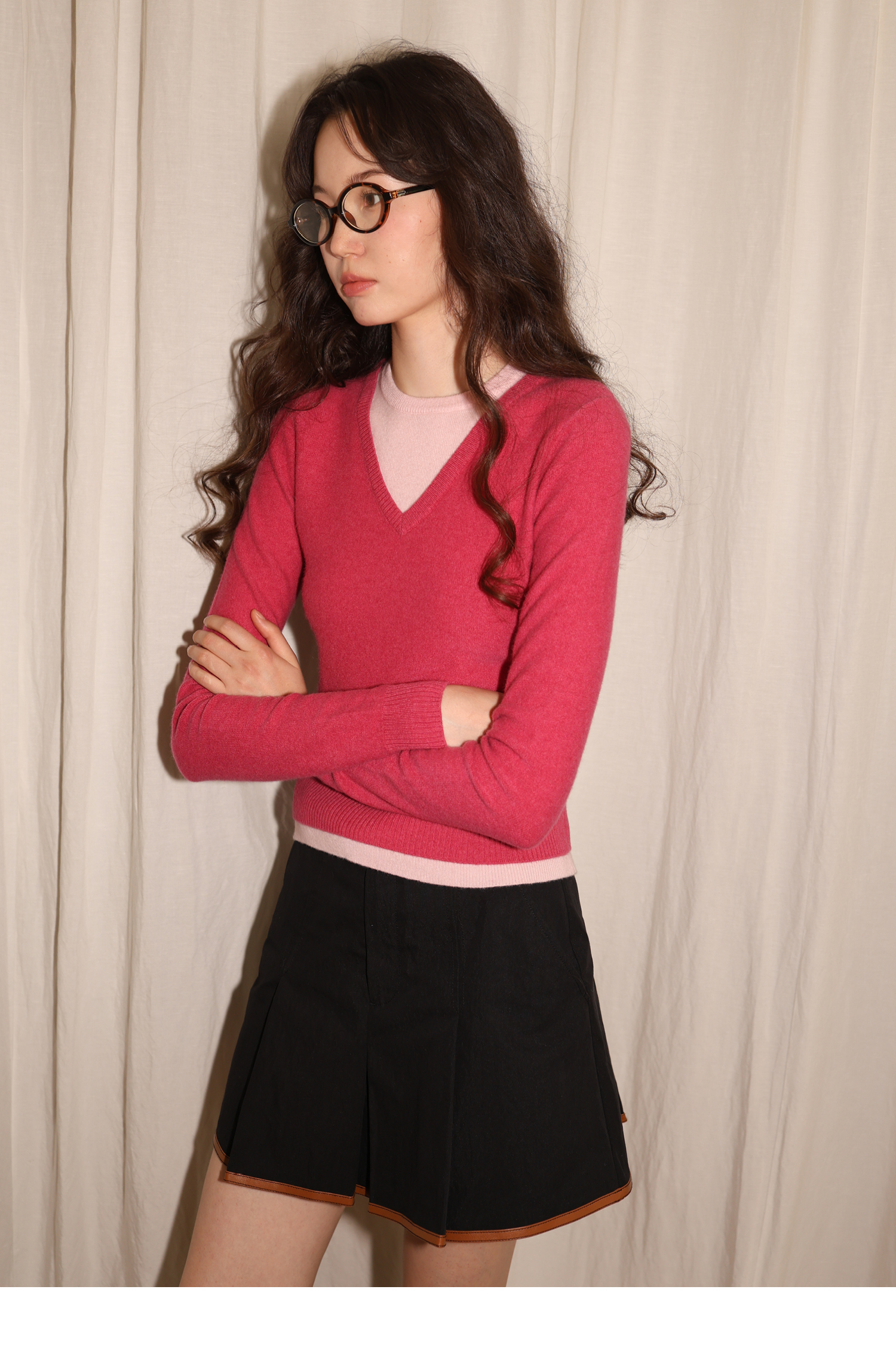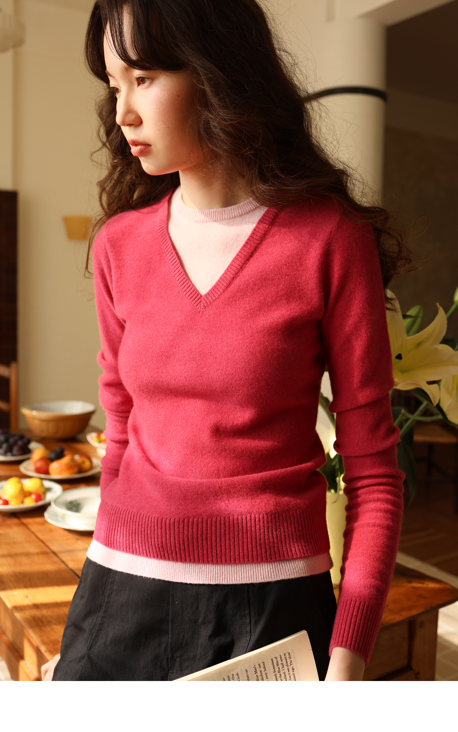 【8/25新品】素舶 100S进口澳洲美利奴羊毛柔软亲肤不扎假两件V领撞色针织衫