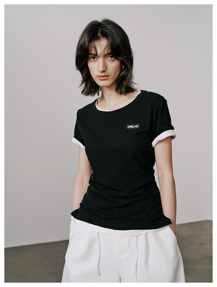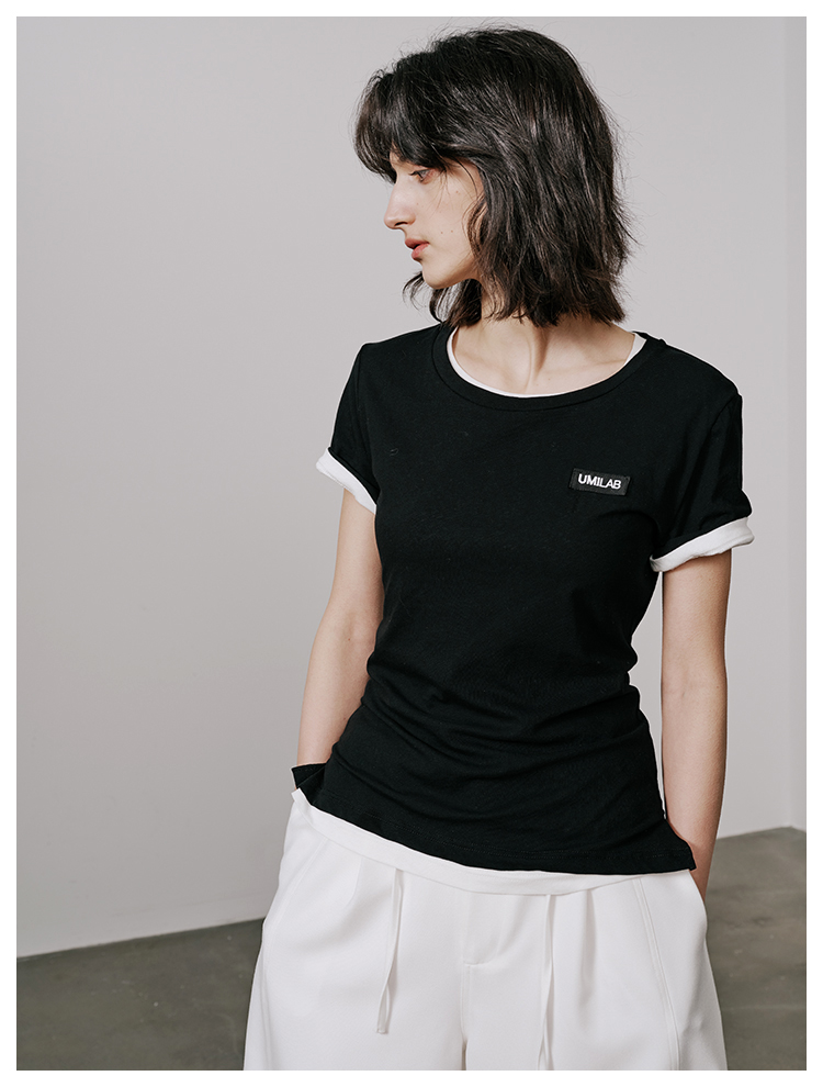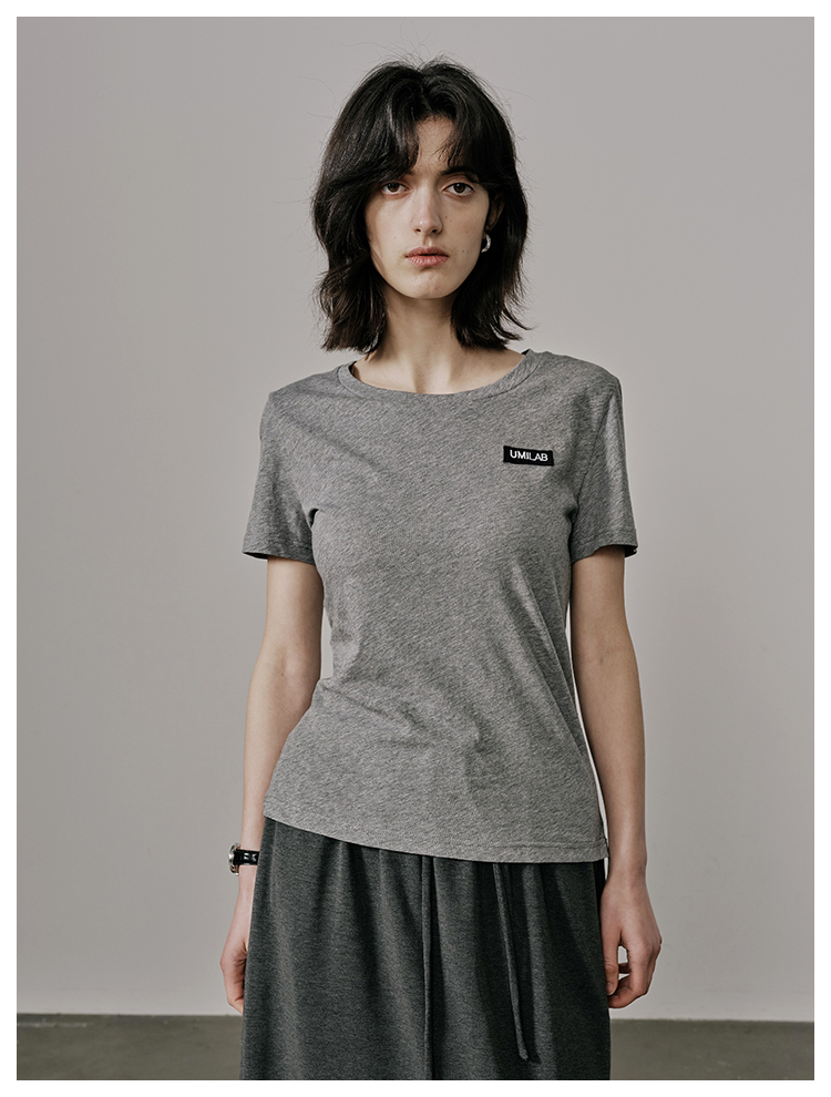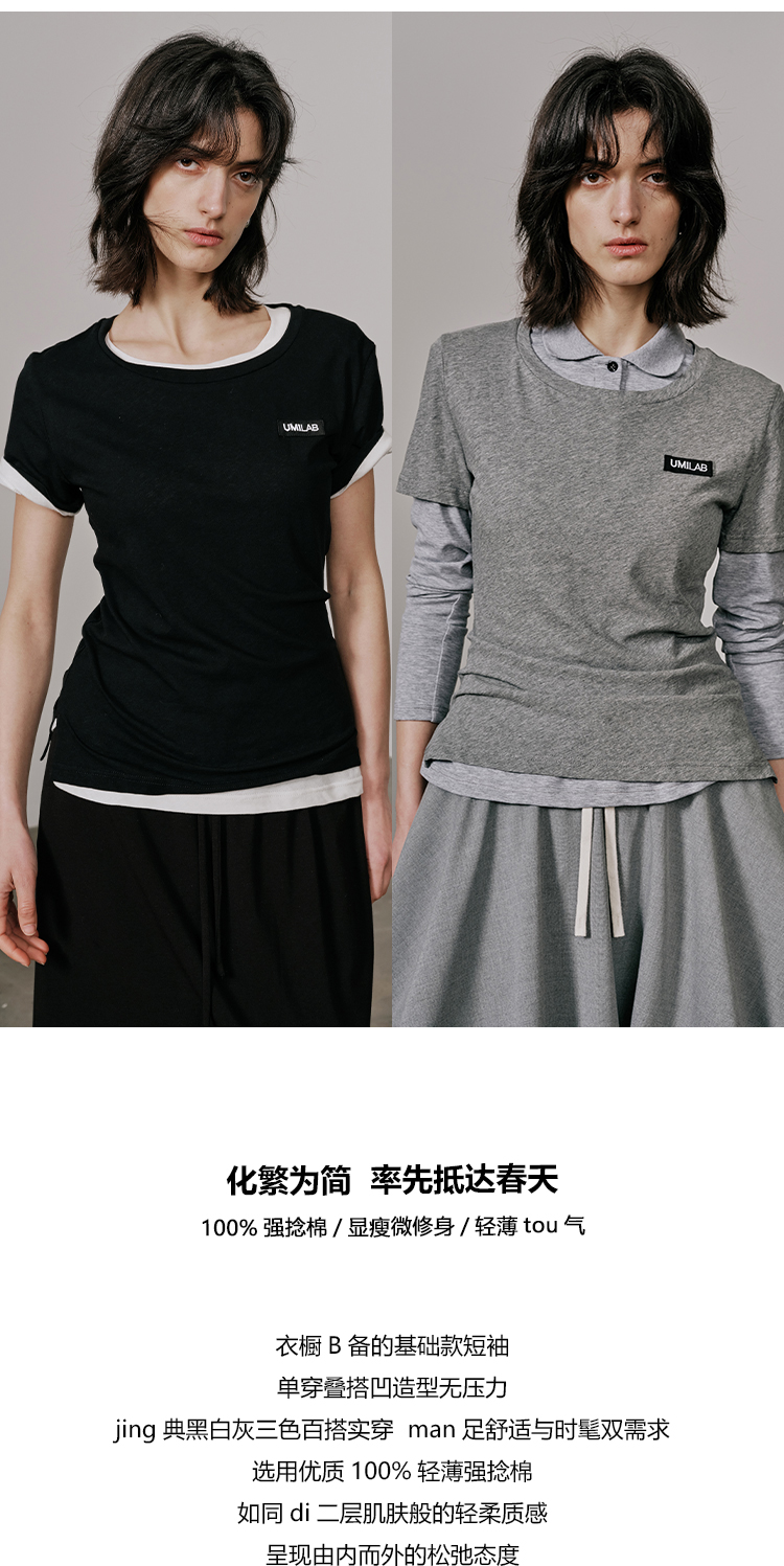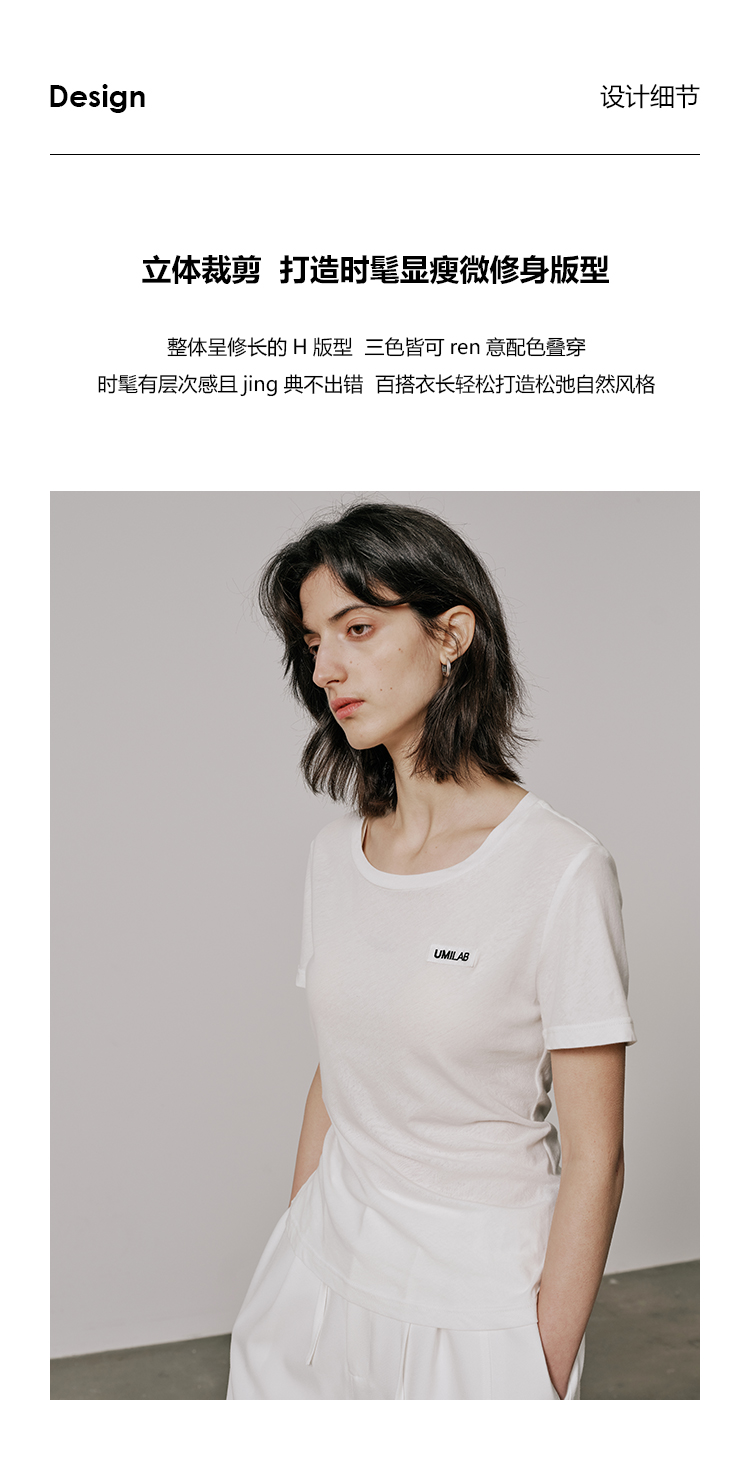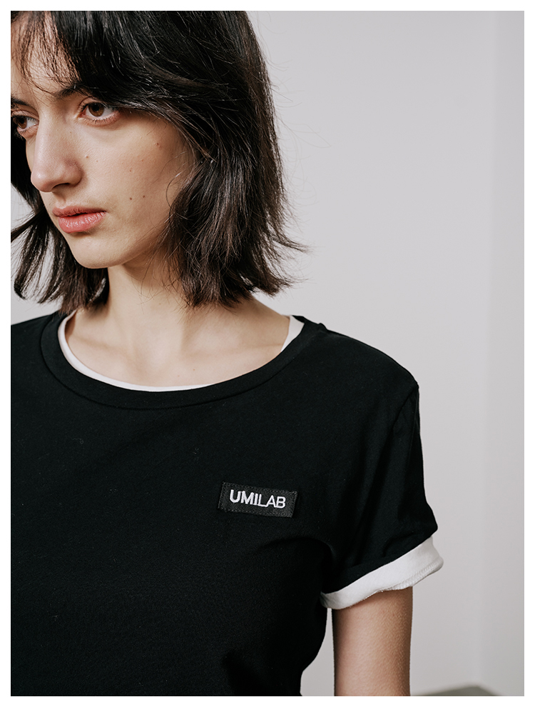 UMILAB【游离】100%强捻棉经典黑白灰微修身春夏短袖T恤女T715W