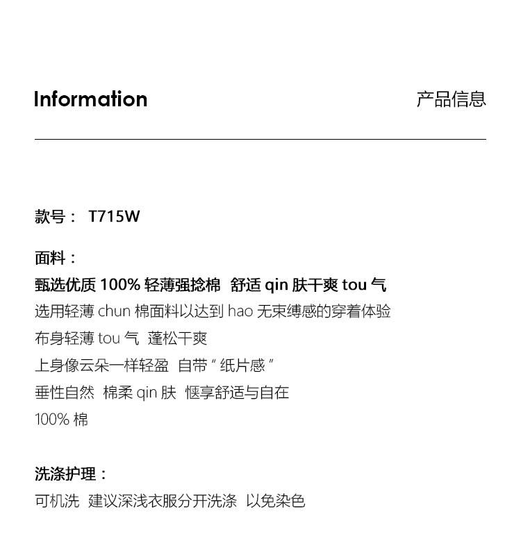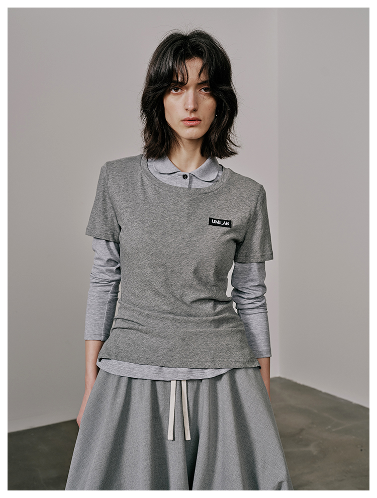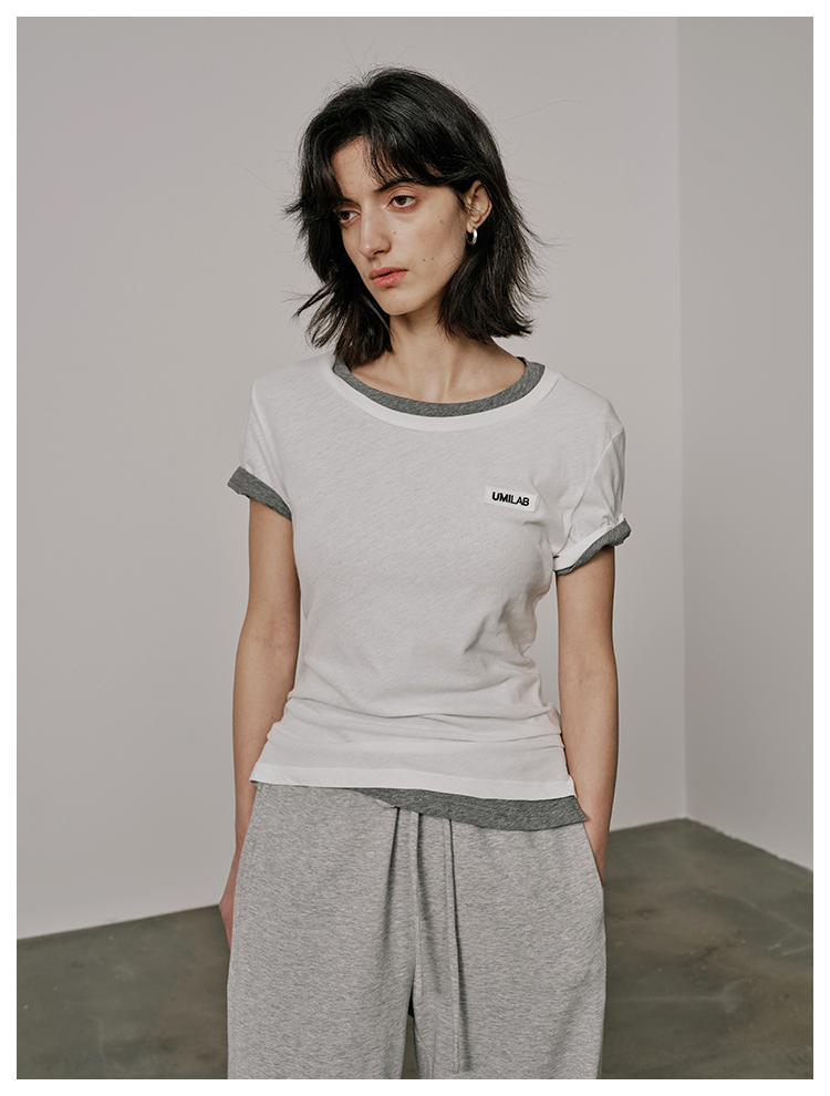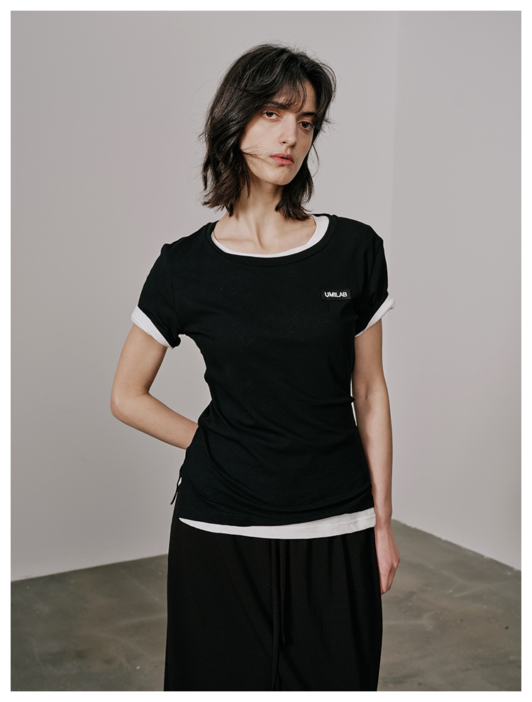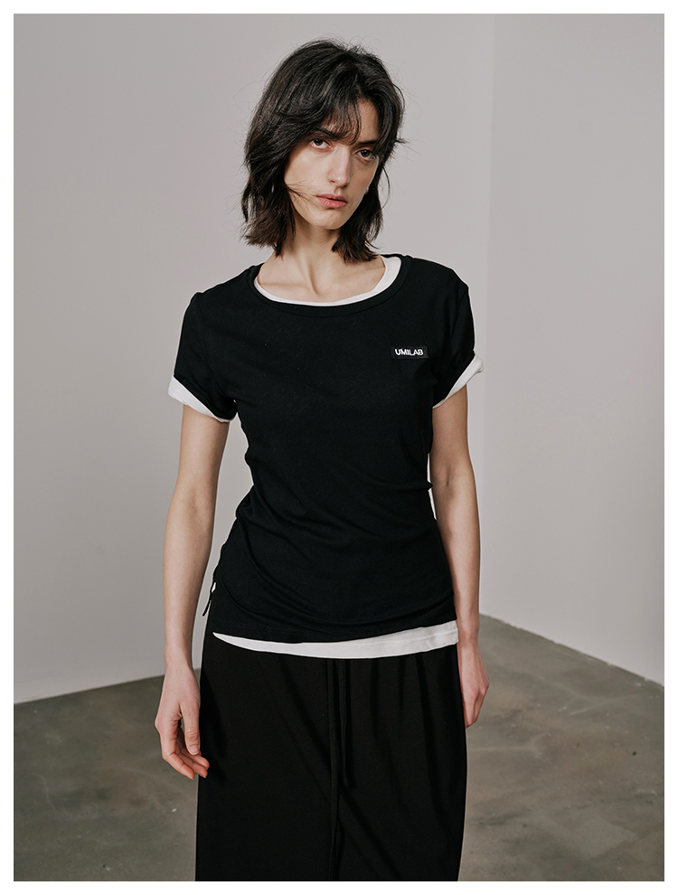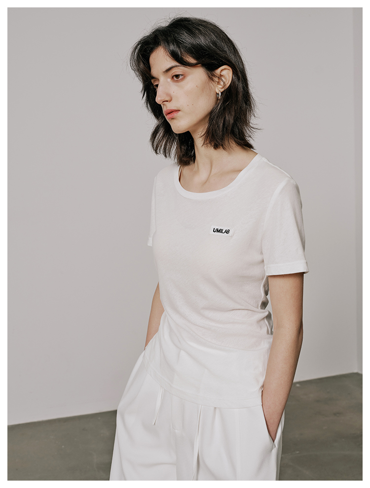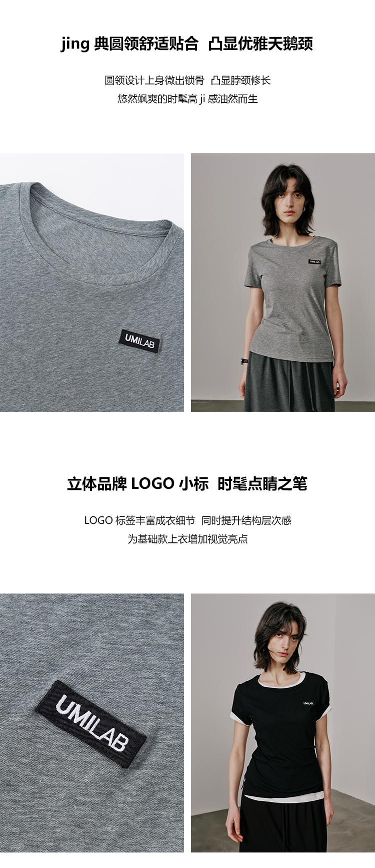 UMILAB【游离】100%强捻棉经典黑白灰微修身春夏短袖T恤女T715W