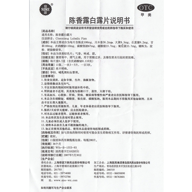 信谊 陈香露白露片200片 健胃止痛 胃酸过多 慢性胃炎药胃脘痛