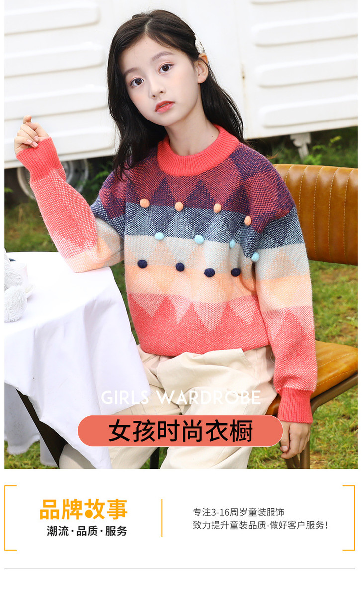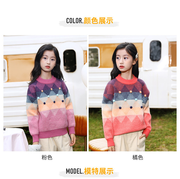 【女童加绒加厚毛衣秋冬新款】2020儿童中大童打底针织衫宽松毛线衣