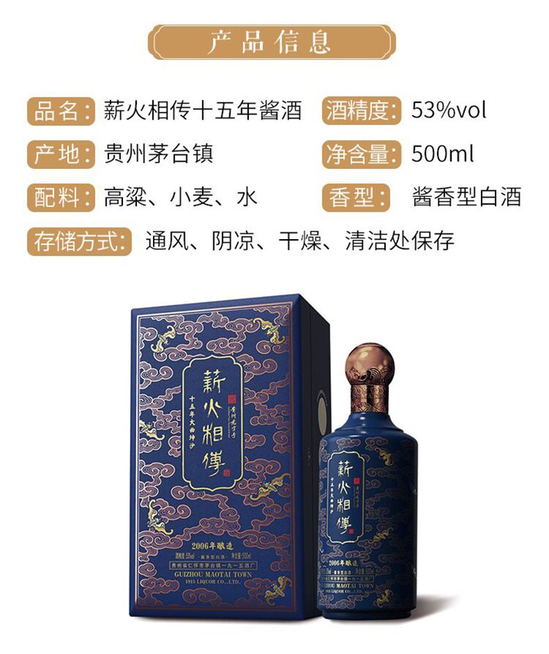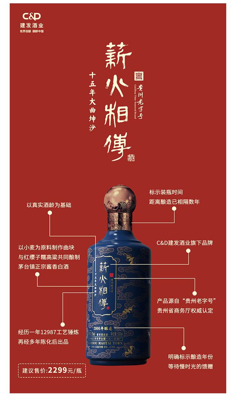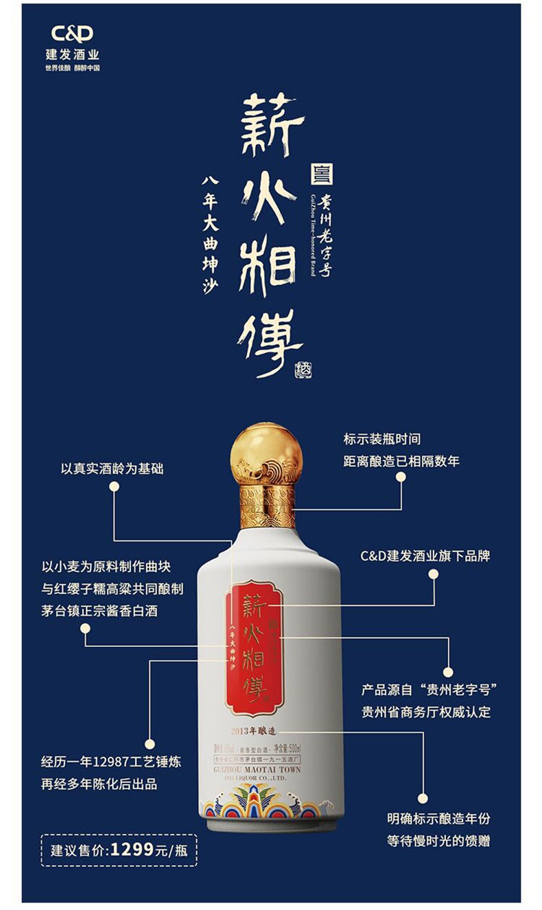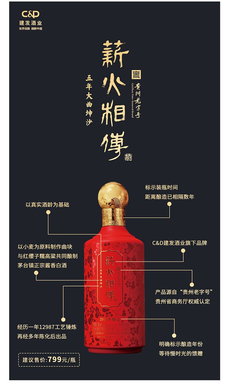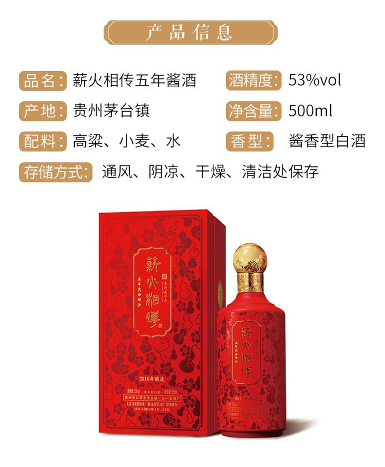 建发酒业 53度薪火相传酱酒 六瓶装 500ml 茅台镇 酱香型白酒 大曲坤沙纯粮固态发酵 五年酱香(2016年酿造)