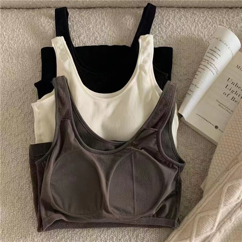 【买一送一!超美毛圈保暖背心】自带胸垫,免穿内衣文胸垫,超舒服!新款无缝加绒加厚条纹发热打底内搭