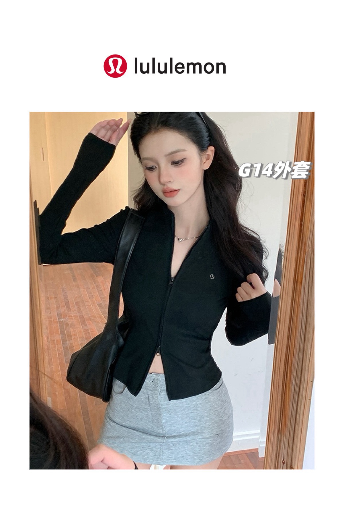 一包2件装,为你而生!一眼出圈,入秋必备小外套!lulu2025秋季新款女士小螺纹立领+双拉链外套,不挑身材,百搭色系,春季解锁穿搭无压力!