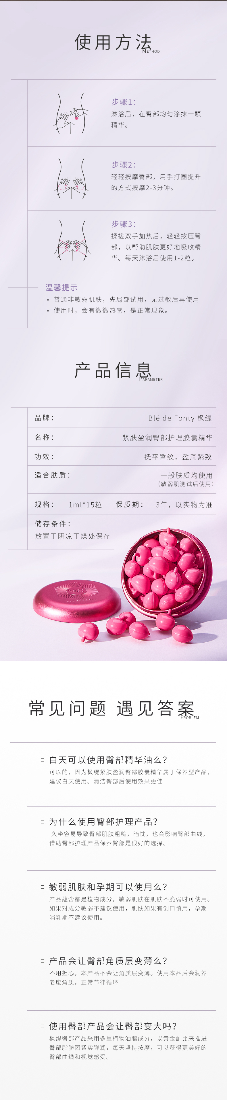 「臀部专用」新加坡BLE DE FORTY · 枫缇布蕾 臀部均匀肤色痘印护理胶囊精华 1ml*15粒|品牌直发