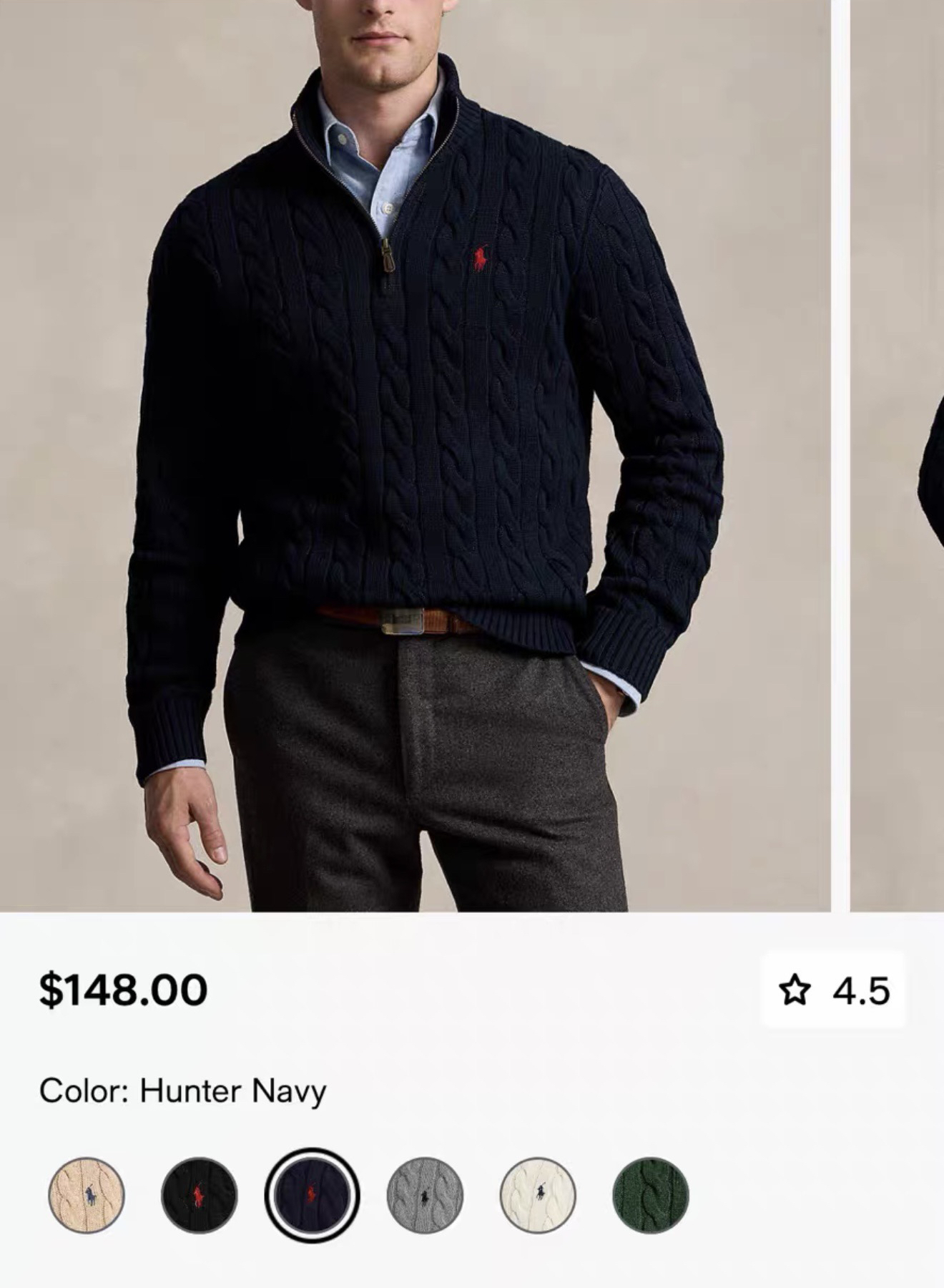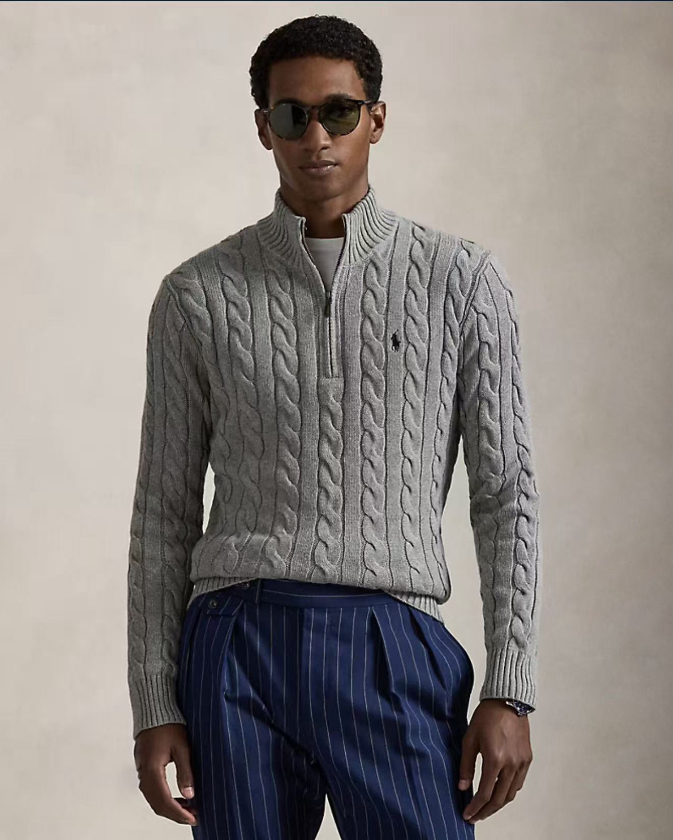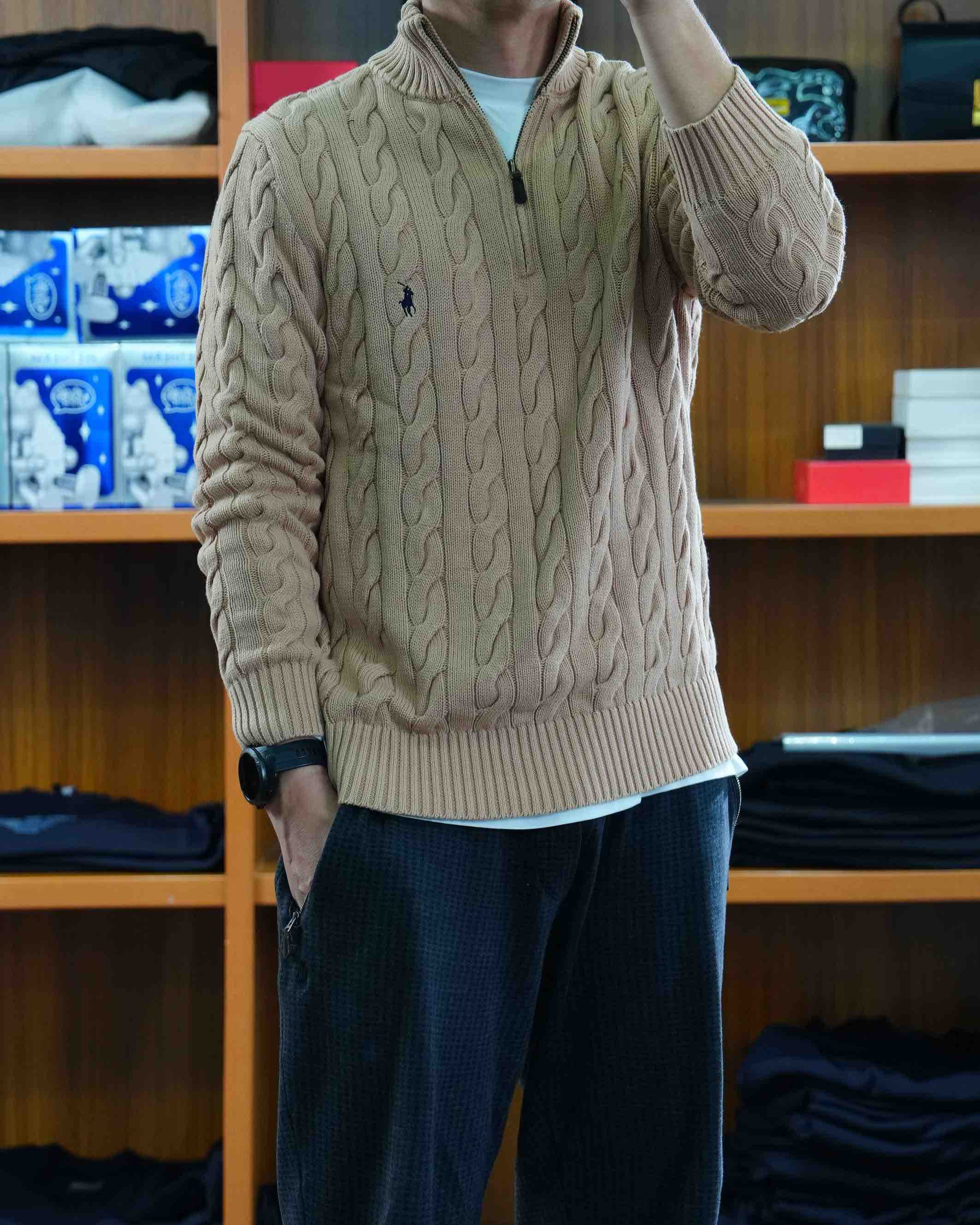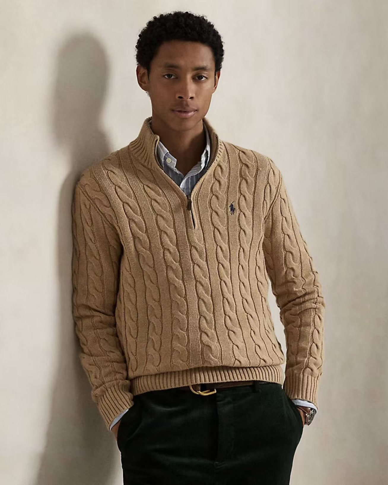 原单 Polo Ralph Lauren 男士半拉链绞花针织毛衣 美式复古的温暖质感