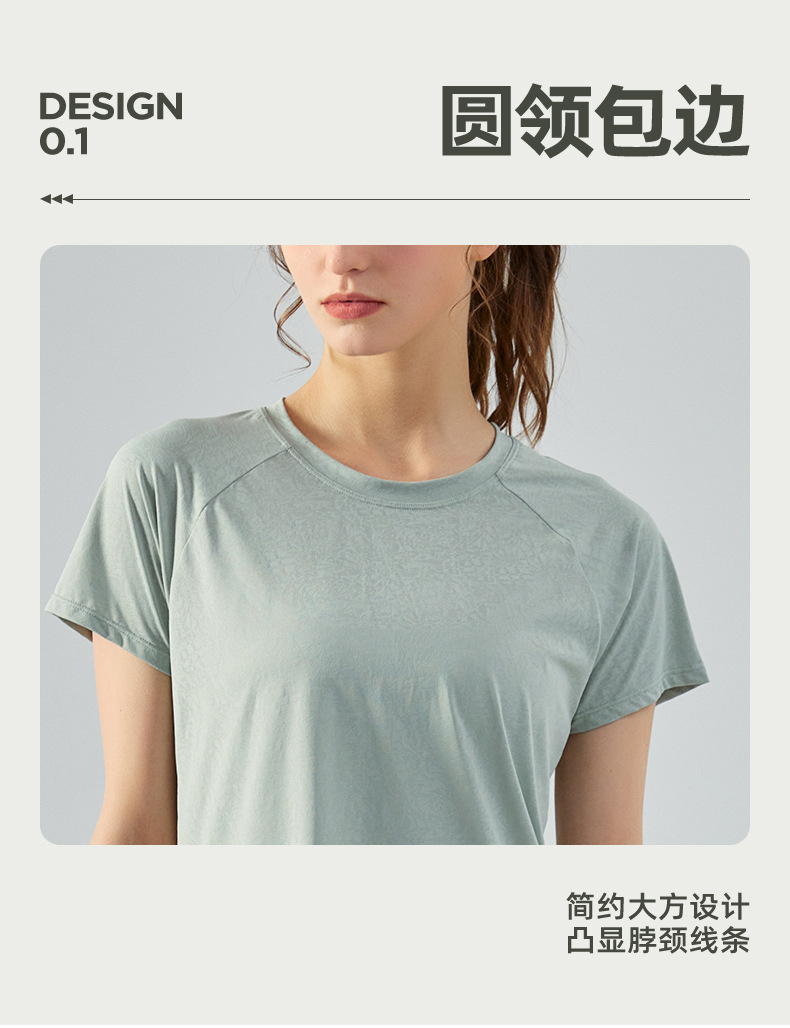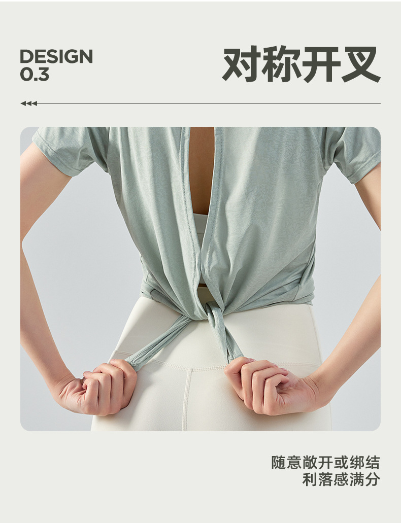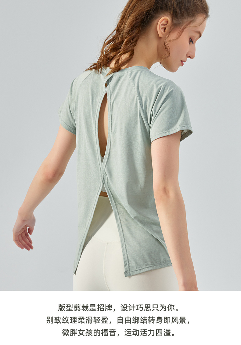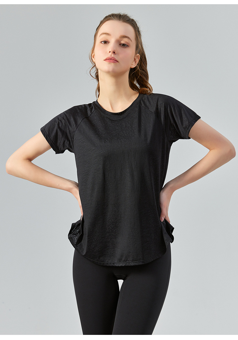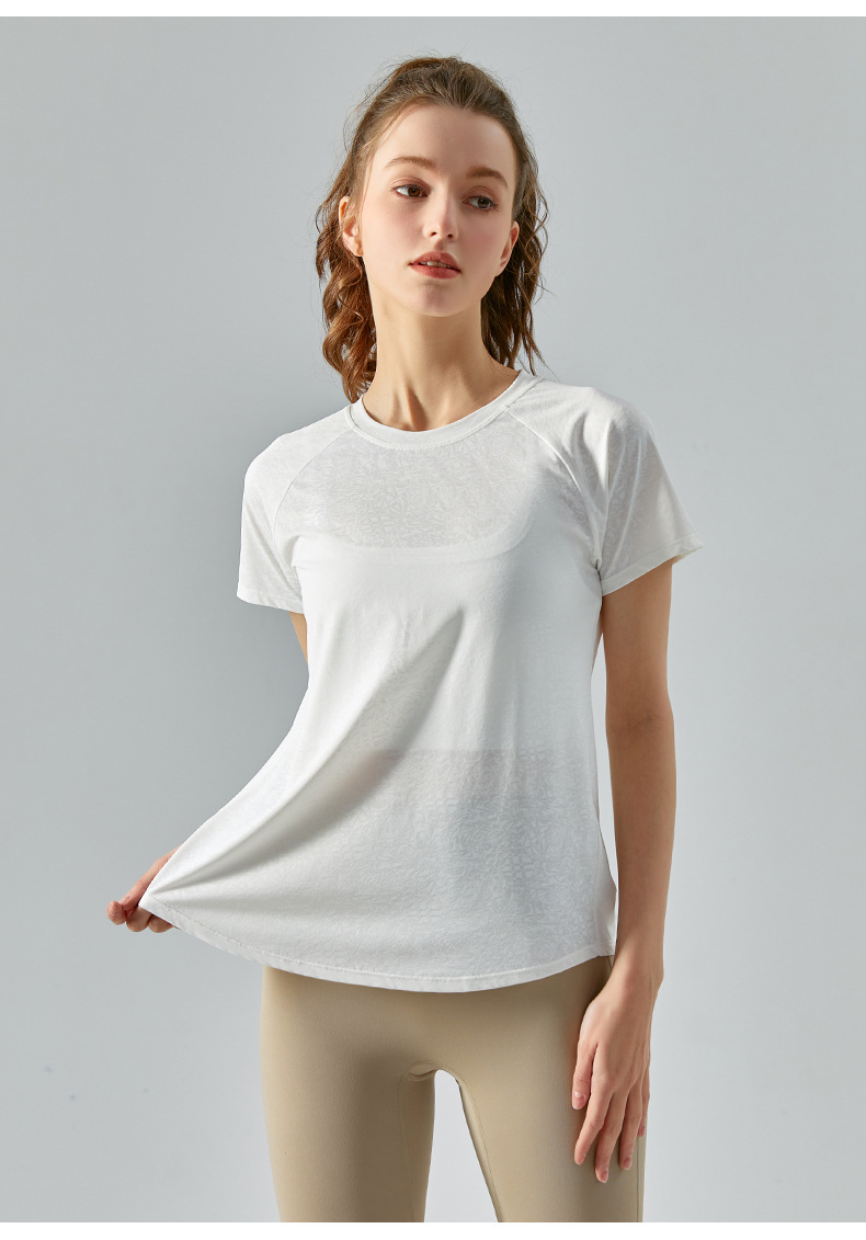 新款提花开叉镂空瑜伽罩衫女轻薄快干短袖t恤宽松透气瑜伽服上衣 DS 000 T538