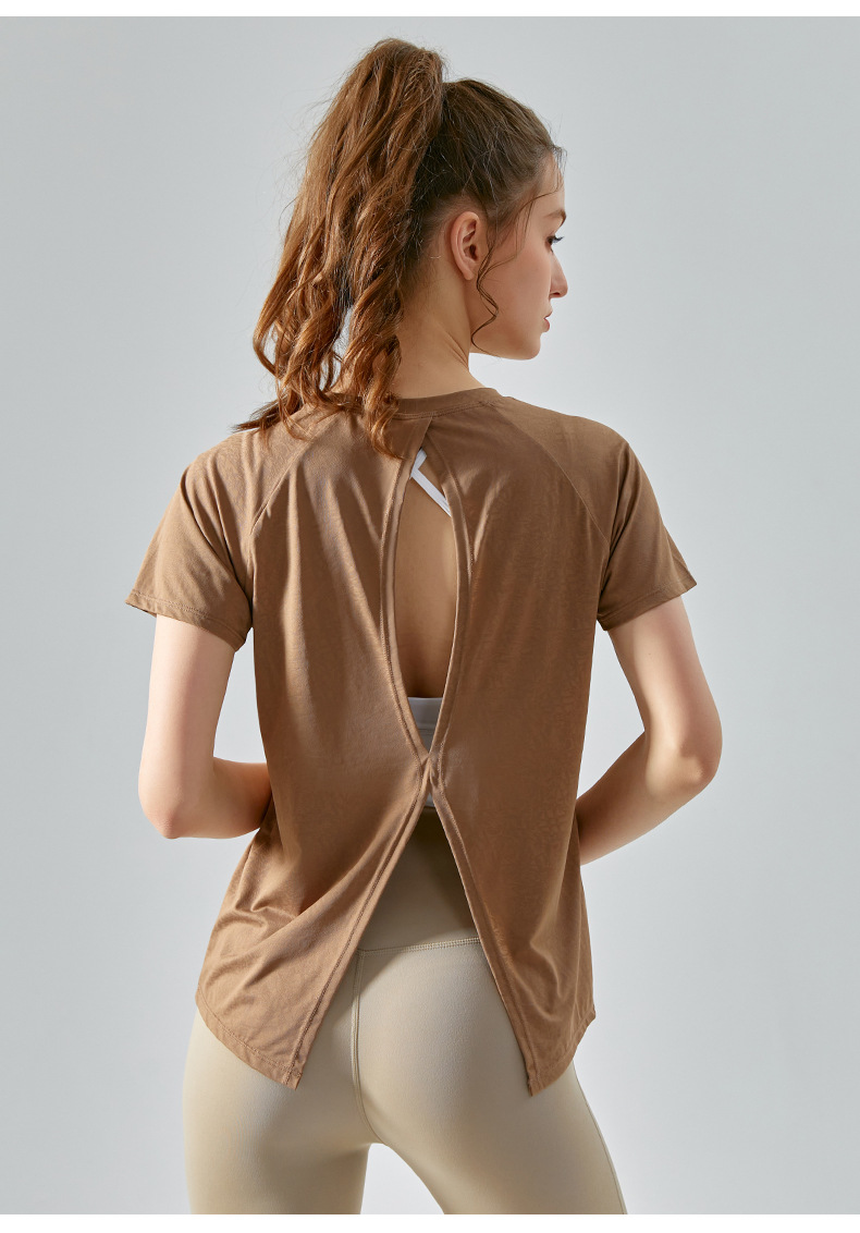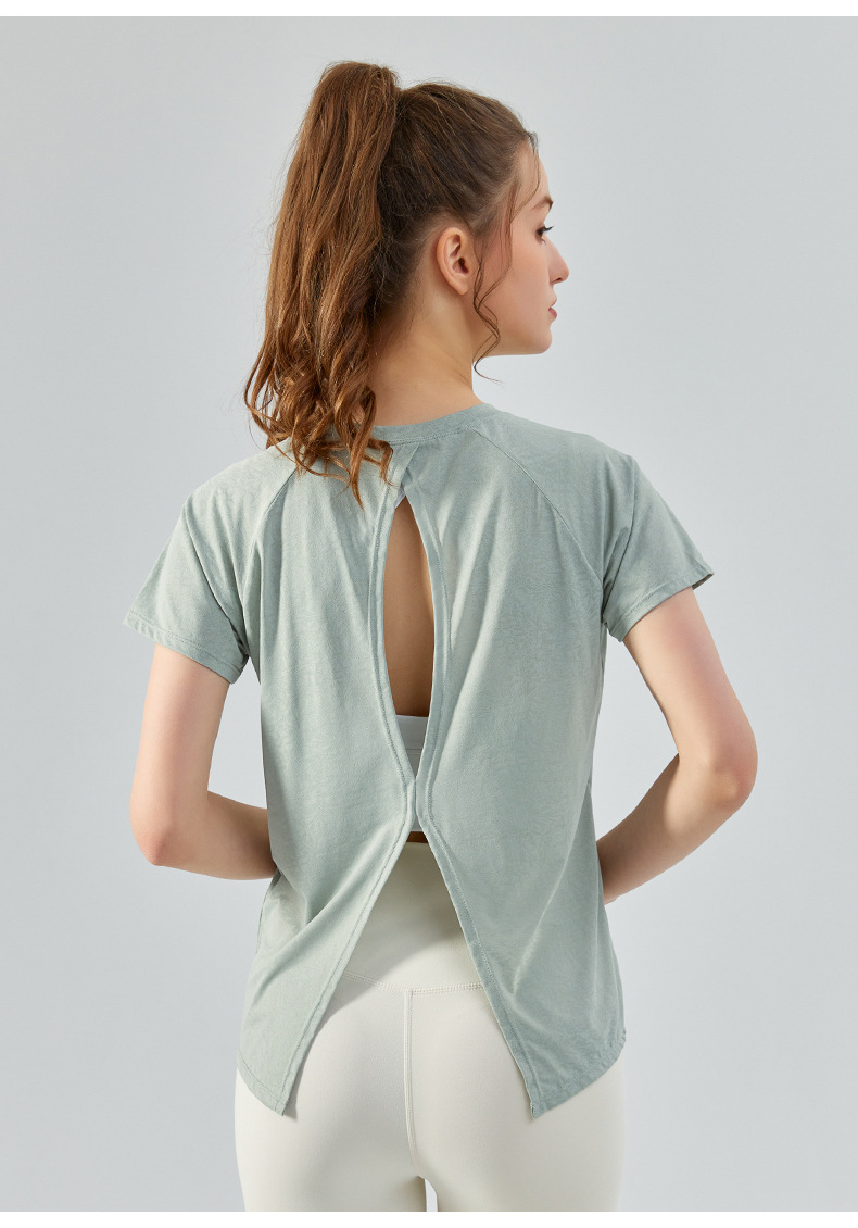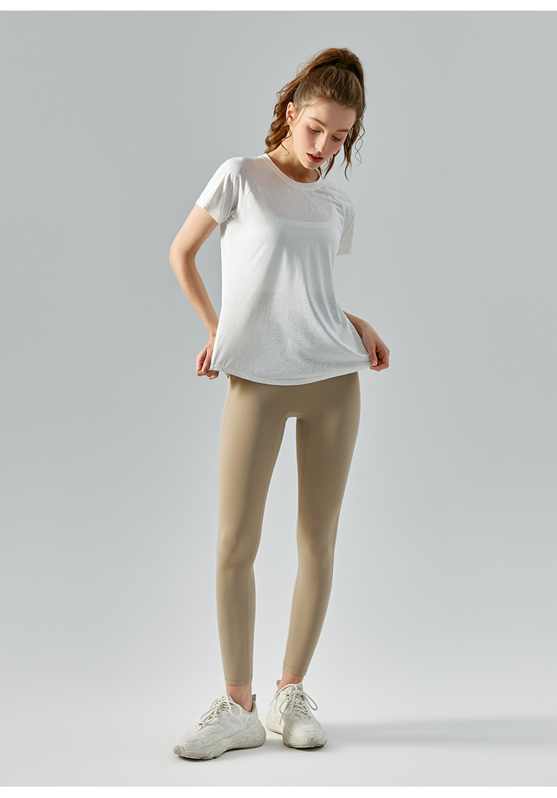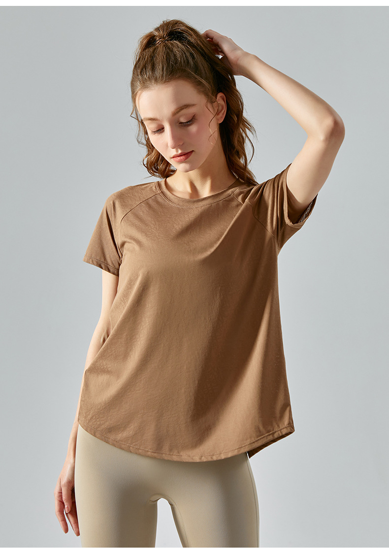 新款提花开叉镂空瑜伽罩衫女轻薄快干短袖t恤宽松透气瑜伽服上衣 DS 000 T538