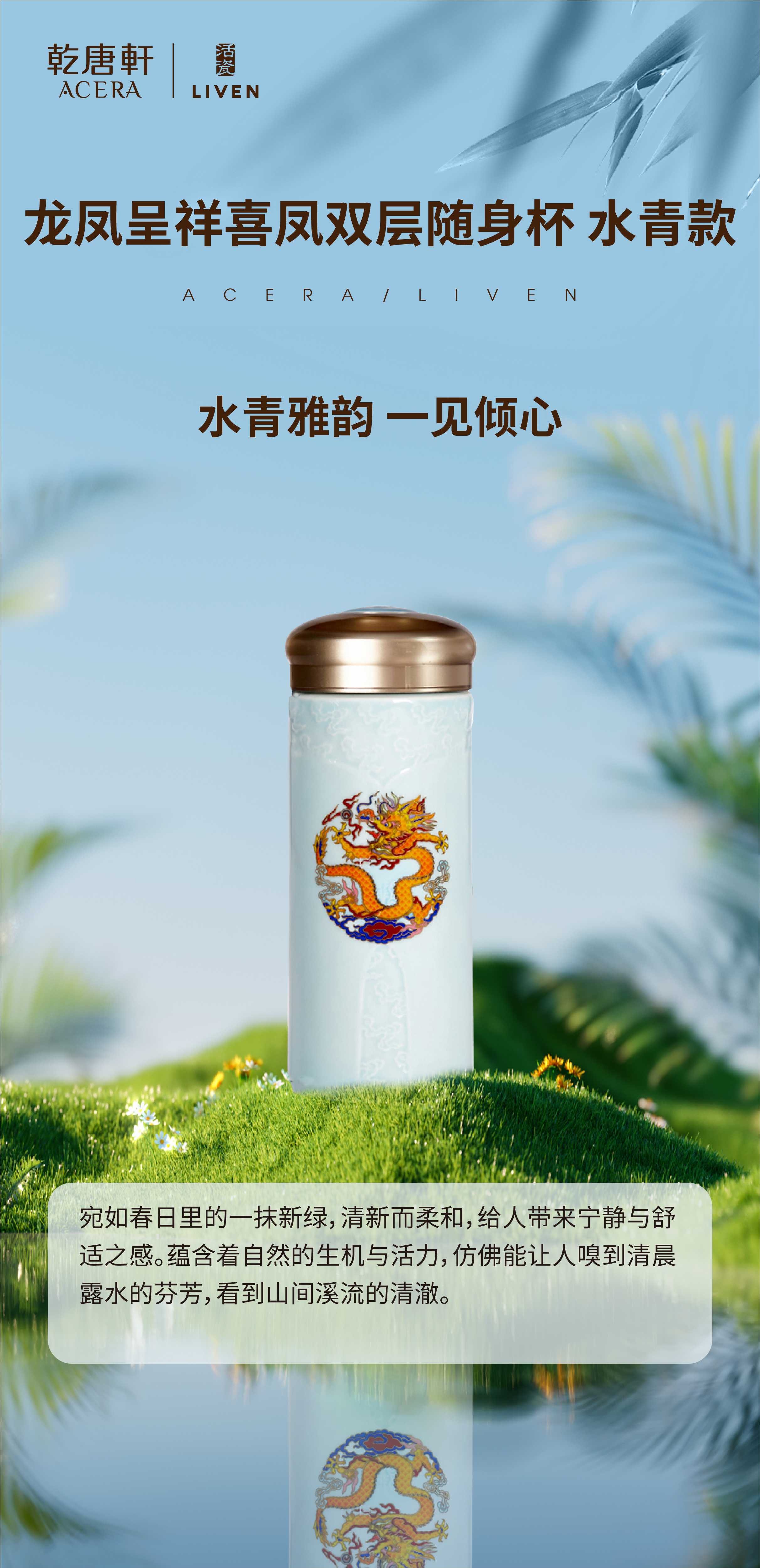 乾唐轩龙凤呈祥喜凤双层随身杯 水青款