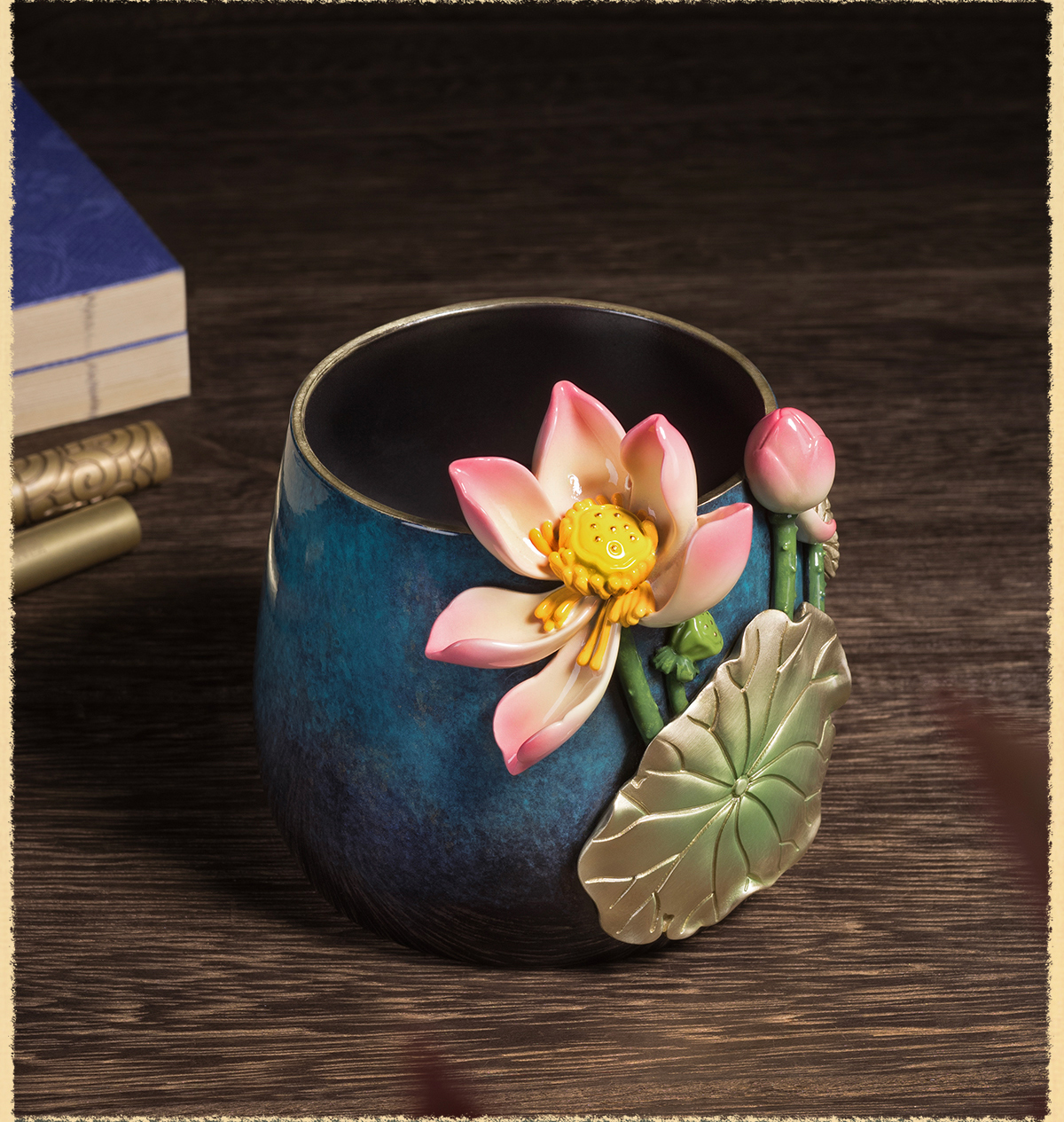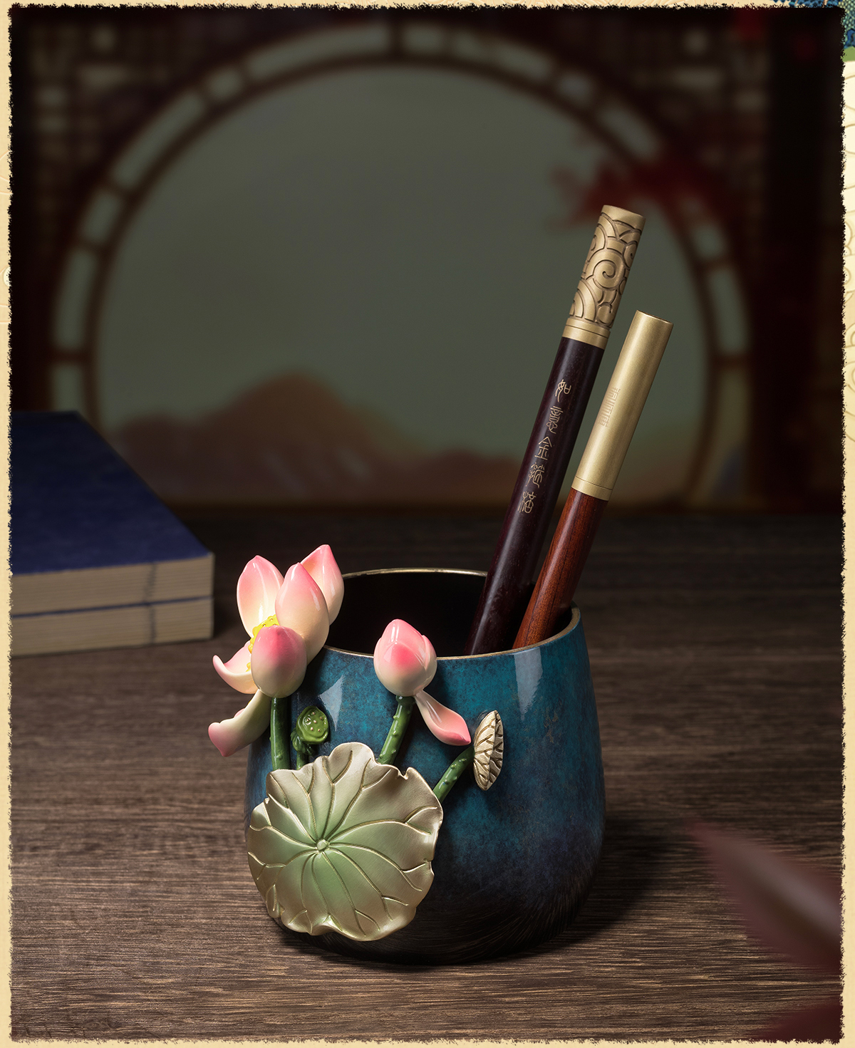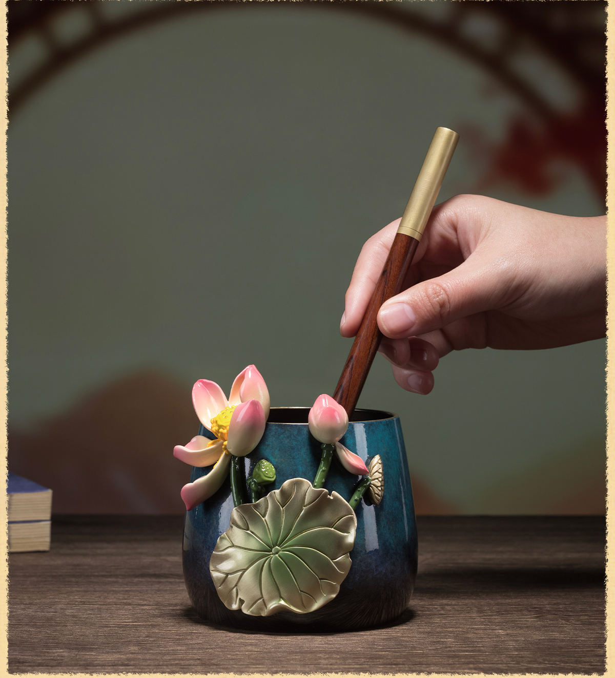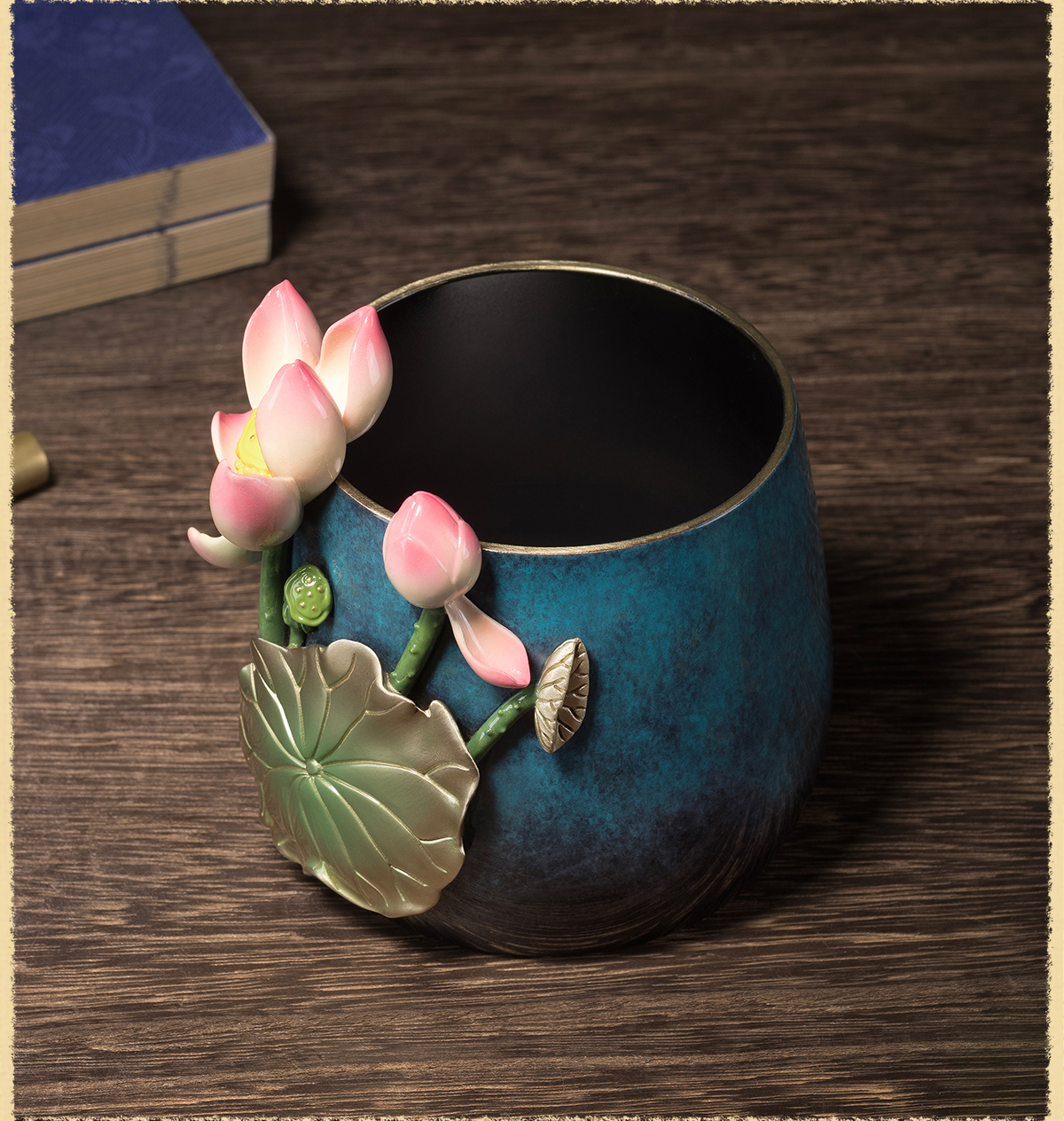 铜师傅《荷花笔筒》客厅书房铜摆件 家居装饰工艺品 老师礼物