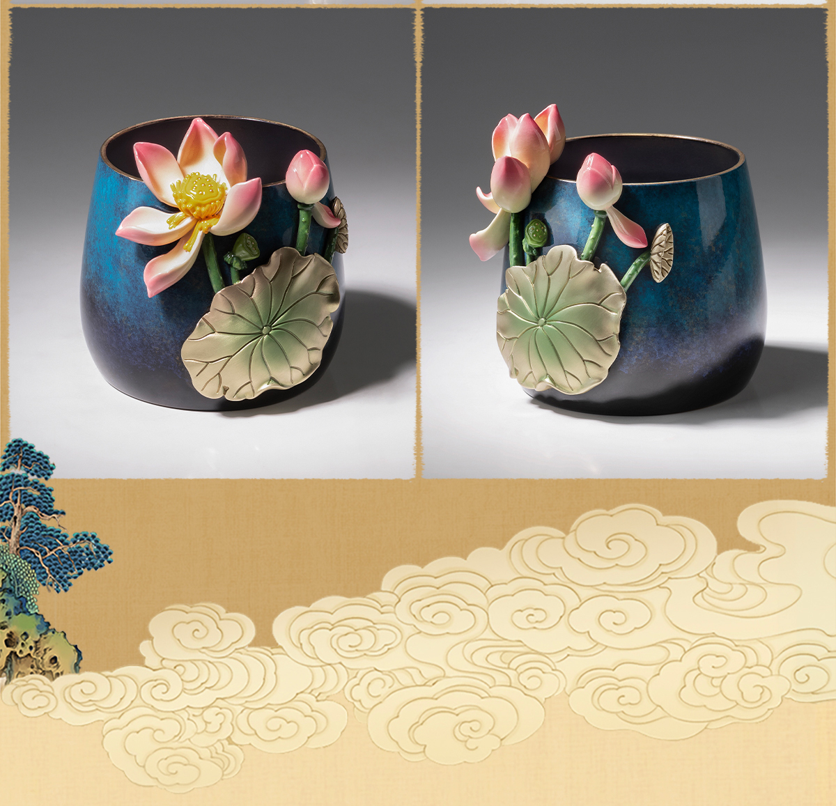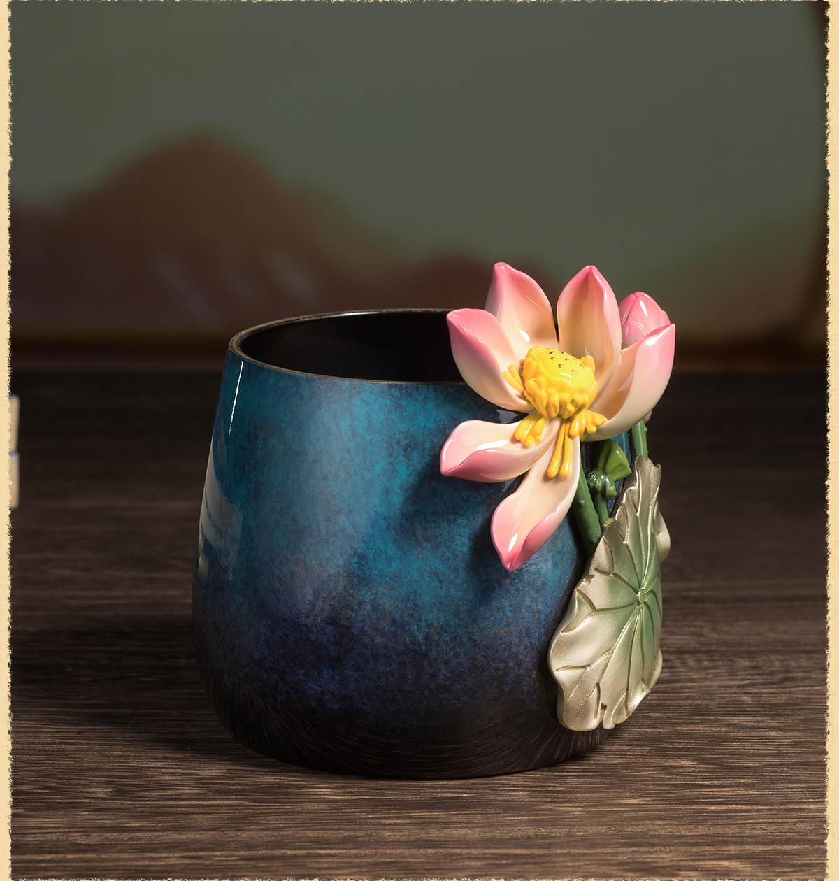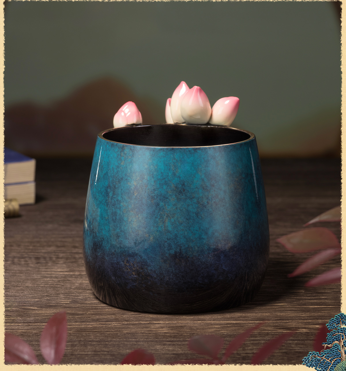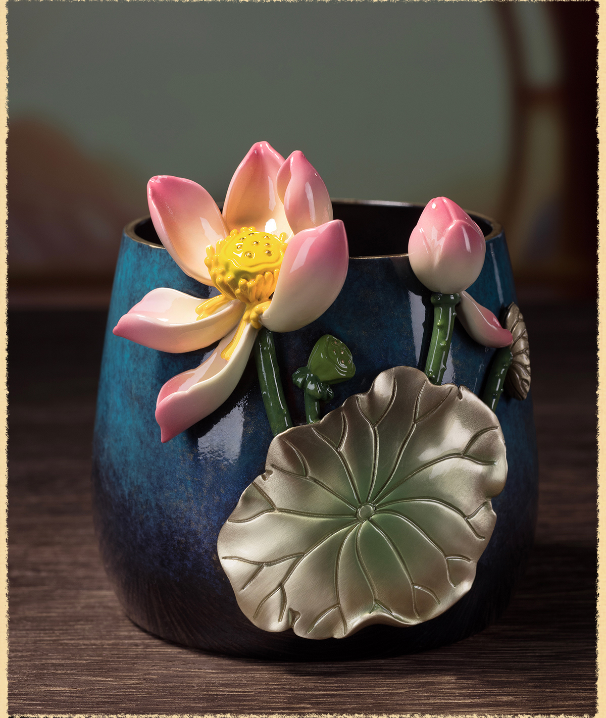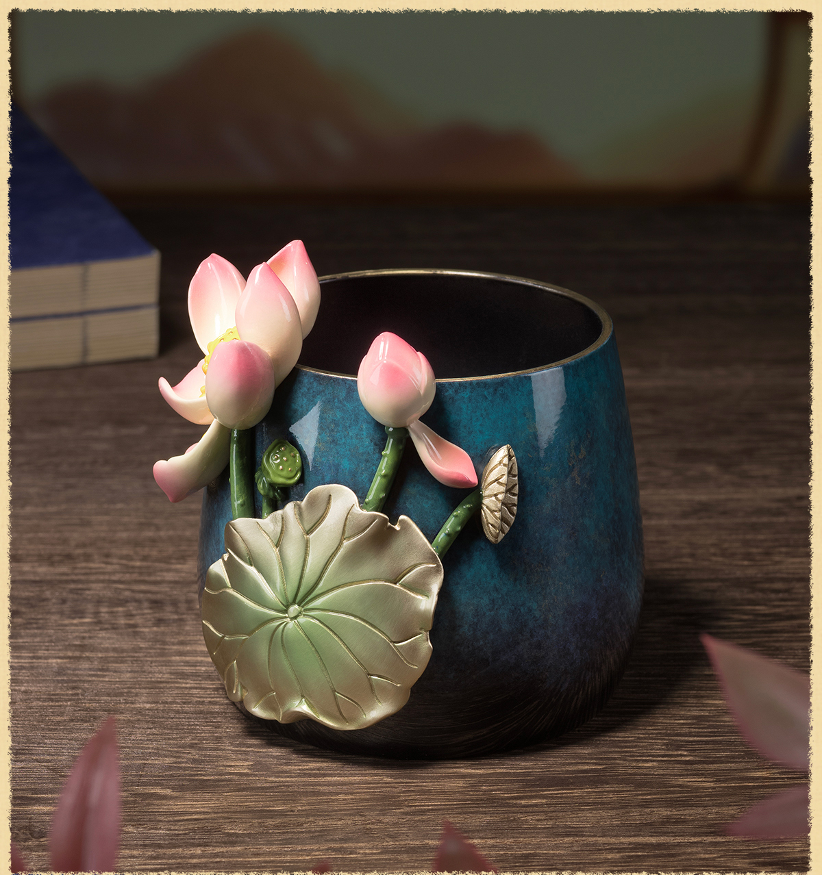 铜师傅《荷花笔筒》客厅书房铜摆件 家居装饰工艺品 老师礼物