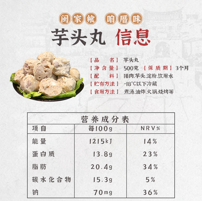 爆汁芋头丸芋头颗粒大肉丸 500g/包