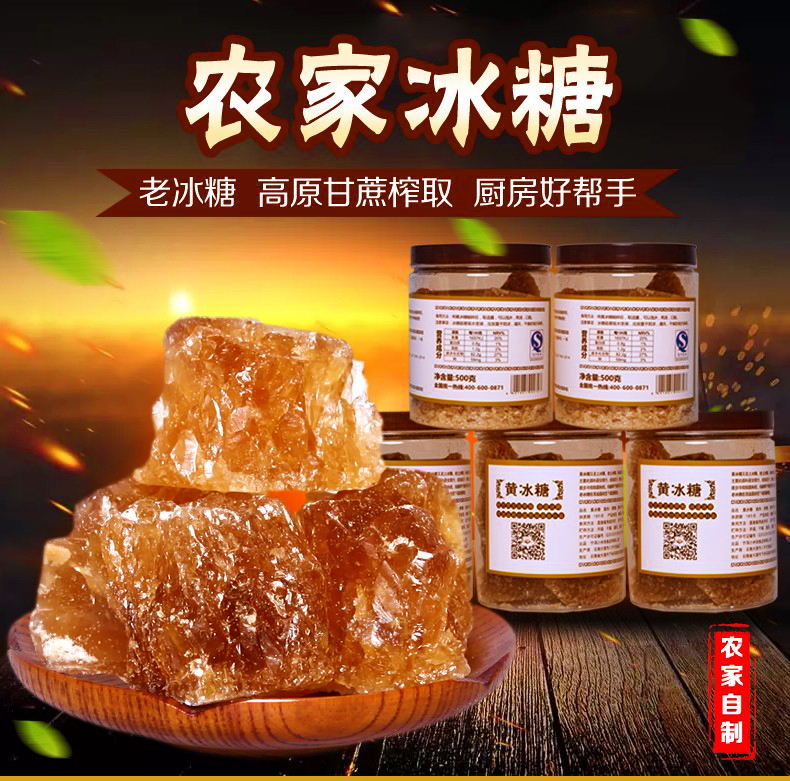 【吉顺号食品】-云南特产黄冰糖500g 新鲜甘蔗原汁熬制老冰糖 多晶冰糖