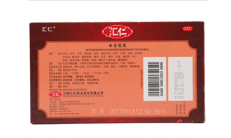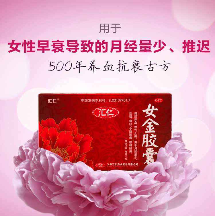 汇仁女金胶囊月经量少调理痛经调经补血养血月经不调推迟正品24粒
