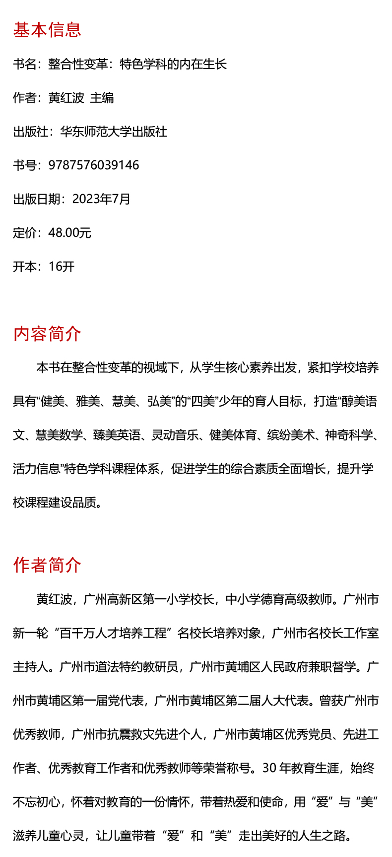 整合性变革 特色学科的内在生长 黄红波主编 学校课程变革新取向丛书