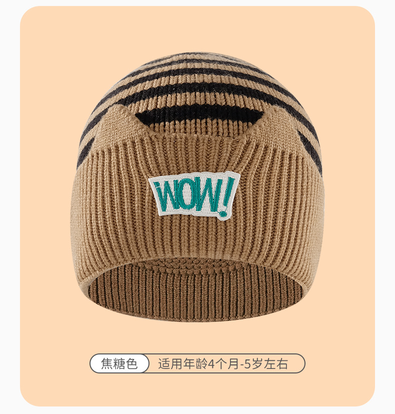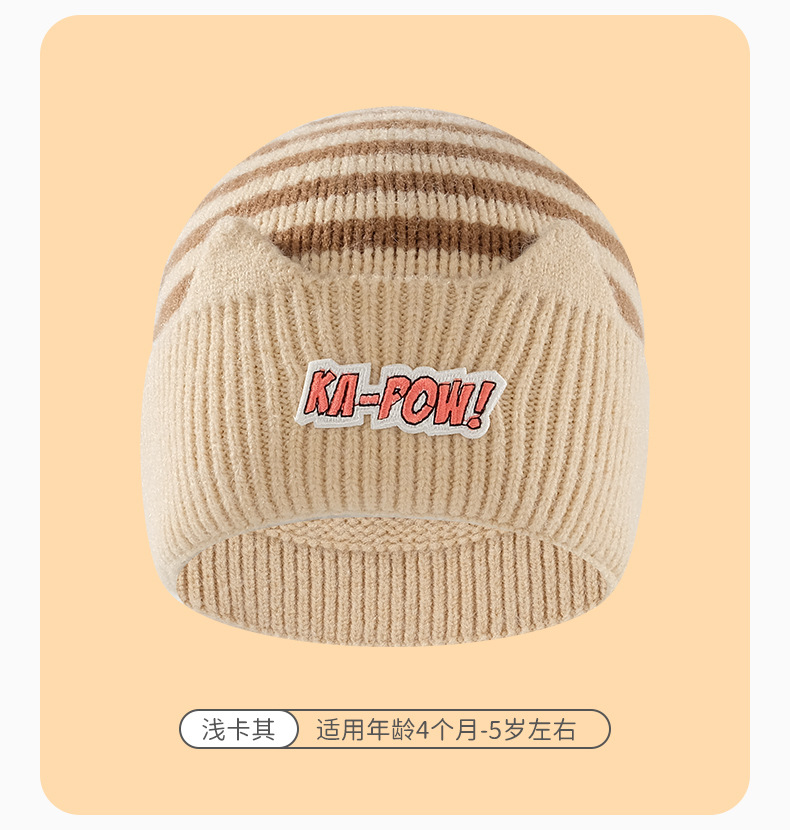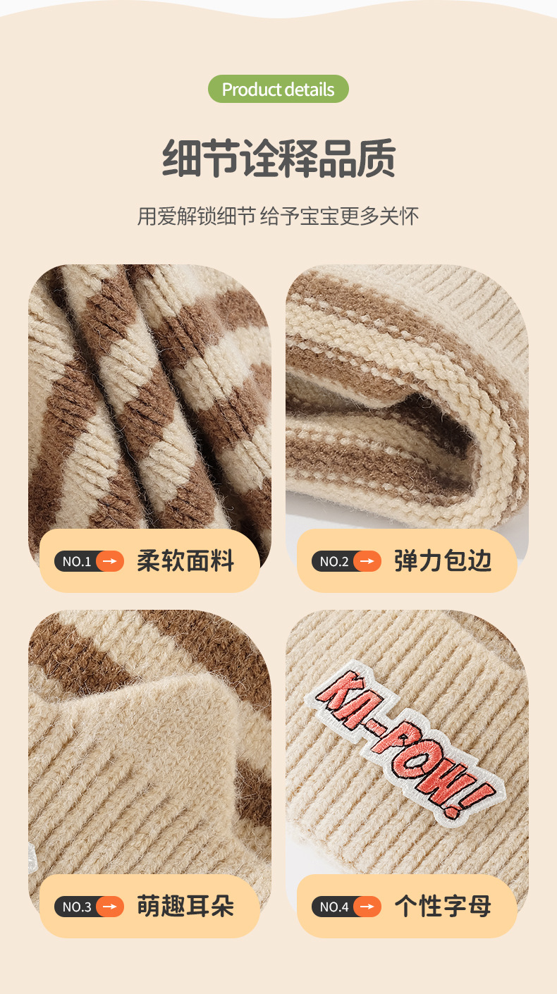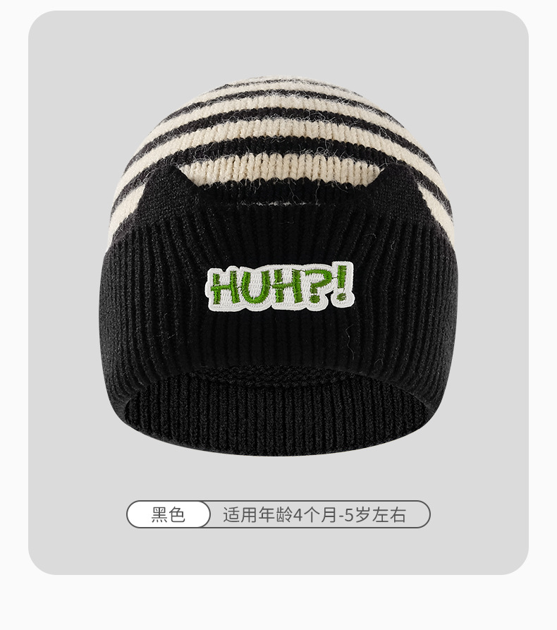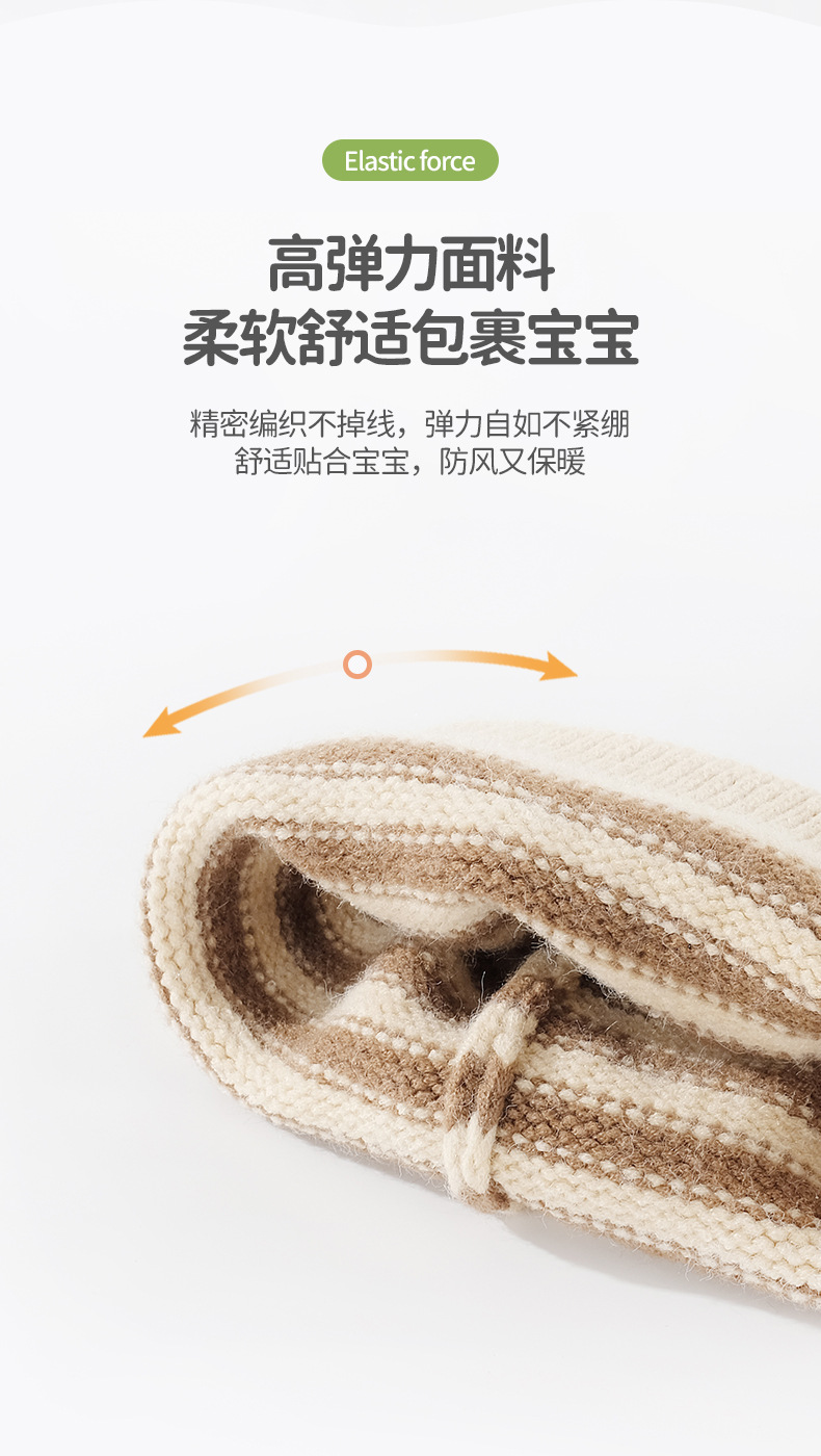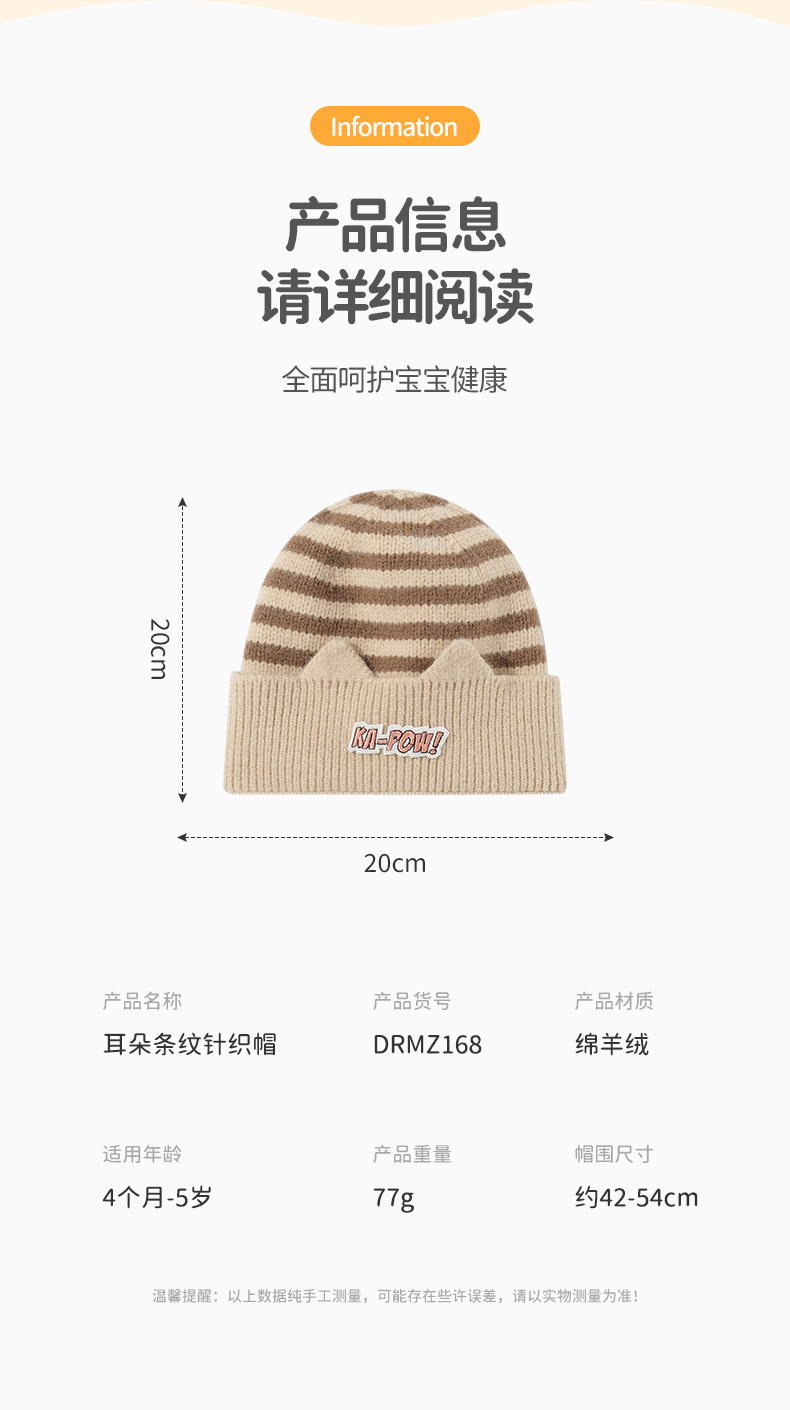 【保暖可爱 柔软绵羊绒呵护健康宝宝】婴儿帽子秋冬季可爱超萌儿童针织帽子男女保暖条纹防寒套头毛线帽