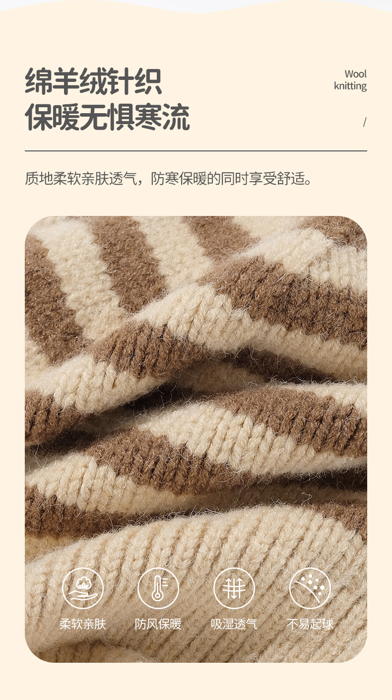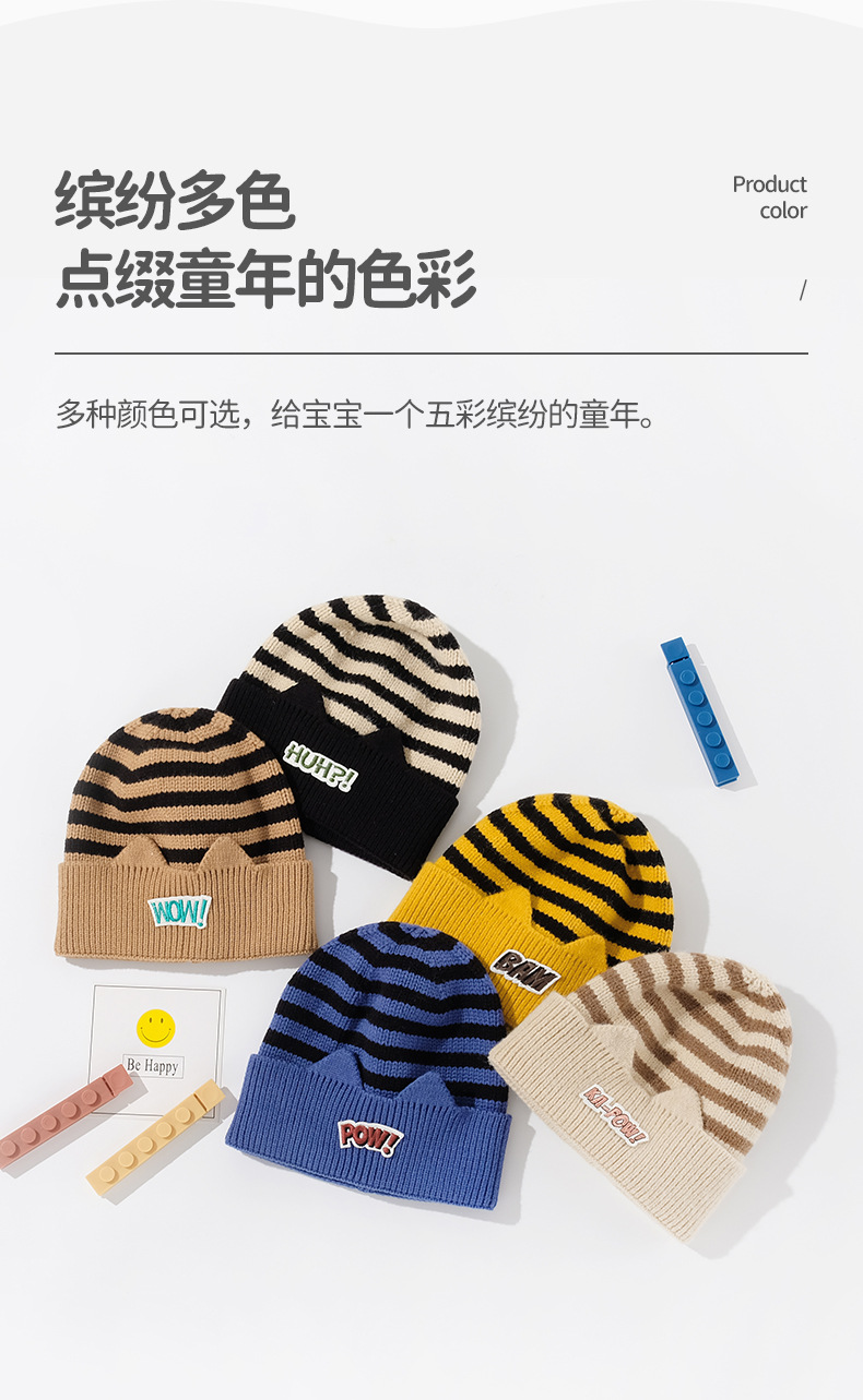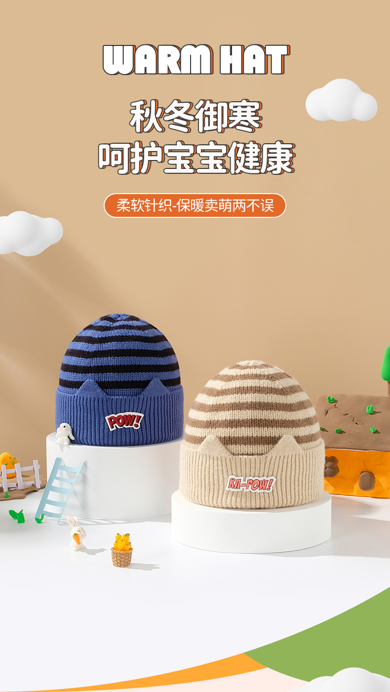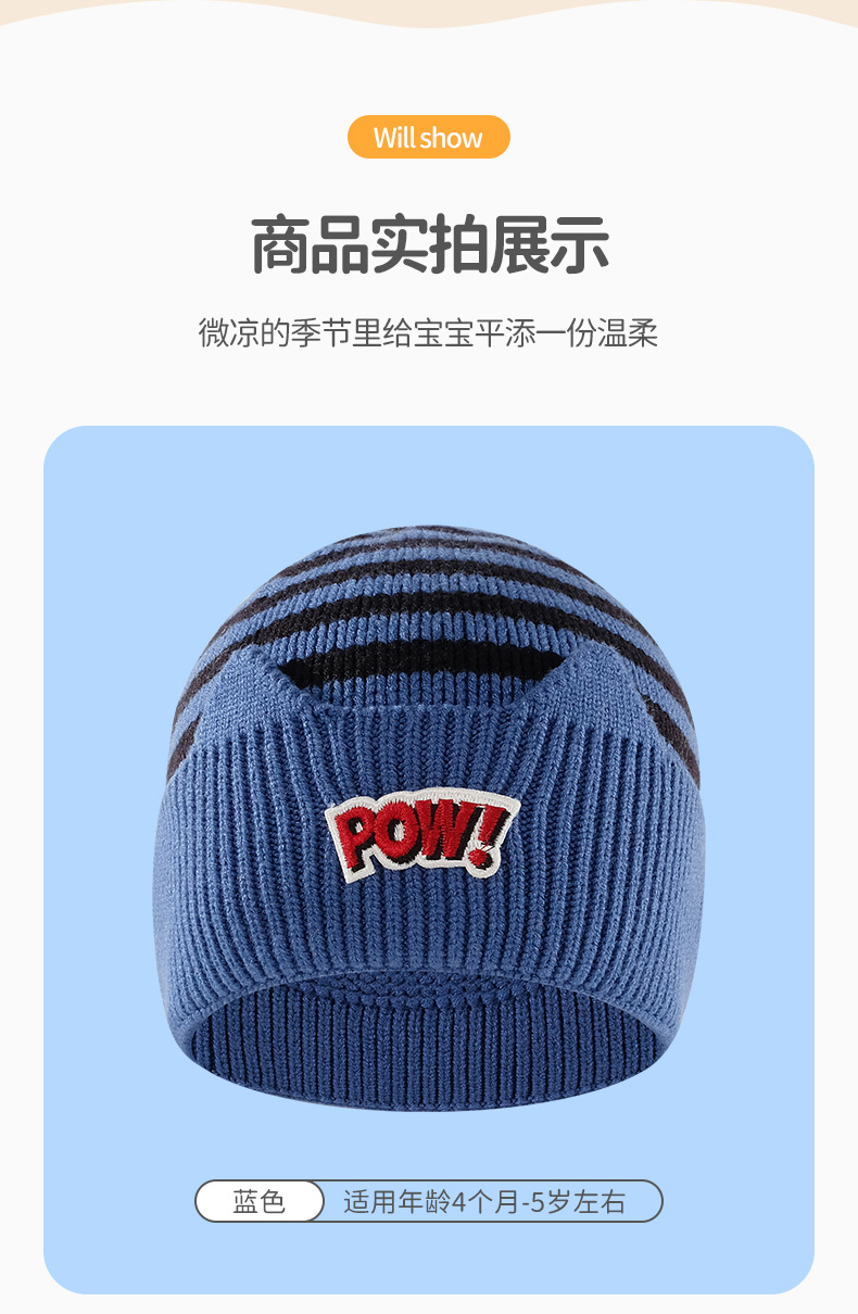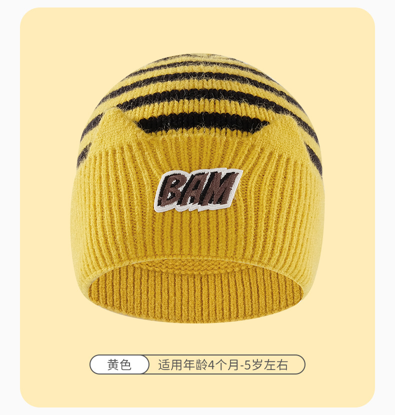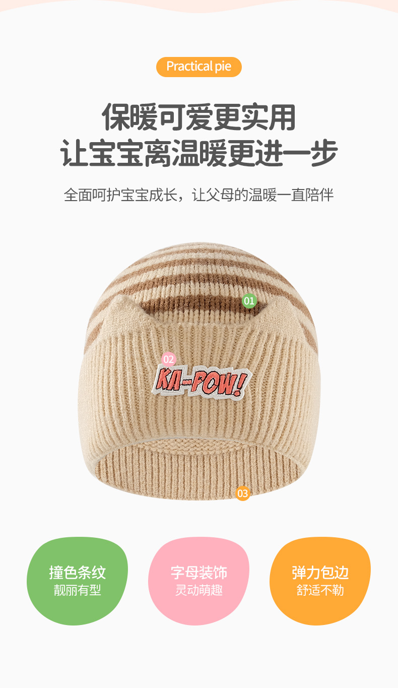 【保暖可爱 柔软绵羊绒呵护健康宝宝】婴儿帽子秋冬季可爱超萌儿童针织帽子男女保暖条纹防寒套头毛线帽