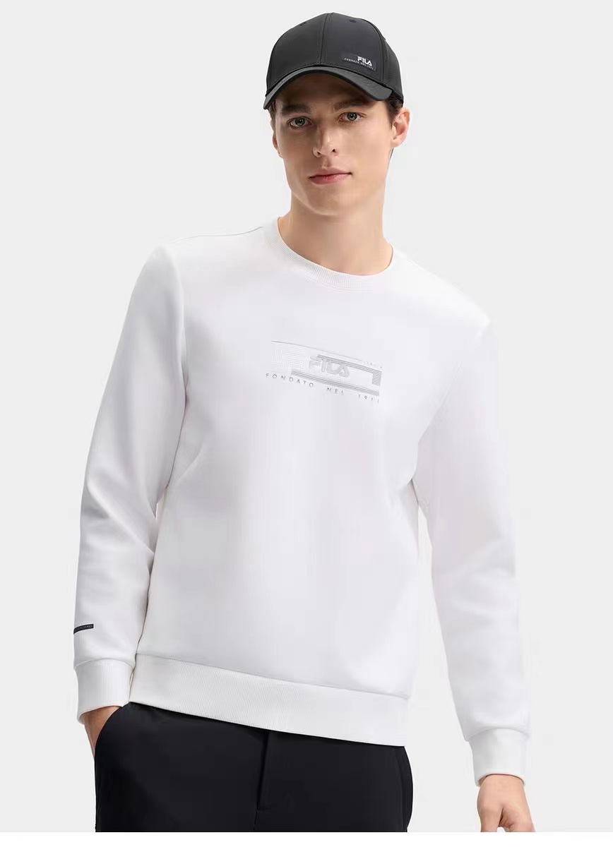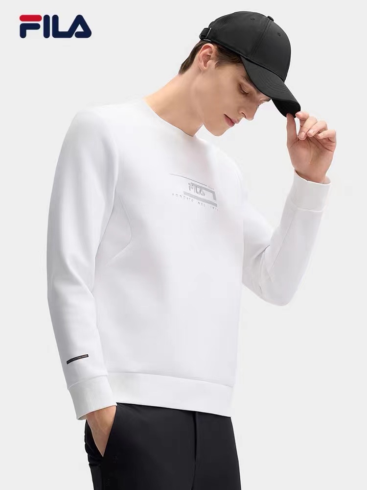 男士圆领套头卫衣时尚简约基础休闲上衣!棉涤科学配比混纺,兼备棉的柔软亲肤和透气,运动暴汗也清爽舒适,同时又有涤的坚牢抗皱和弹性,挺阔有型,清爽透气,柔软舒适。前胸小字母与线条设计,袖口小字母点缀,低调时尚,突显品牌调性!套头圆领设计,穿脱便捷,收囗袖口,穿着利落。专业剪裁,运动畅享自如。基础版型,包容百搭。根据人体结构与运动规律设计活动不受束缚,助力轻松开练。