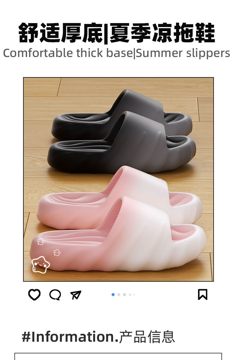 【踩在云朵般的舒适❗️四季渐变厚底拖鞋】踩屎感「又软又静音」❗️室内外两穿,柔软耐穿家居户外凉eva防滑,防臭踩屎感凉拖鞋情侣男女款L