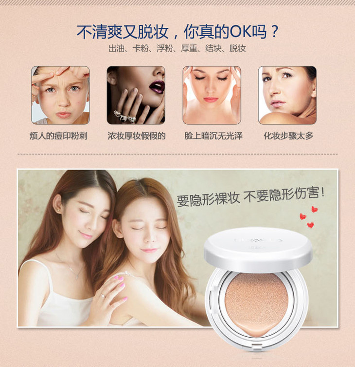 【美妆个护】泊泉雅无暇气垫bb霜 cc遮瑕粉底液保湿隔离裸妆彩妆 化妆品美妆